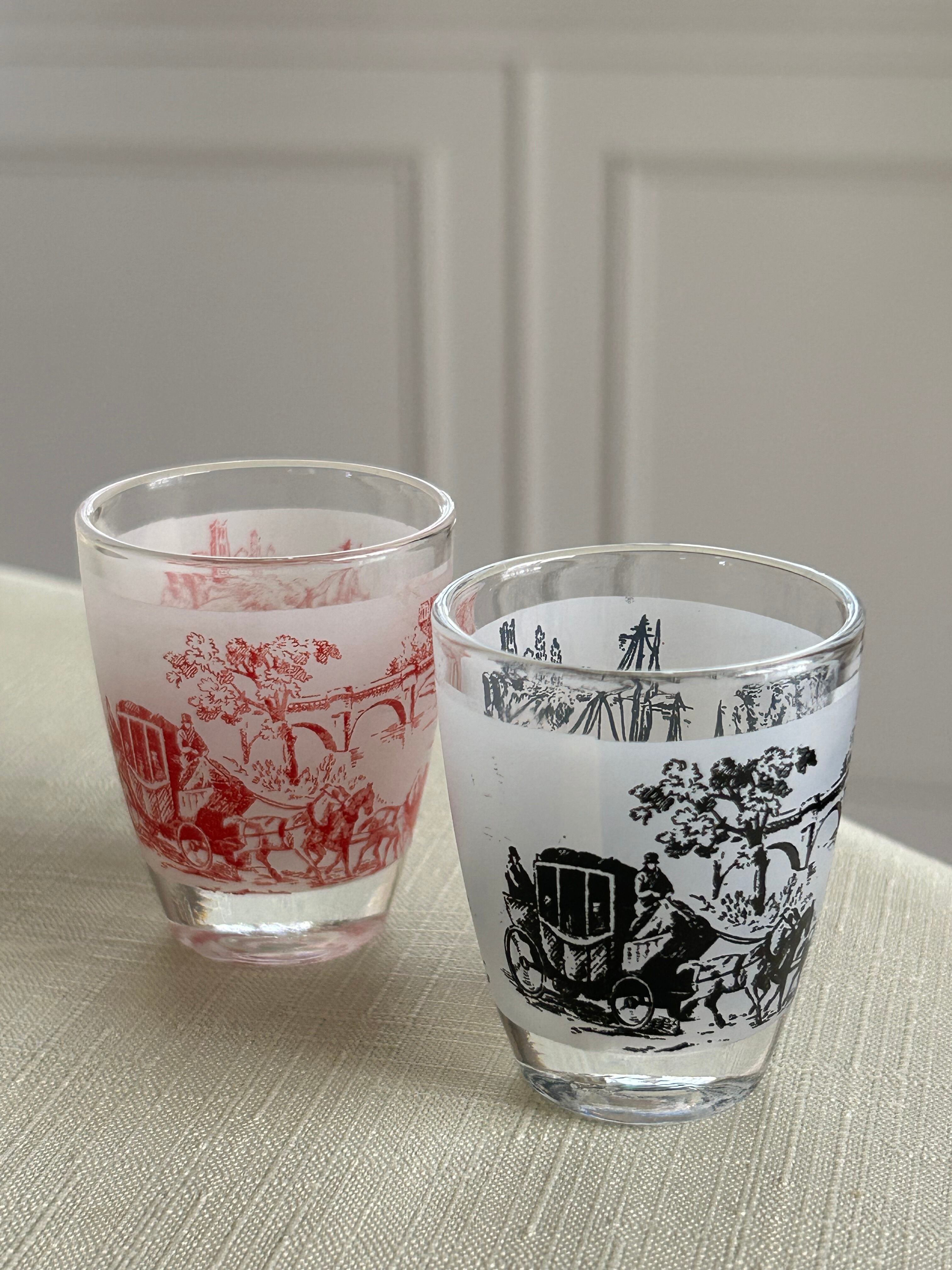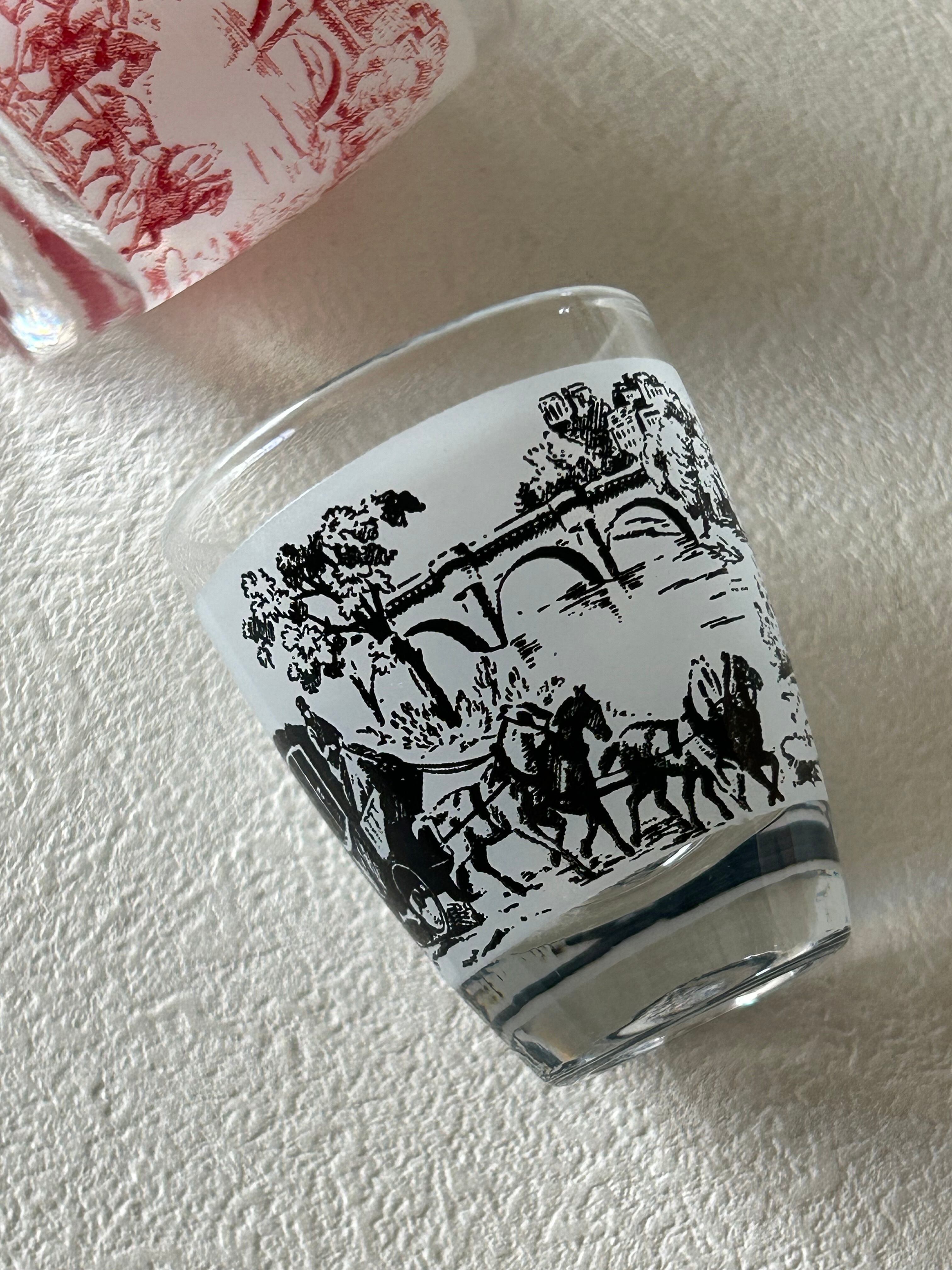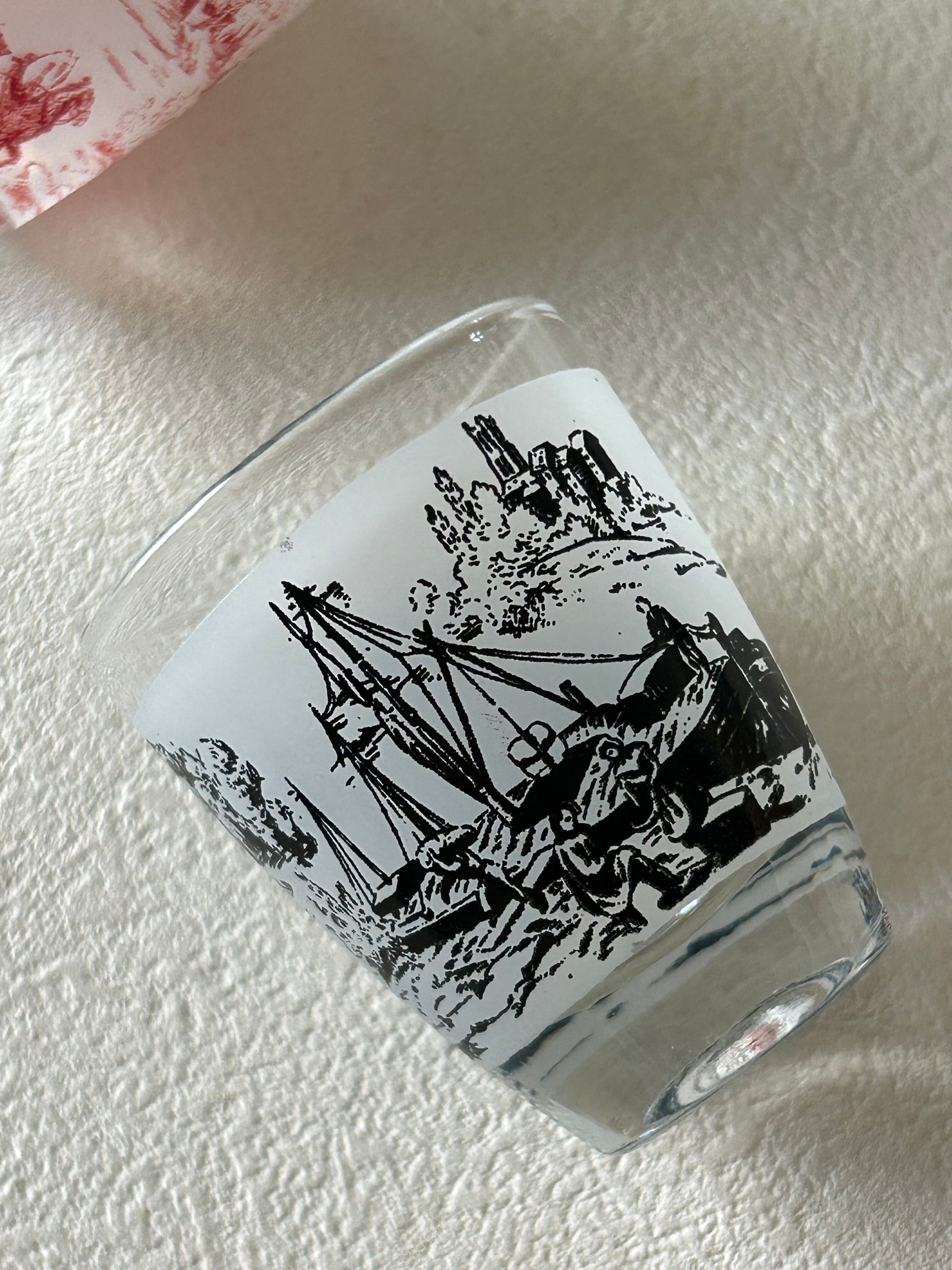 フランスVintage リキュールグラス ミニグラス トワルドジュイ柄 ブラック/レッド フラワーベース インテリア 撮影小物 インテリア小物