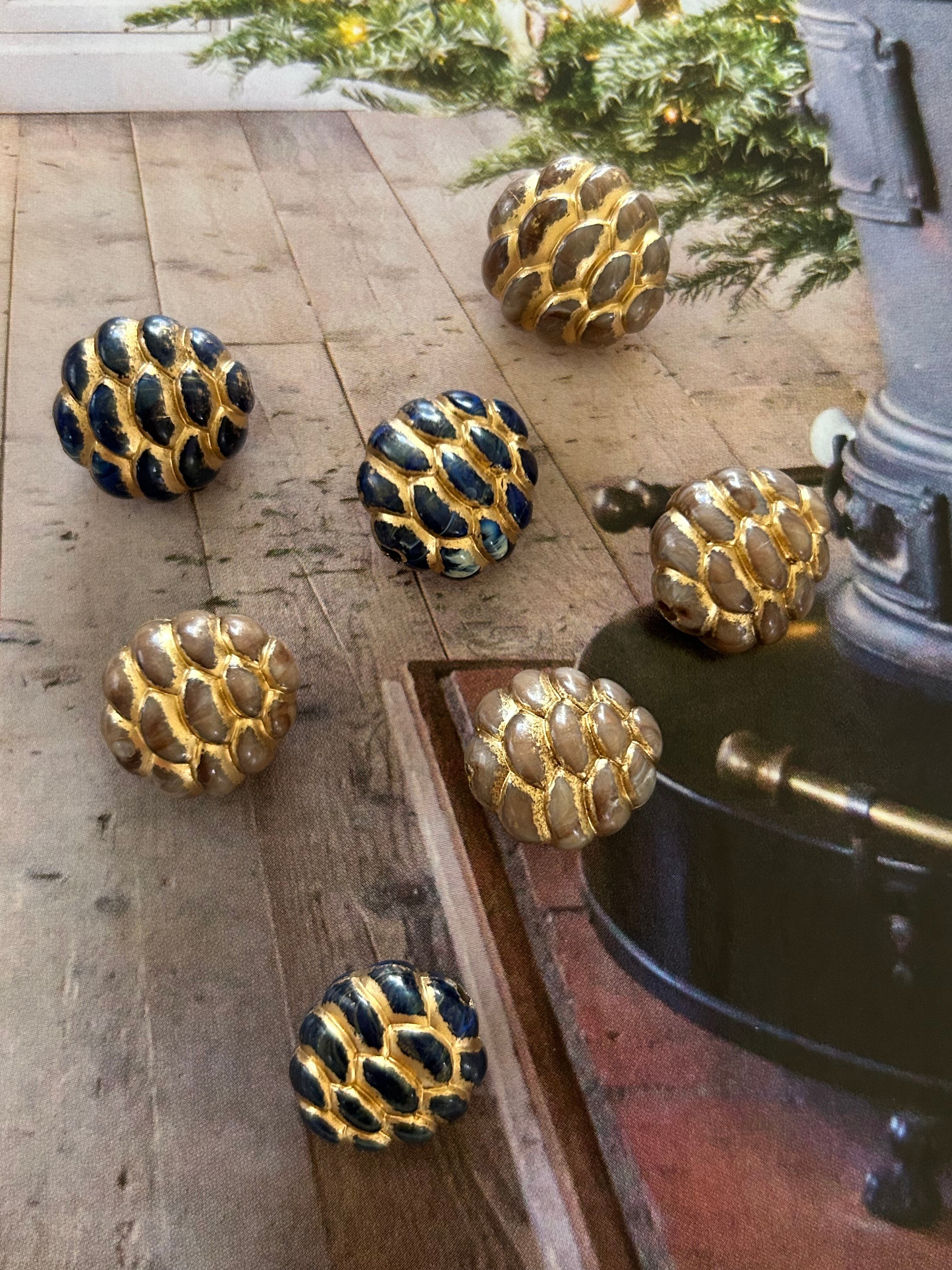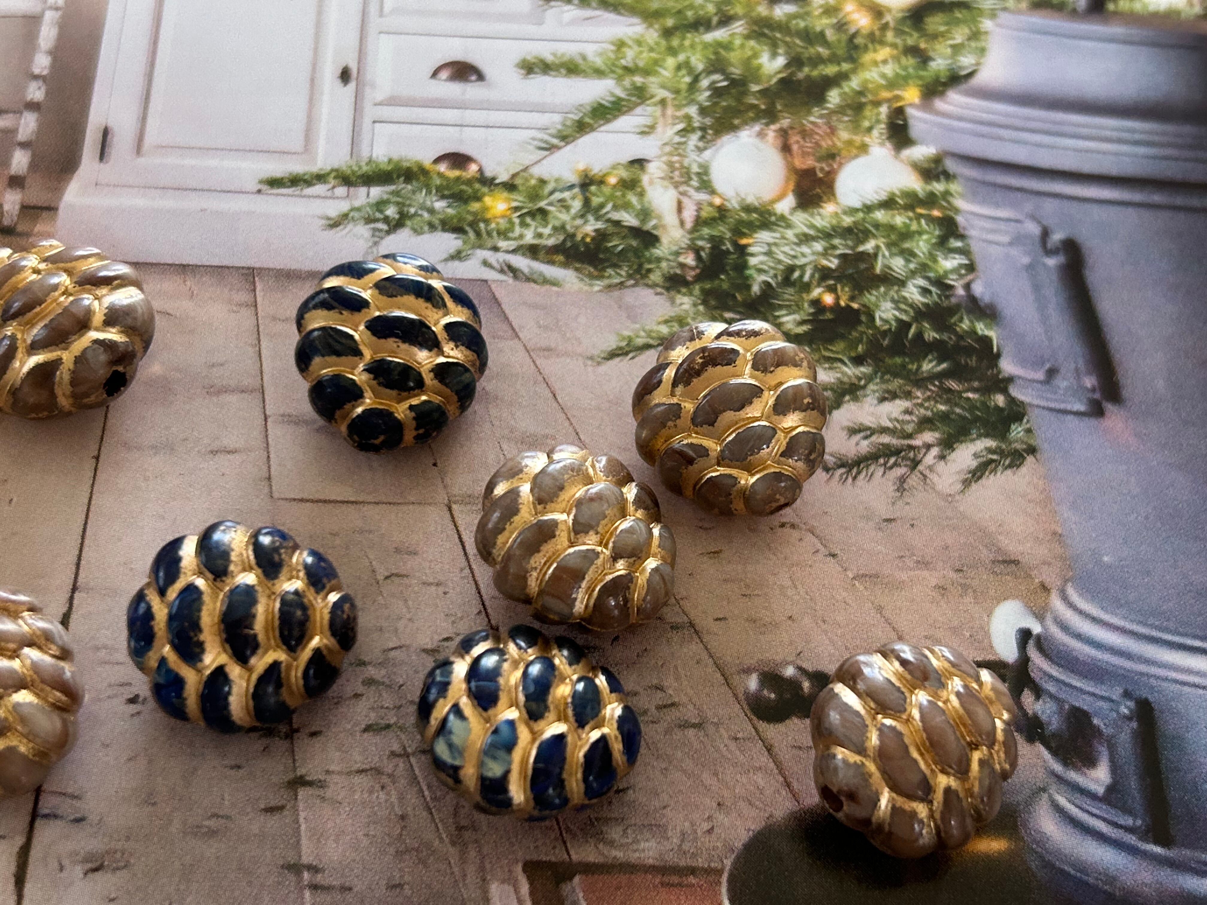 ドイツVintage ルーサイトビーズ 松ぼっくり ベージュ/ネイビー デッドストック アクセサリーパーツ クリスマス Noel