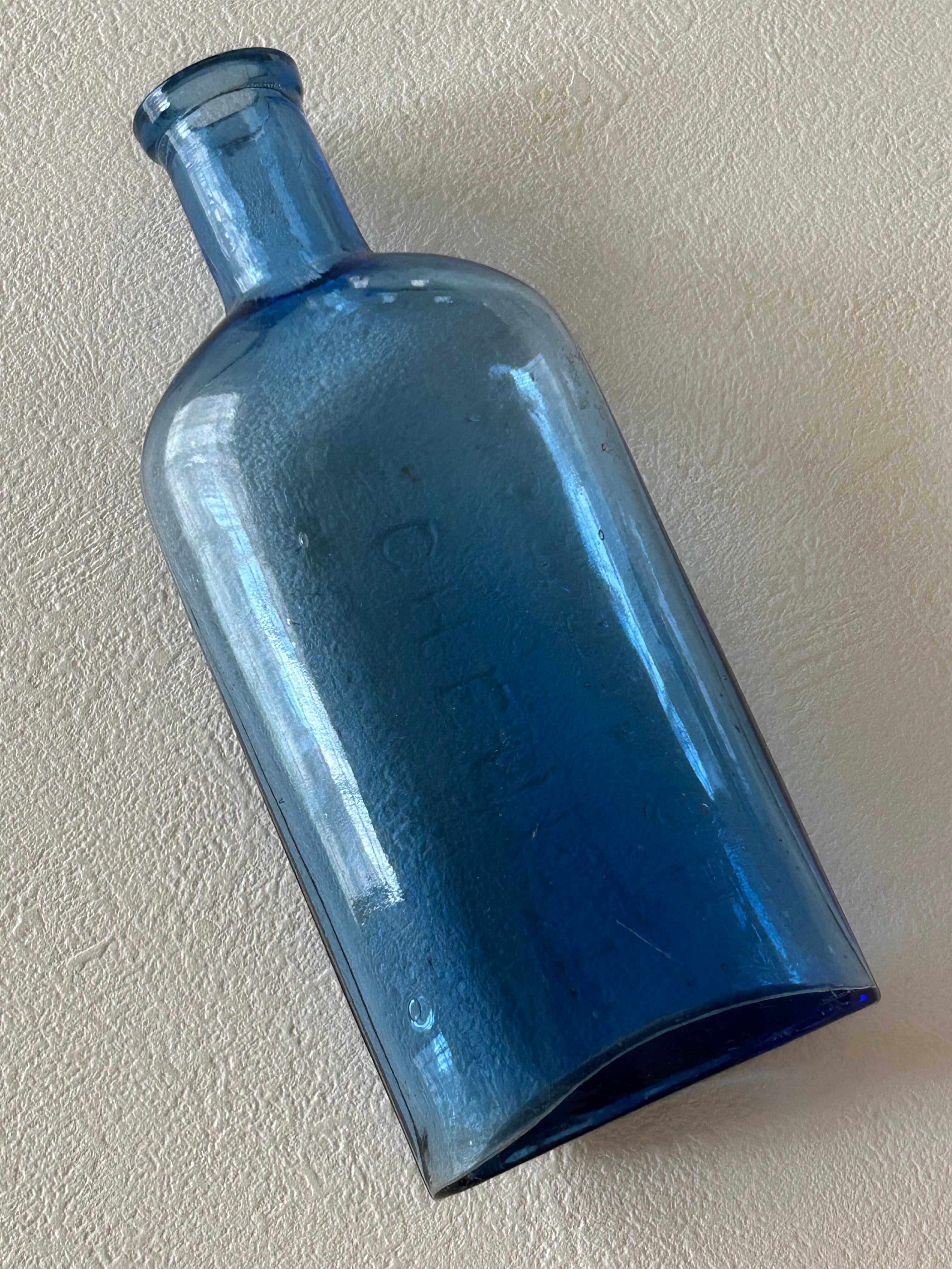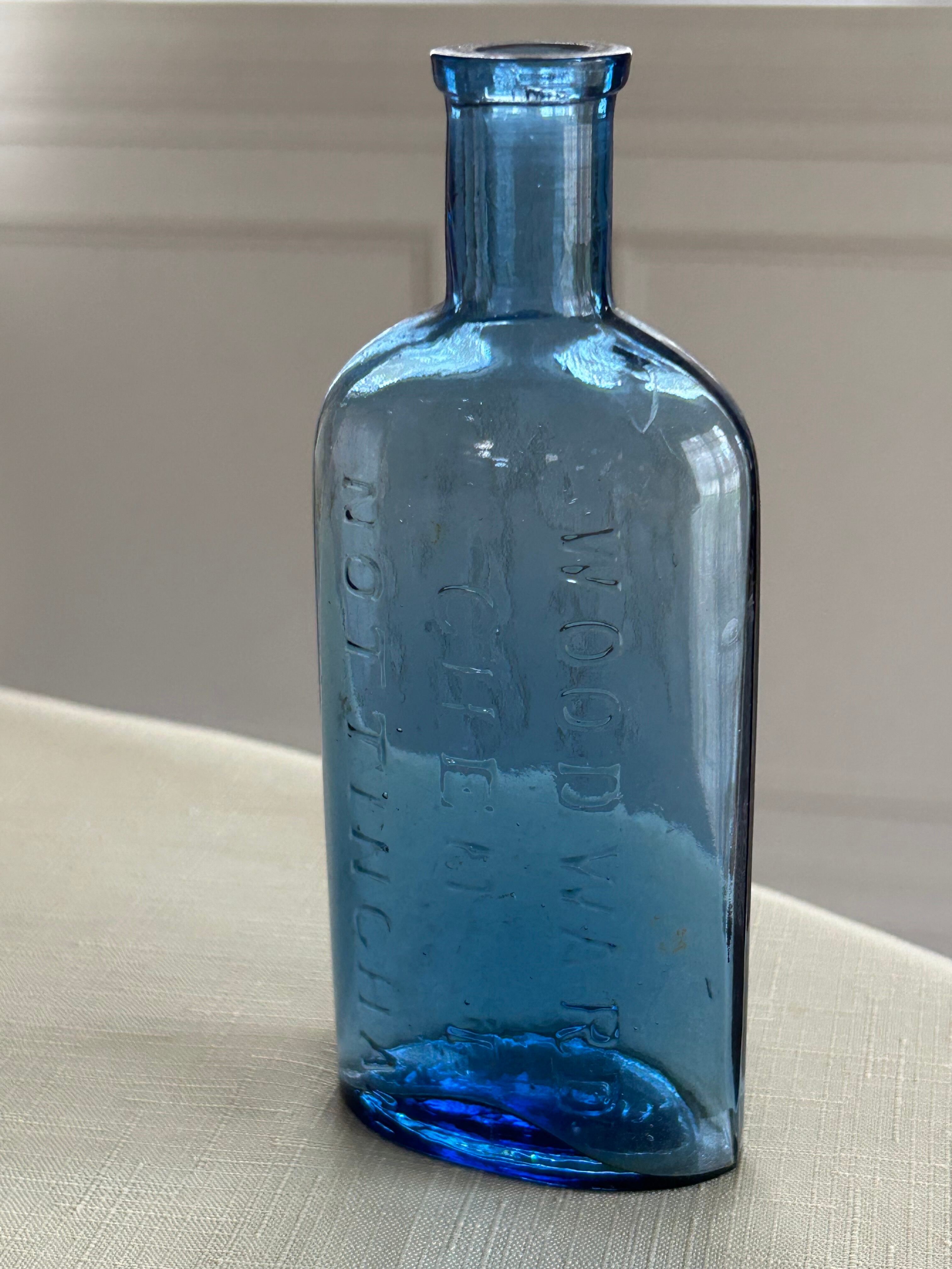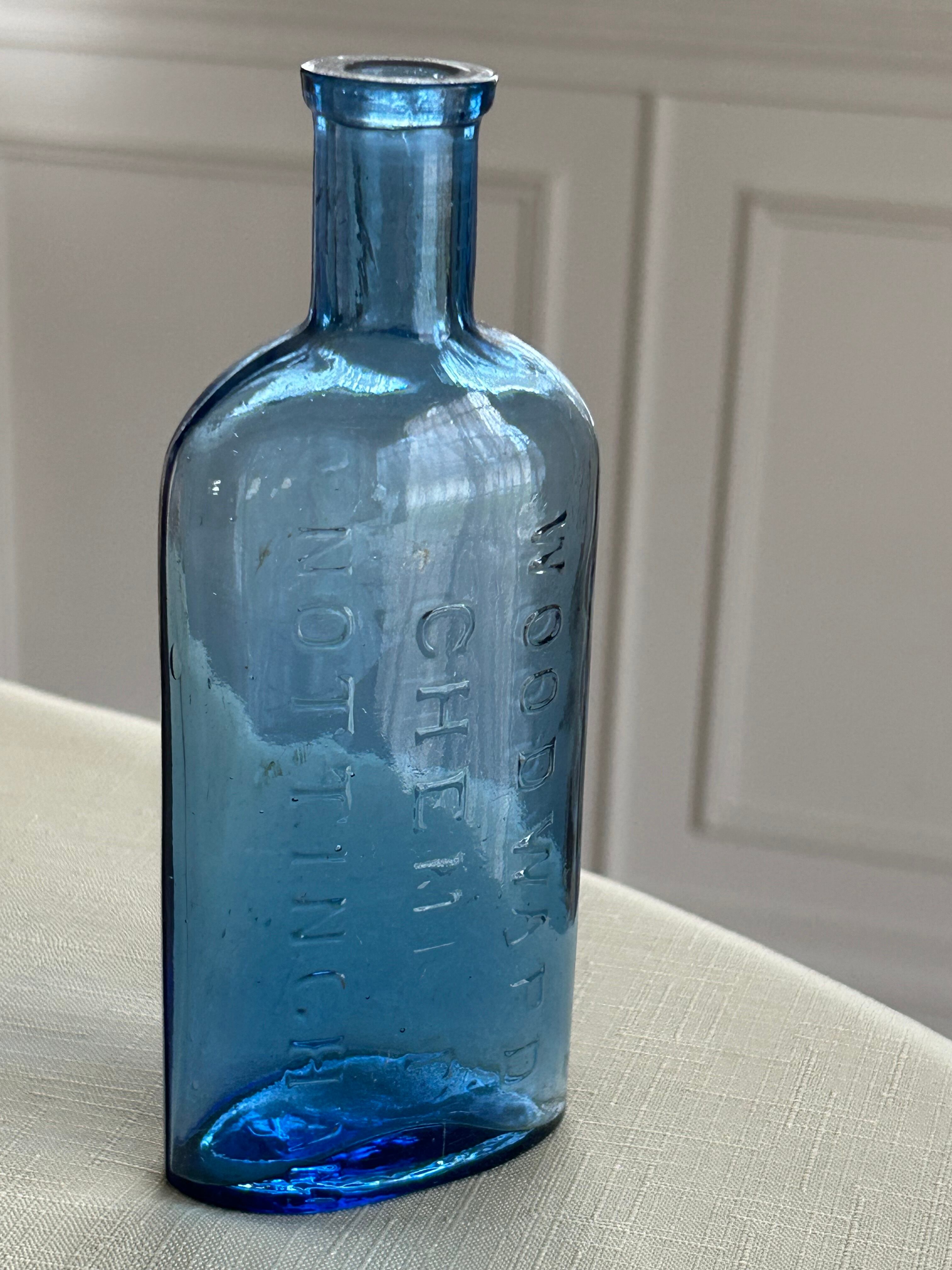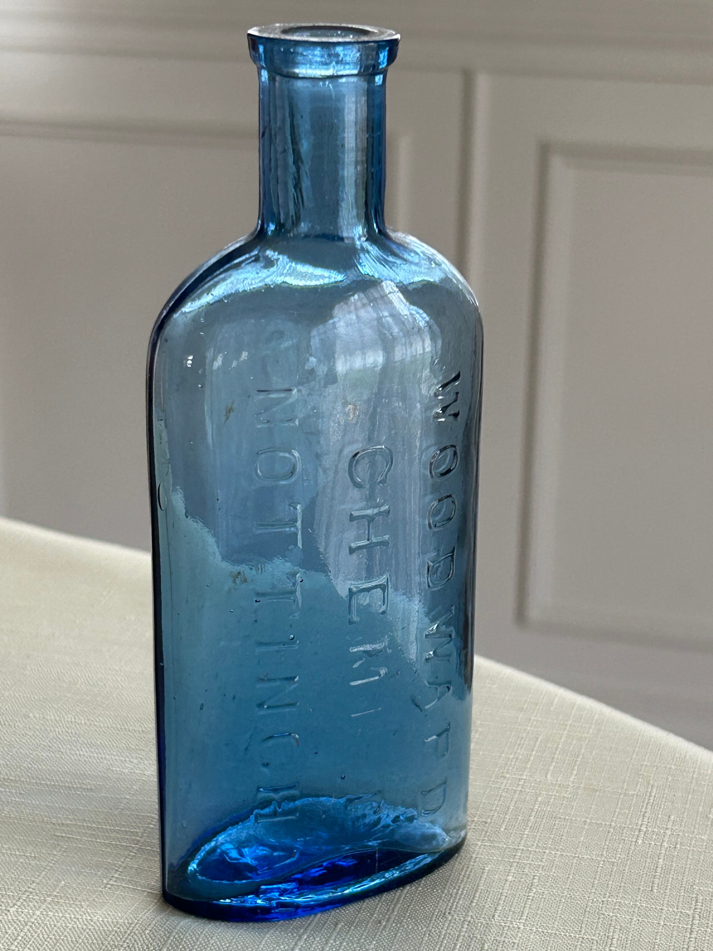 英国アンティーク ブルーのケミカルガラスボトル 薬瓶 WOODWARD CHEMIST NOTTINGHAM ② インテリア小物 フラワーベース