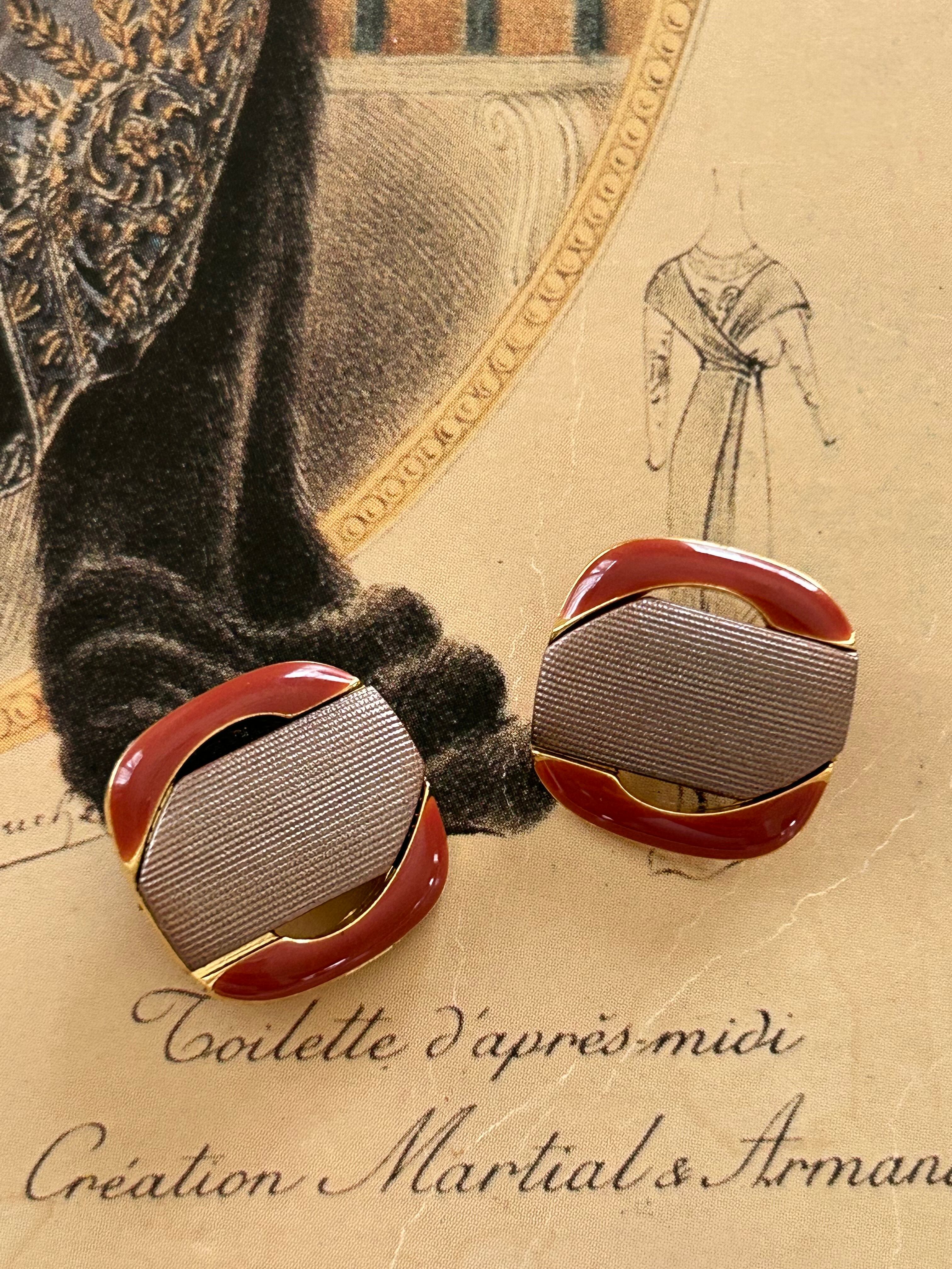 縁を艶やかなエナメル調のくすみピンクのペイントが施されています。