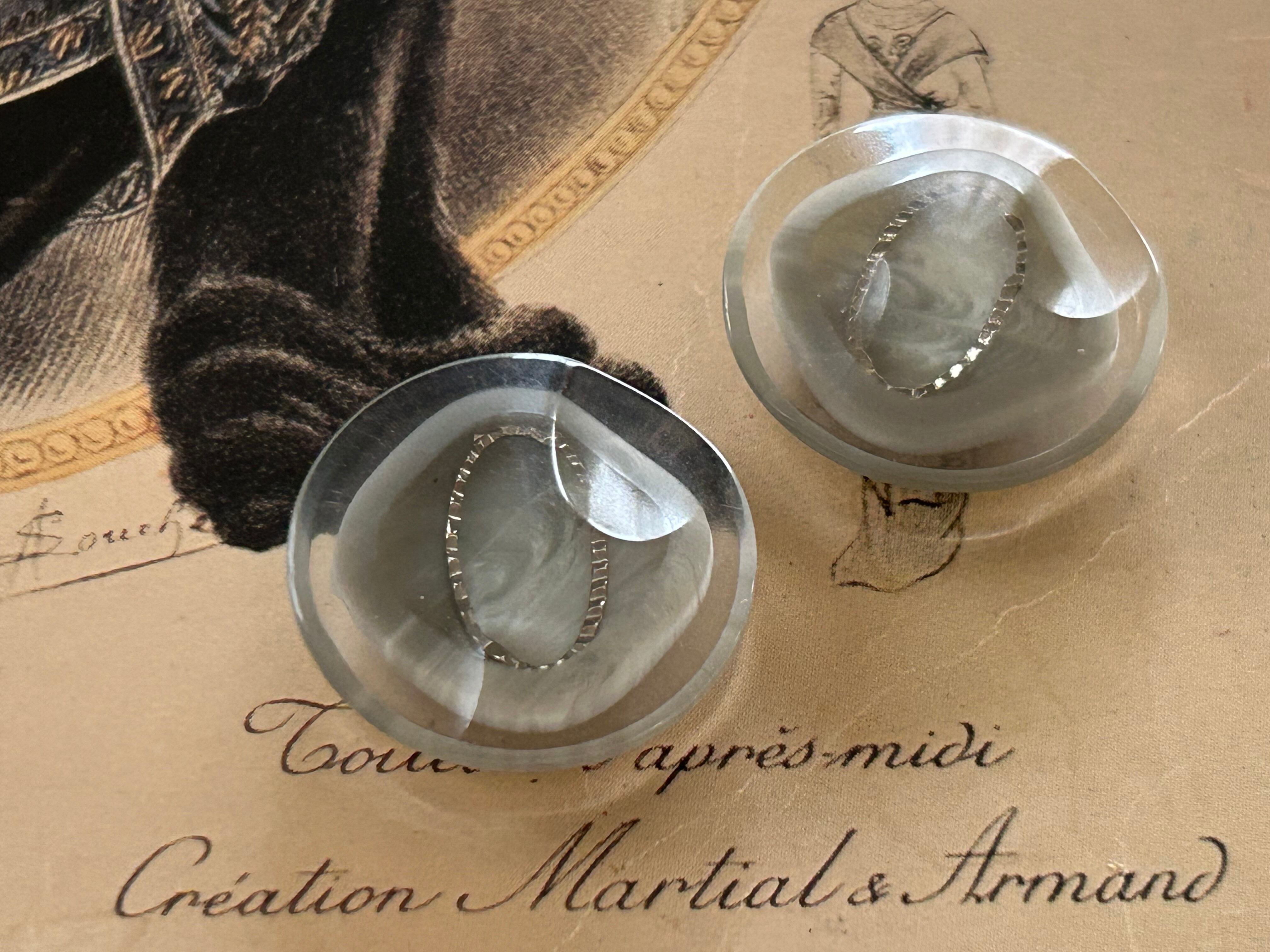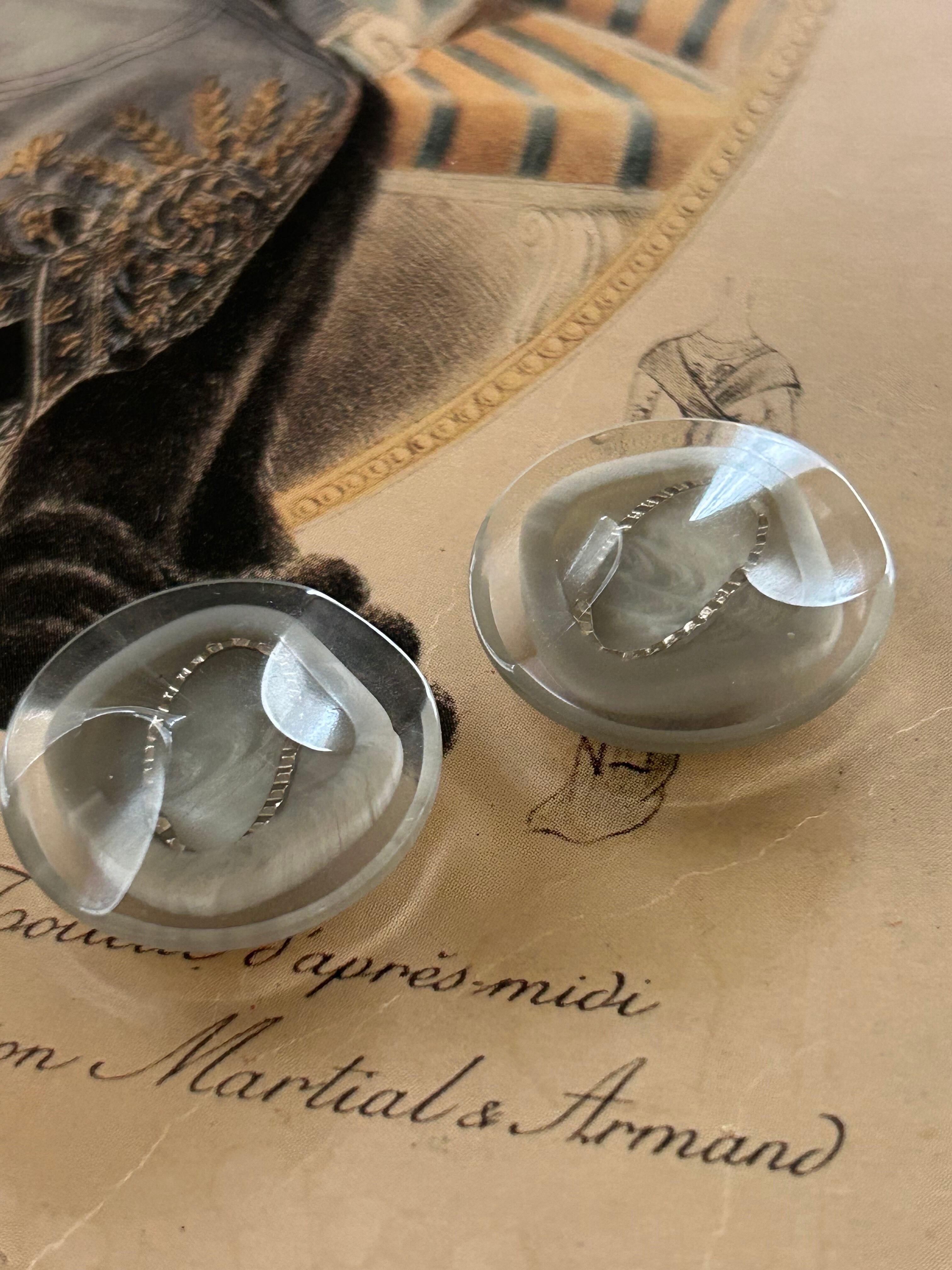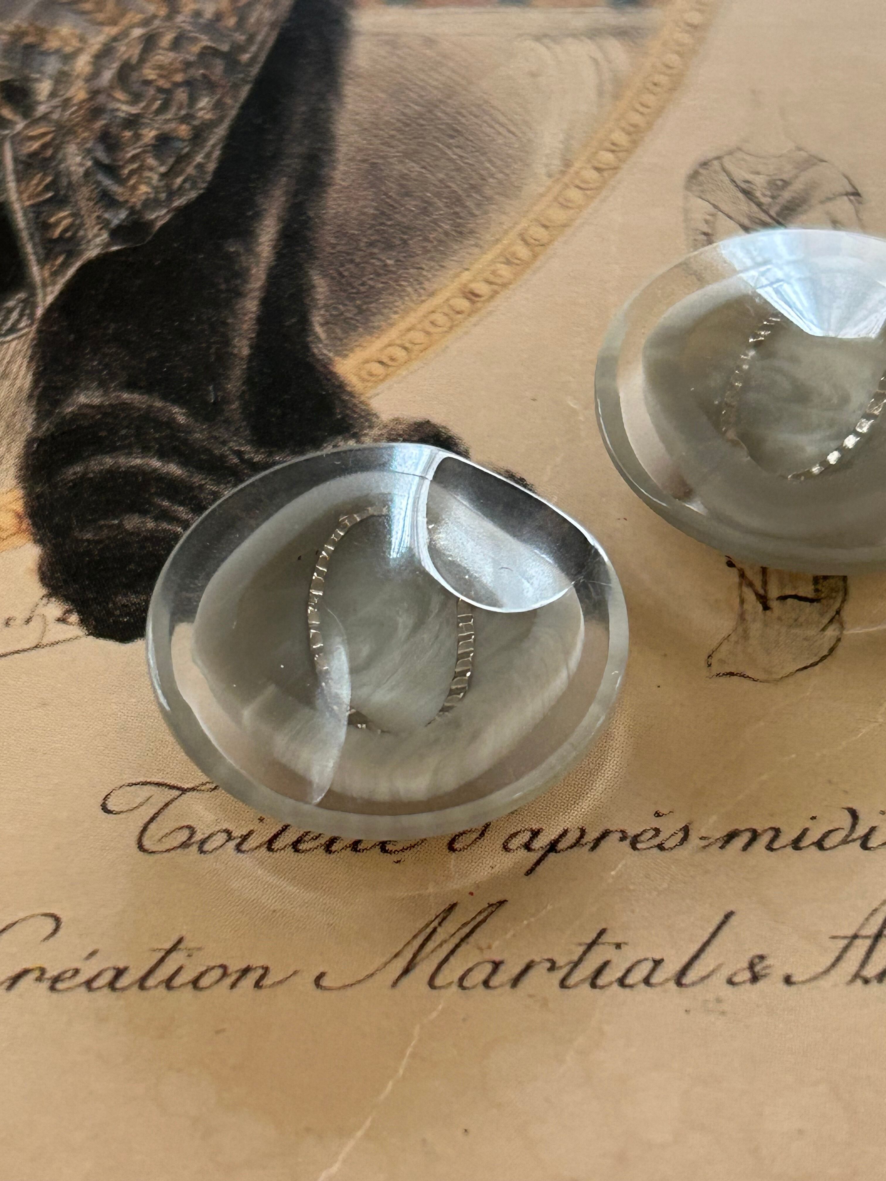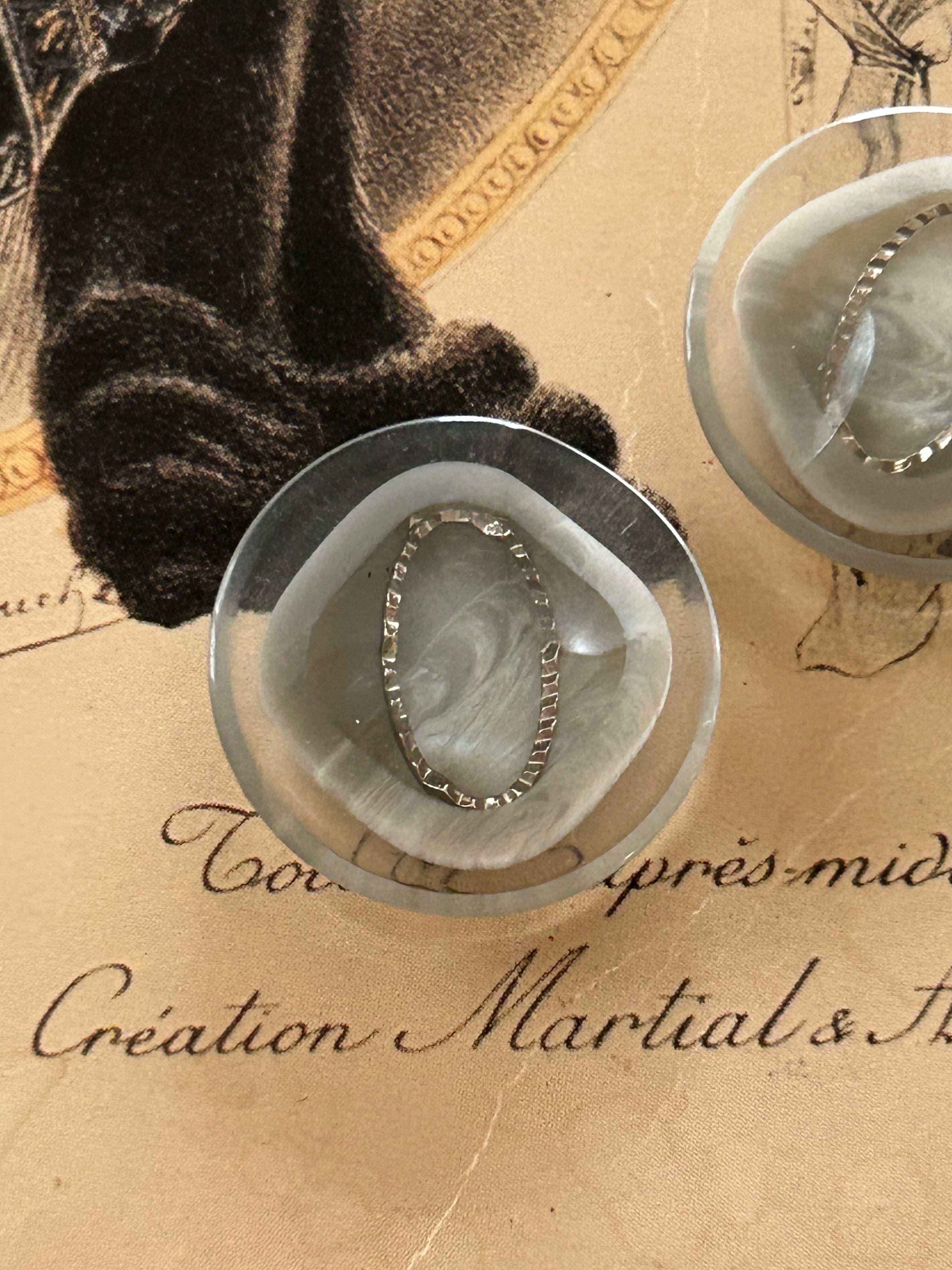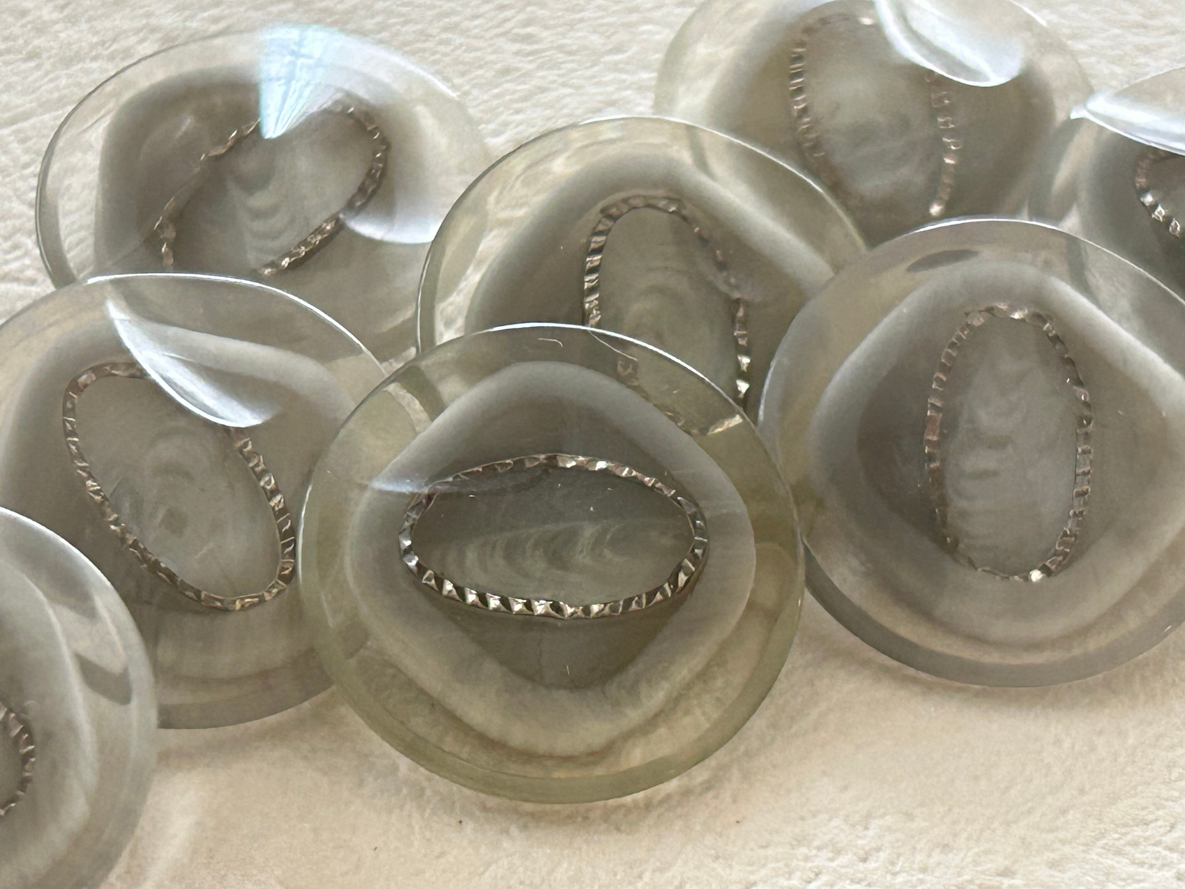 Japanese Vintage ボタン 22mm クリア×グレー×シルバー プラスチックボタン 昭和レトロ アクセサリーパーツ 装飾材 カルトナージュ