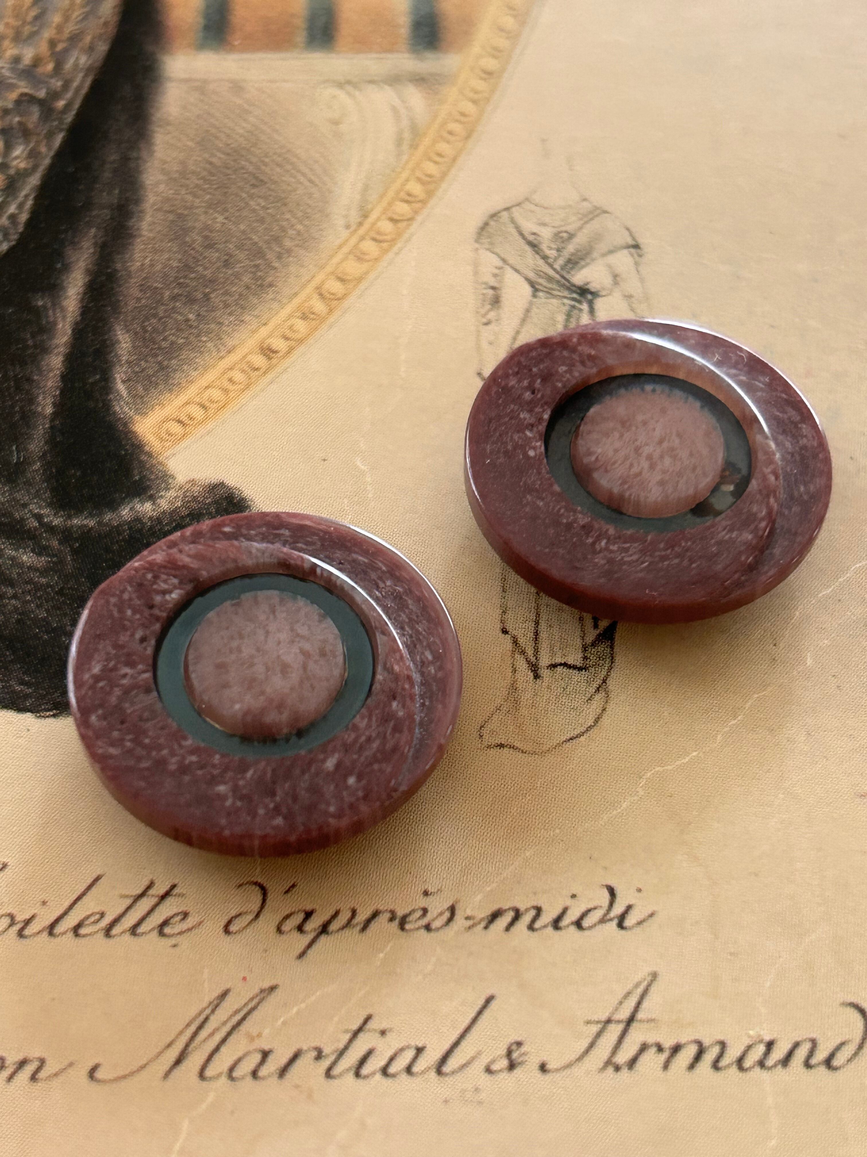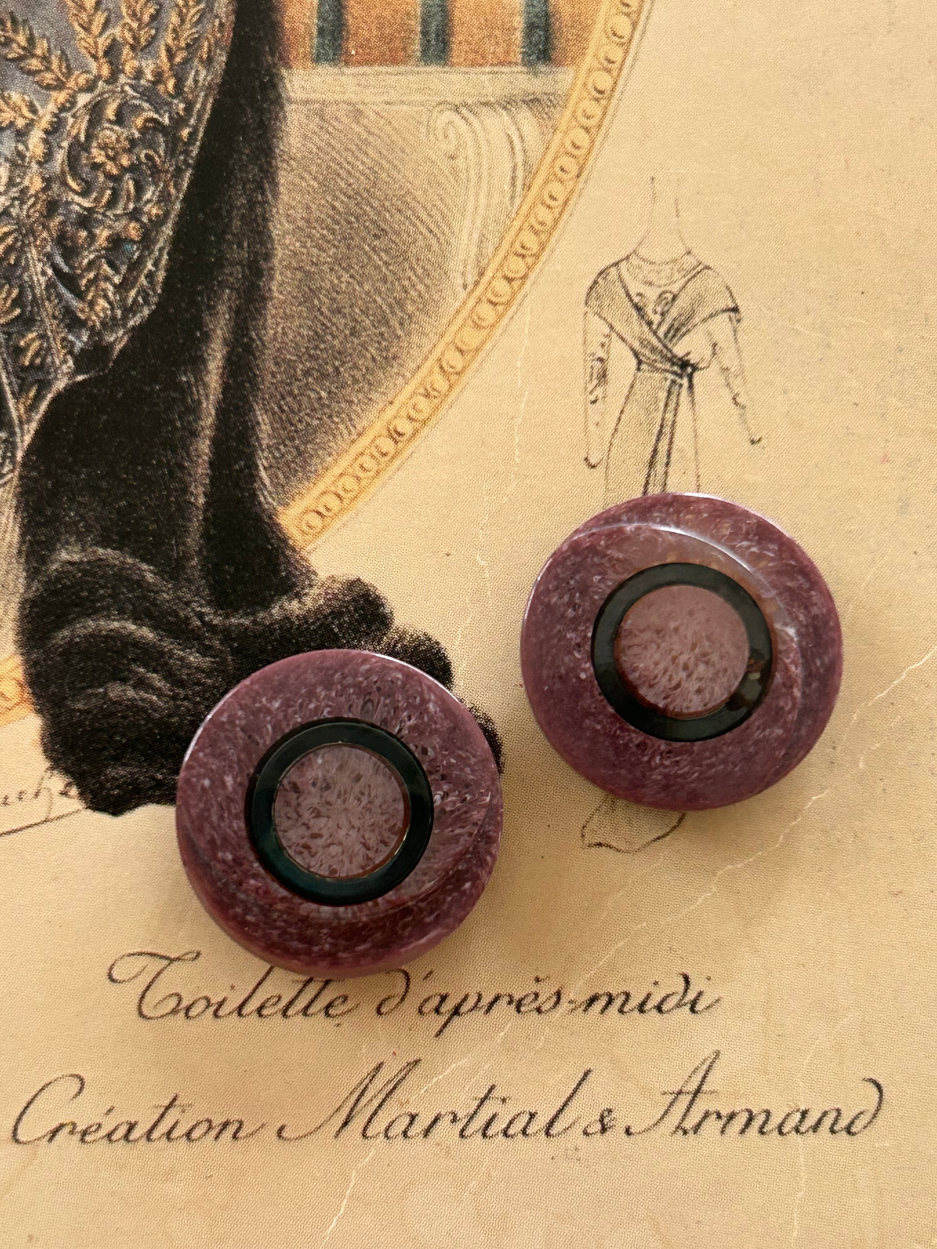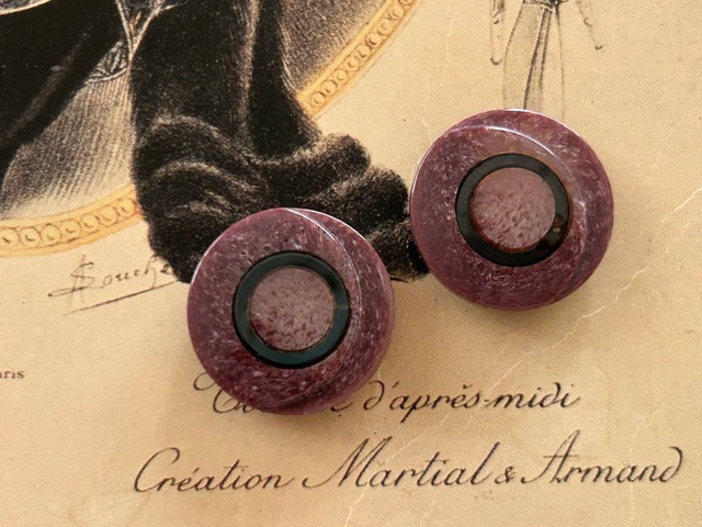 Japanese Vintage ボタン 赤紫×ブラック 20mm プラスチックボタン 昭和レトロ アクセサリーパーツ 装飾材 カルトナージュ