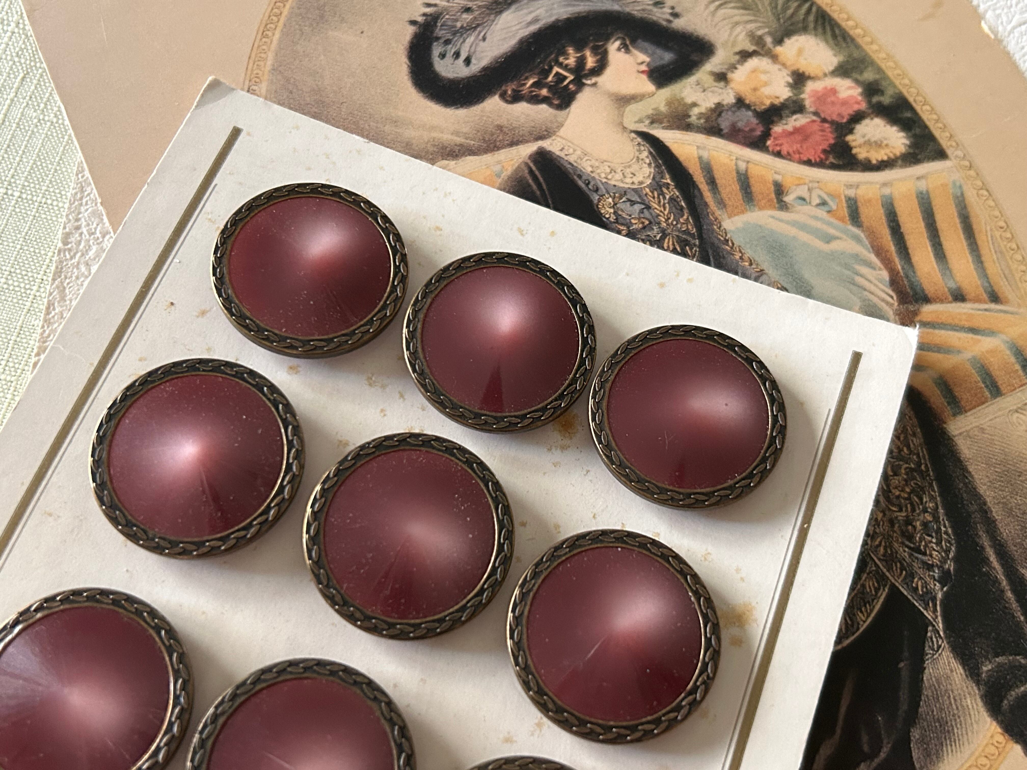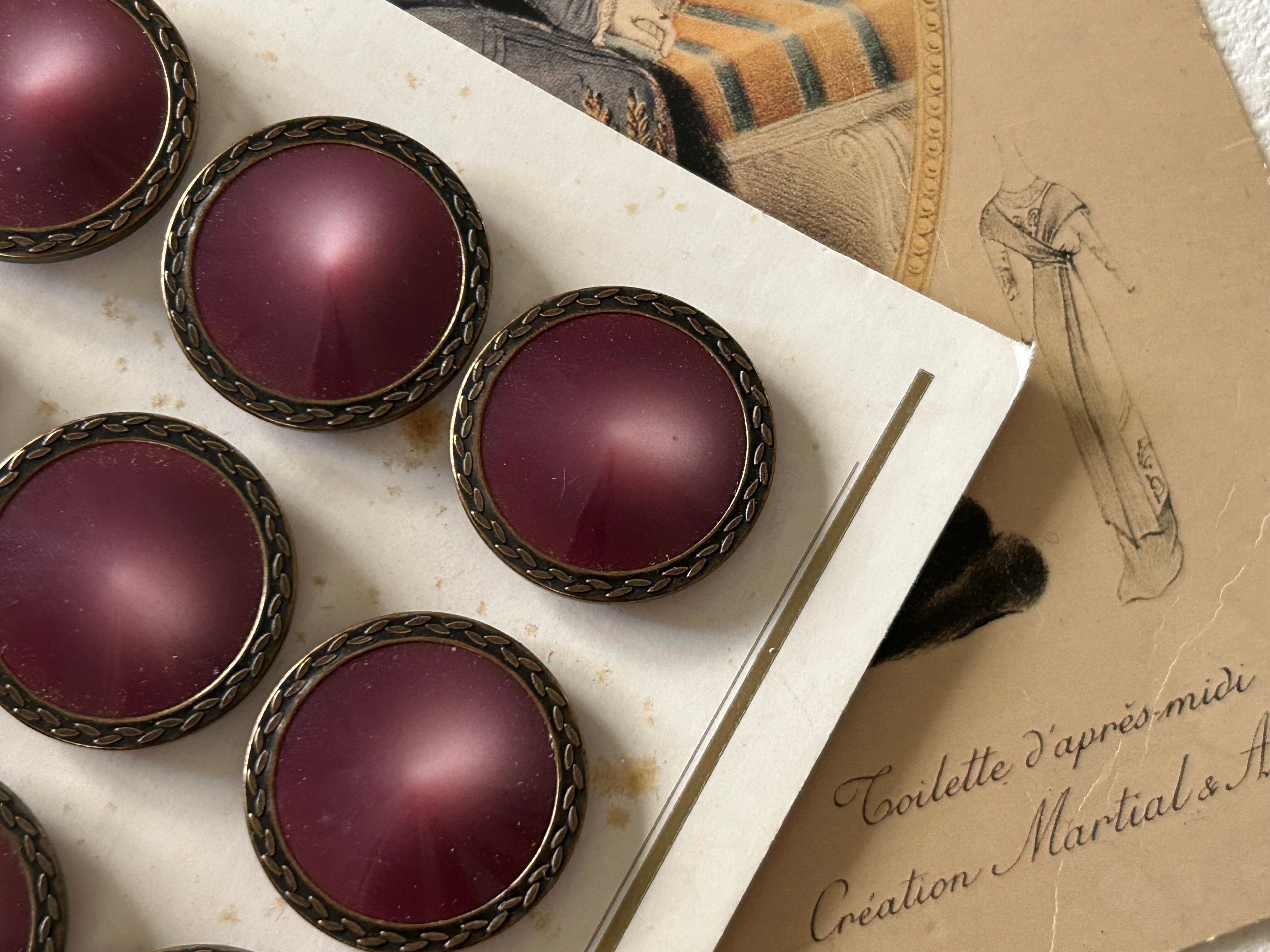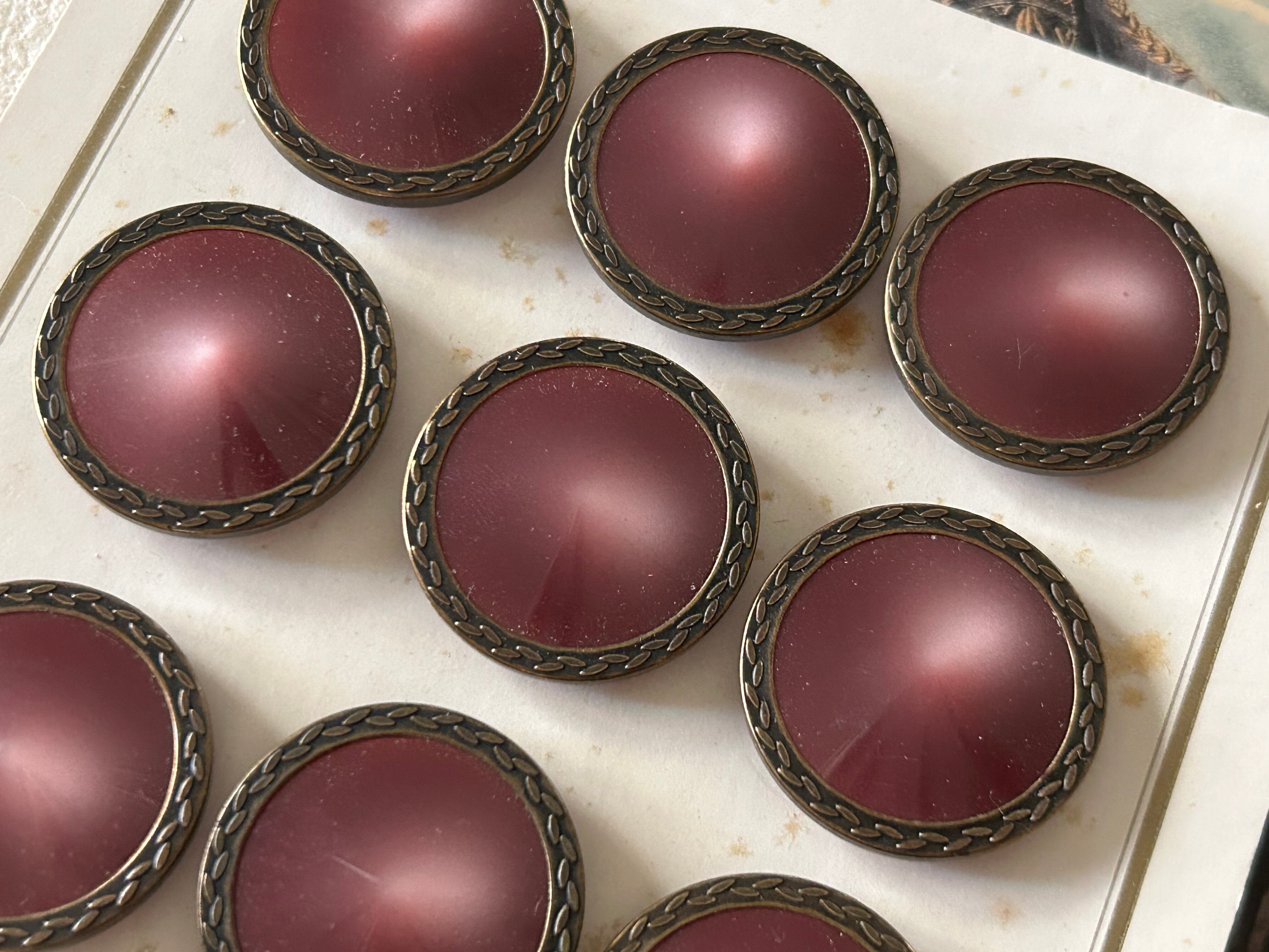 フランスVintage ワインレッド 27mm 1970年代 プラスチックボタン アクセサリーパーツ デコレーション材 カルトナージュ