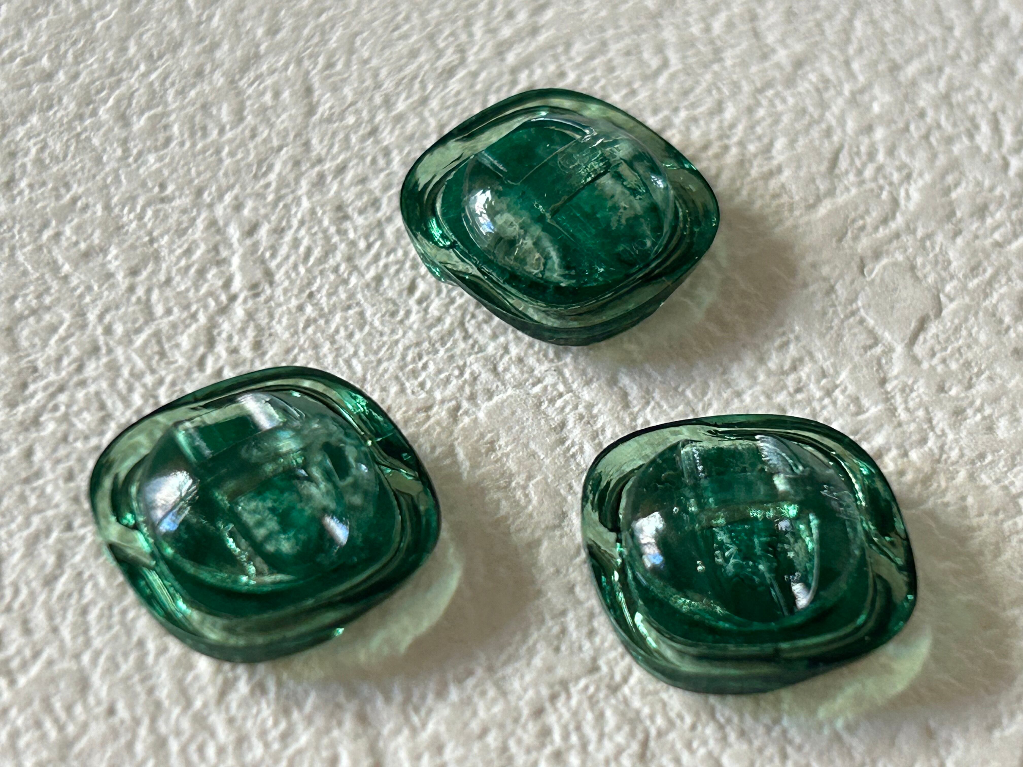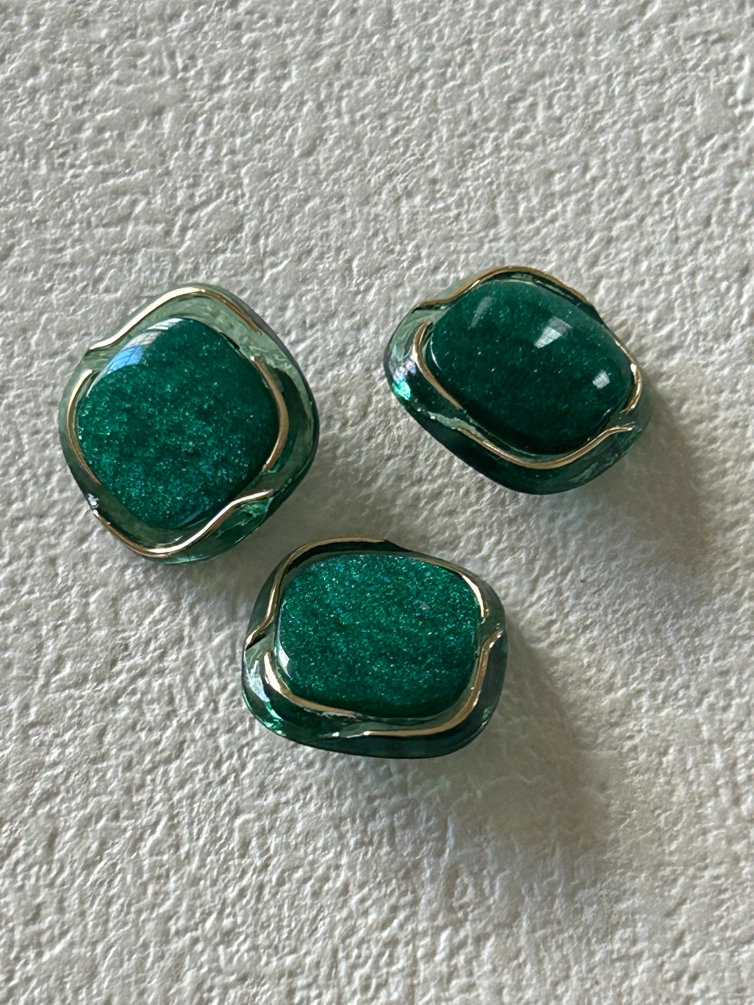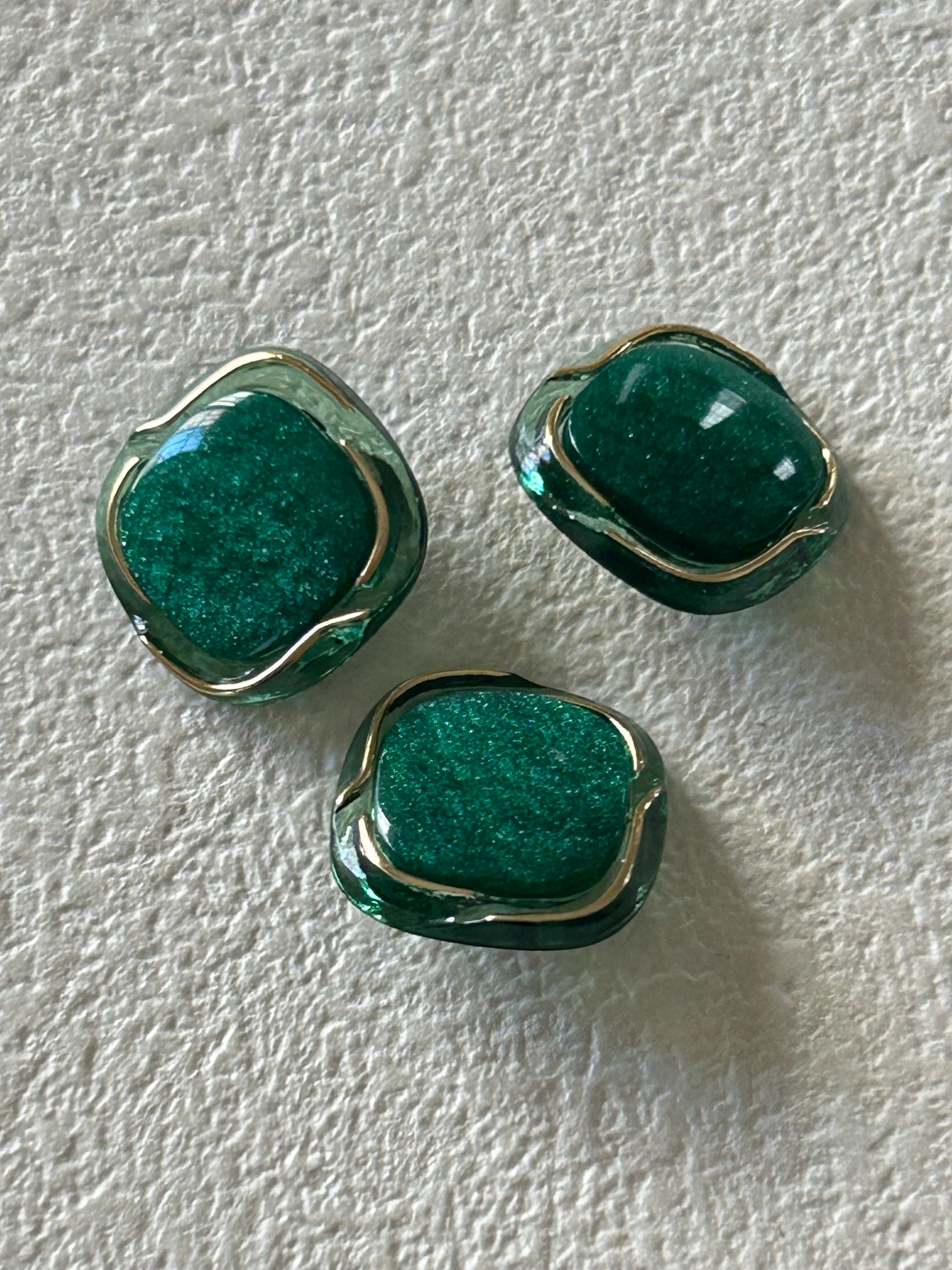 クリアなグリーンのプラスチックの台座にグリーンのカボション。