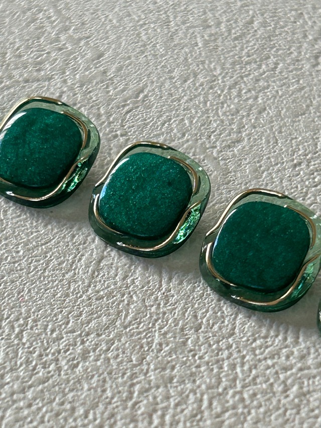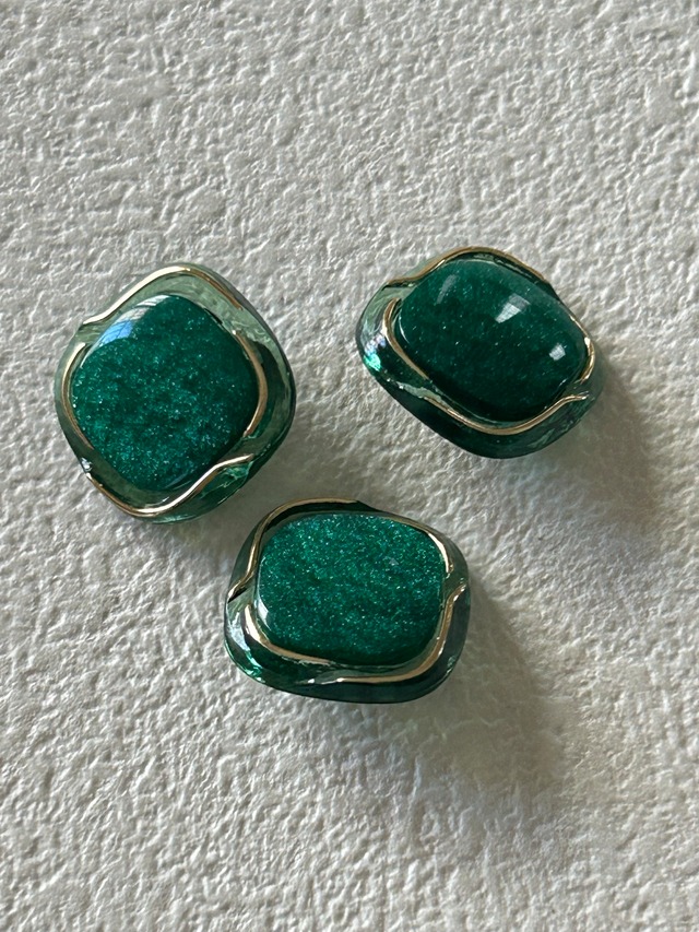 Japanese Vintage ボタン 14mm buttonグリーン×ゴールド アクセサリーパーツ プラスチック 装飾材 カルトナージュ