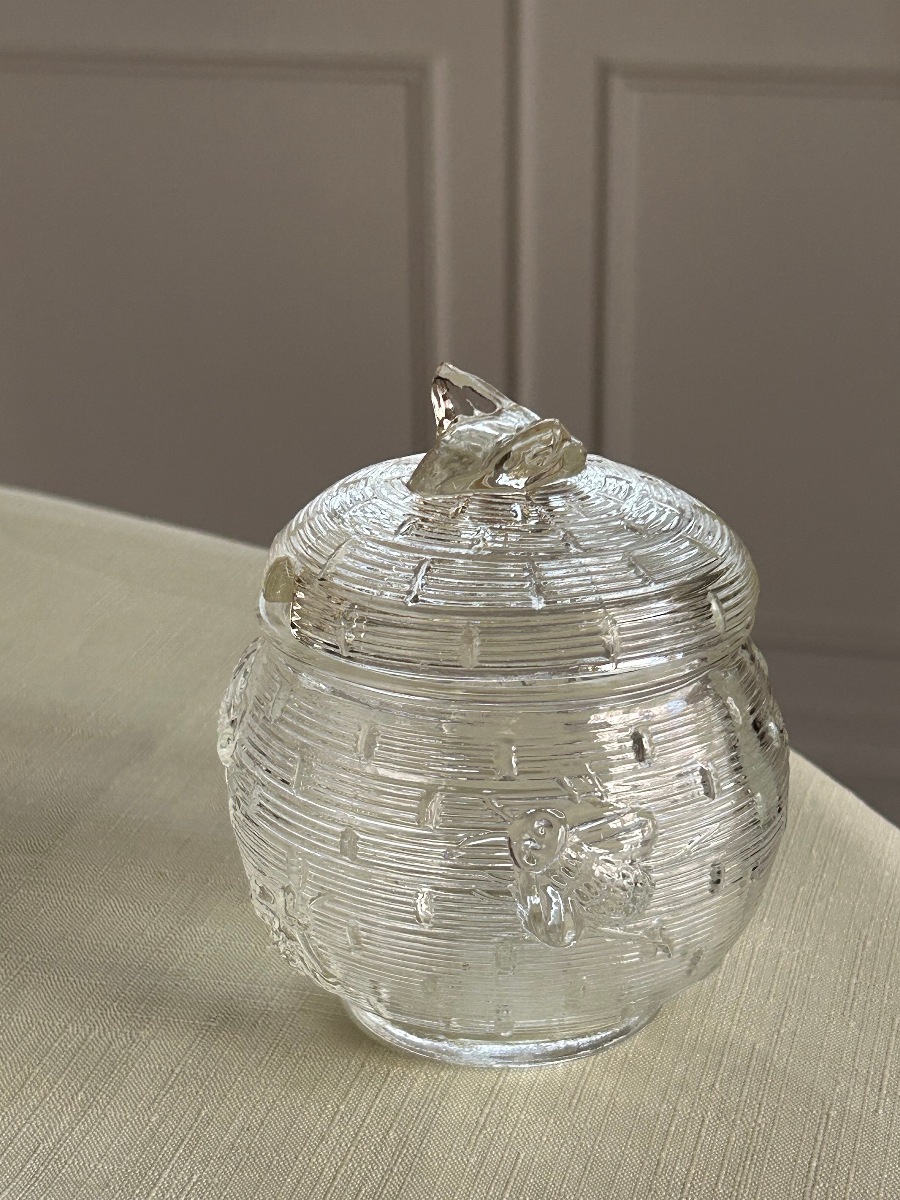 英国Vintage 蜜蜂 蜜蜂の巣箱のハニーポット ガラス製 クリア ジャム シュガーポット 小物入れ ディスプレイ小物