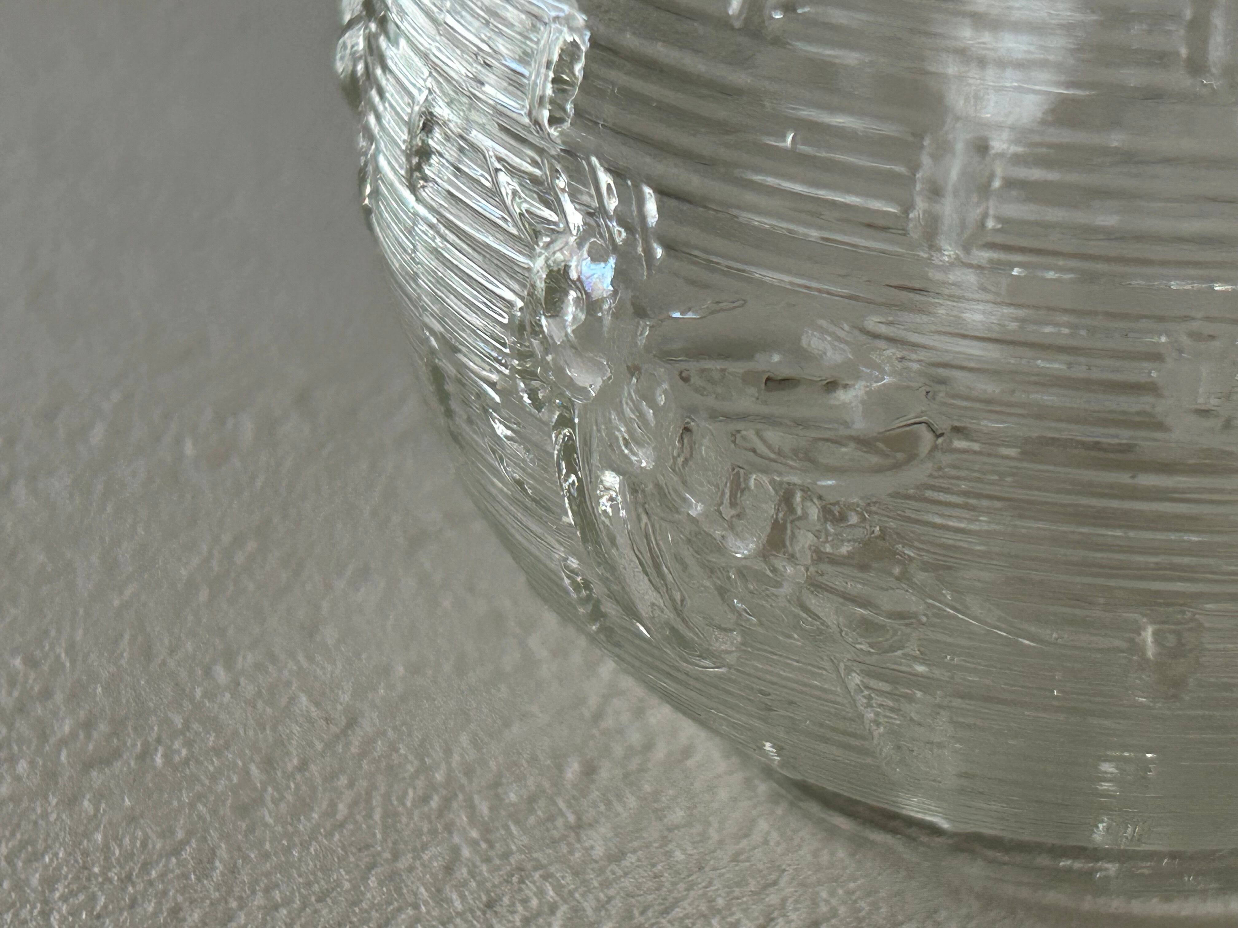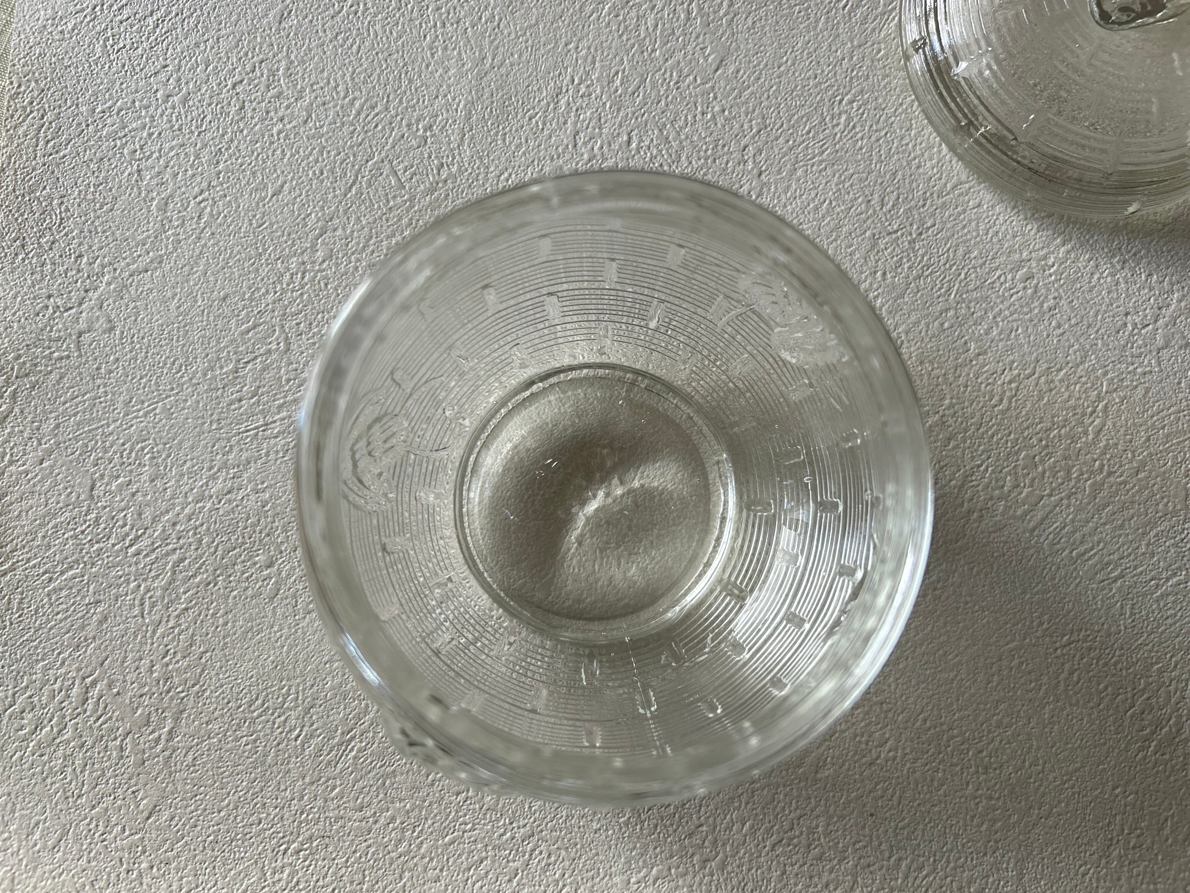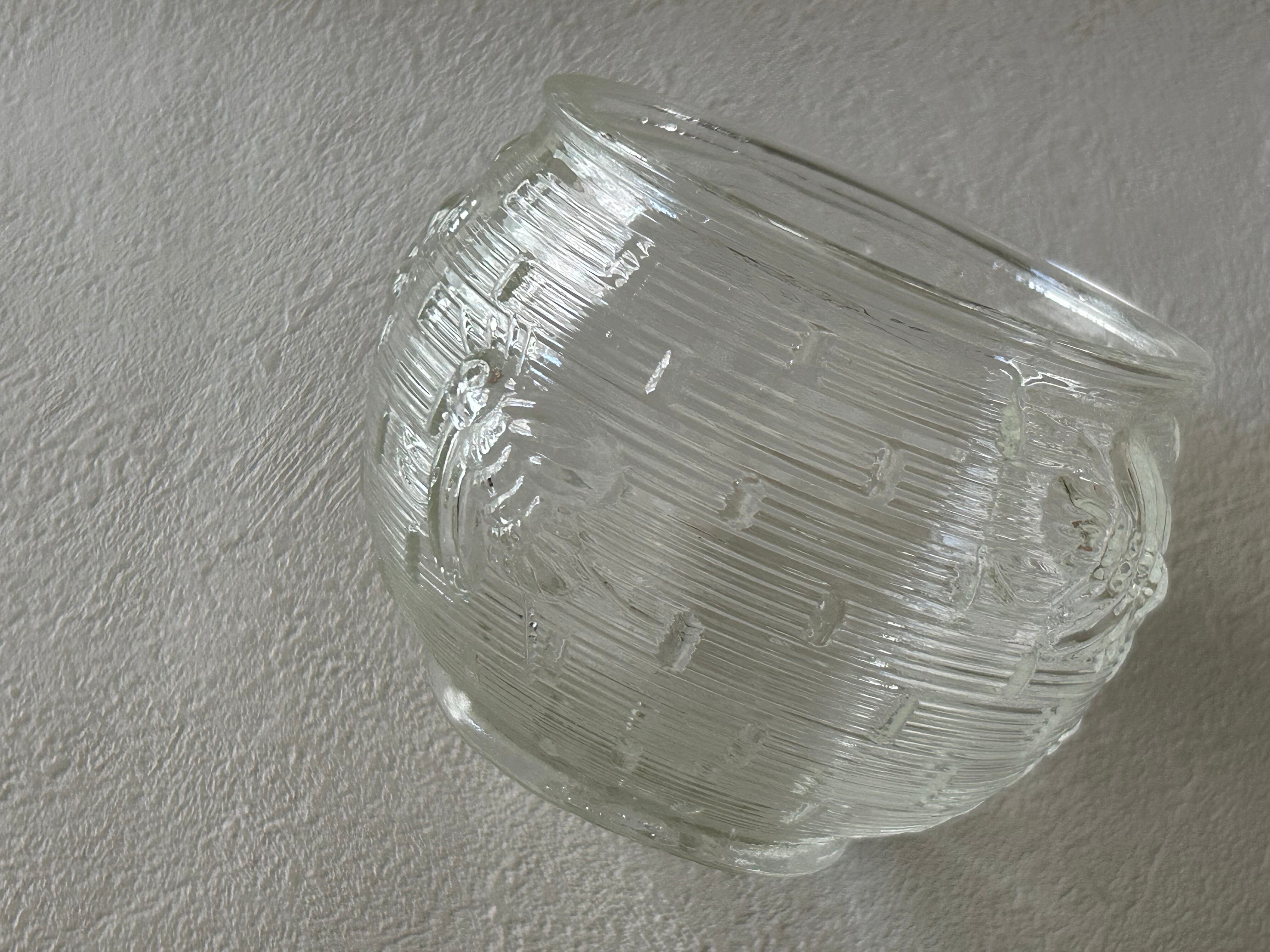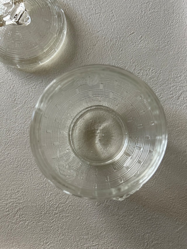同じデザインの陶器製のもには目にしますがガラス製は初めてお目にかかります。