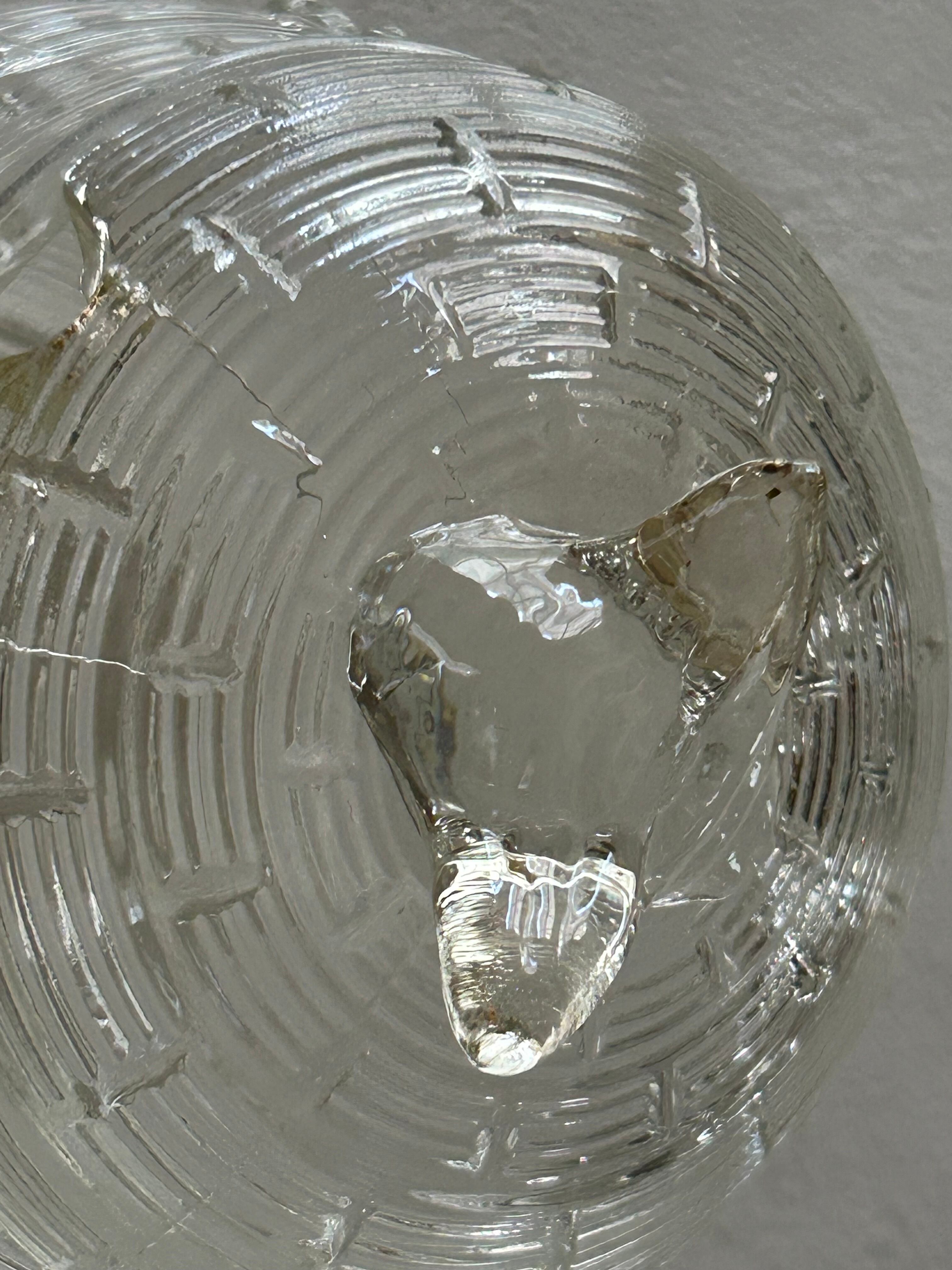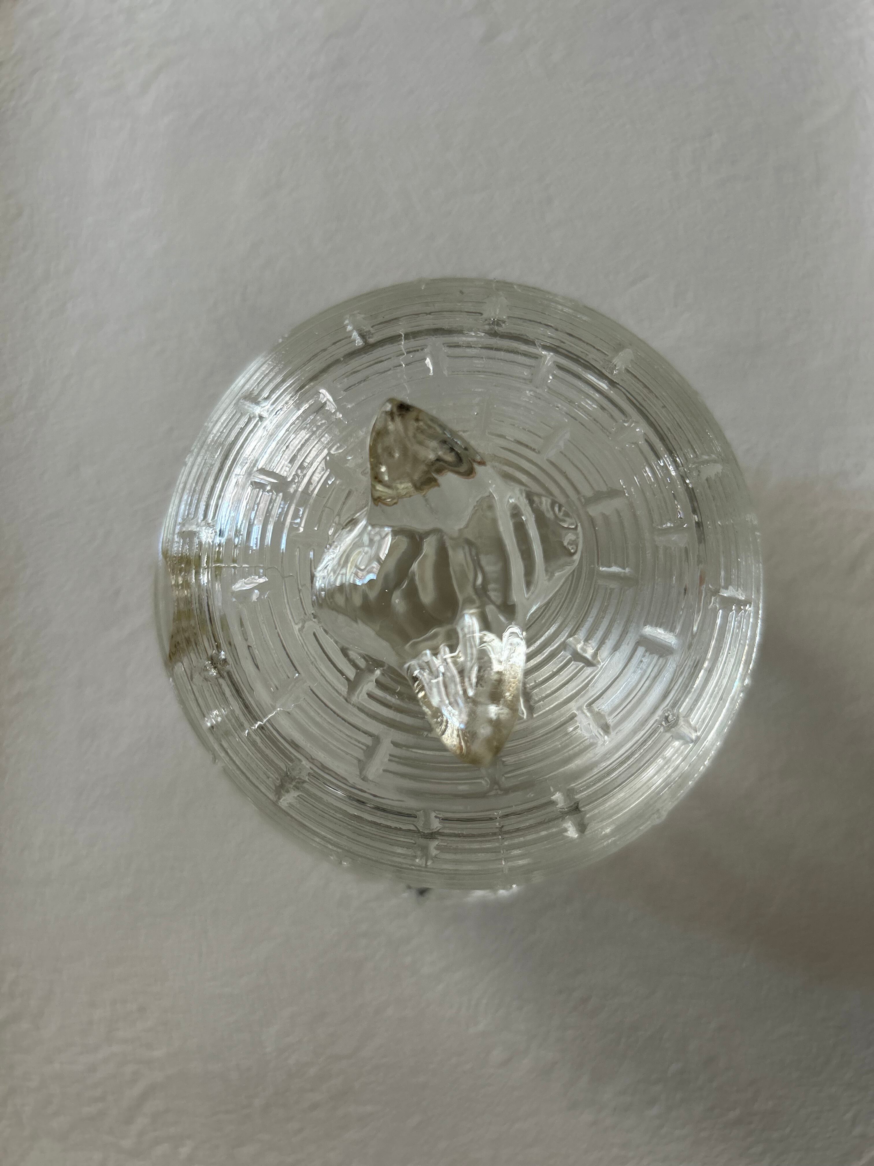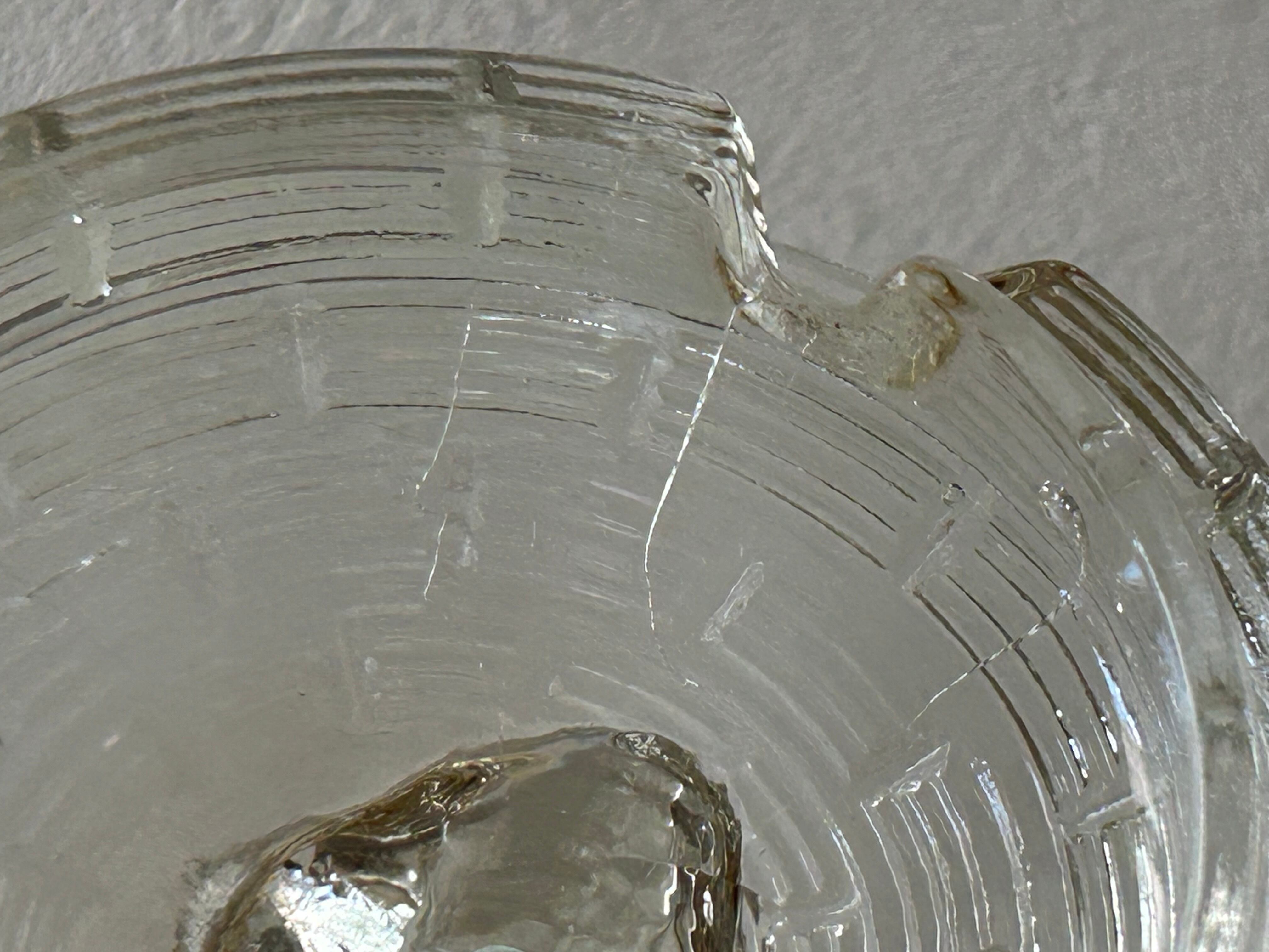 同じデザインの陶器製のもには目にしますがガラス製は初めてお目にかかります。