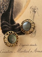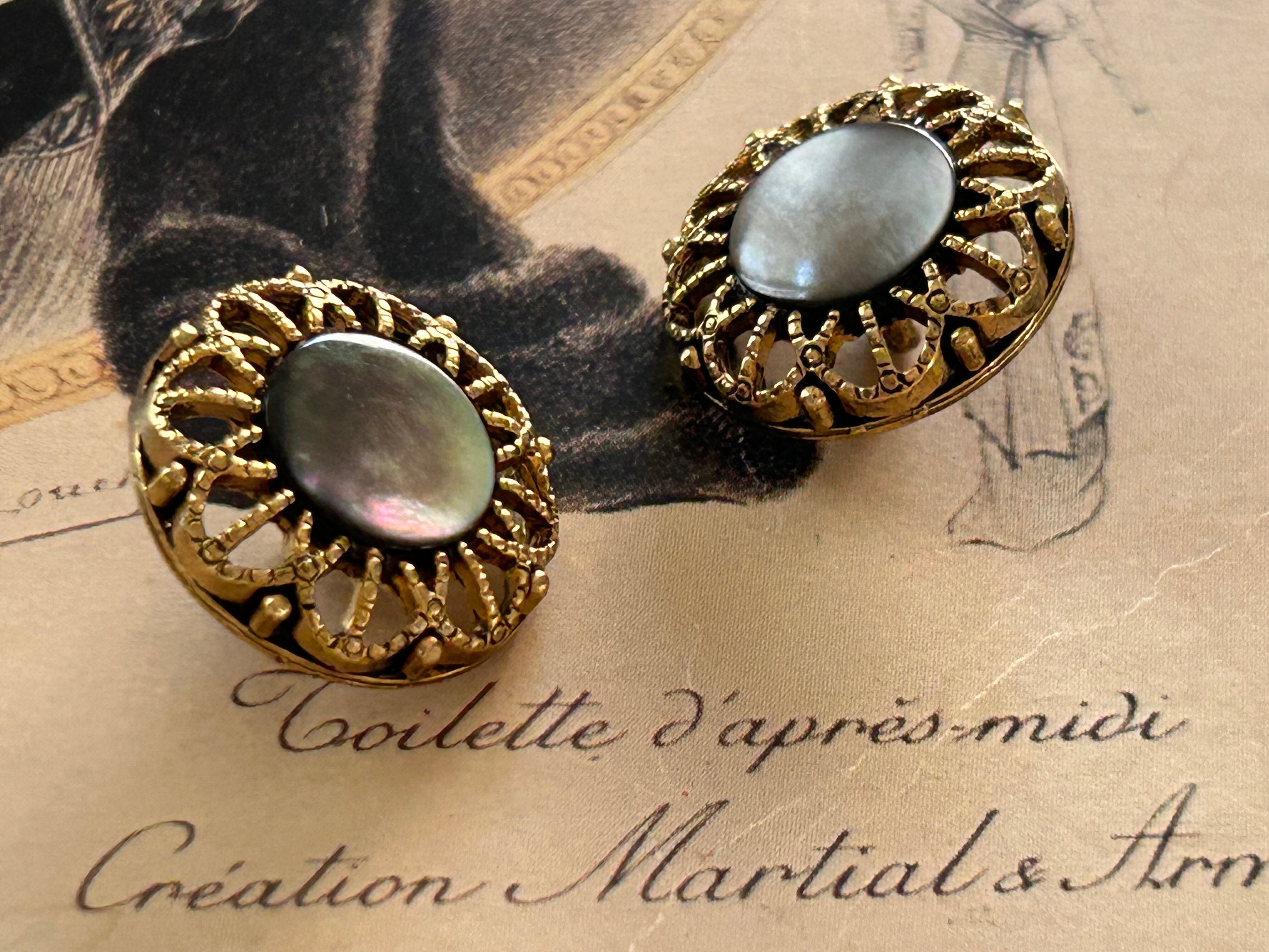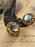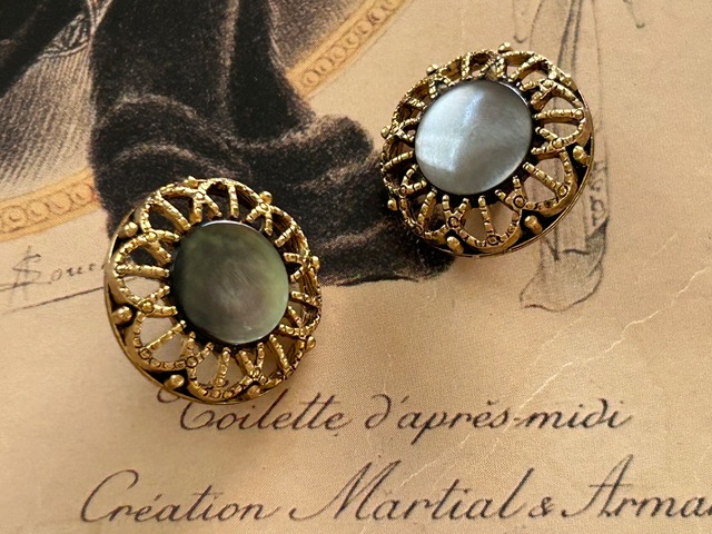 中央にシェルのカボション。エレガントなゴールドの透かしの台座