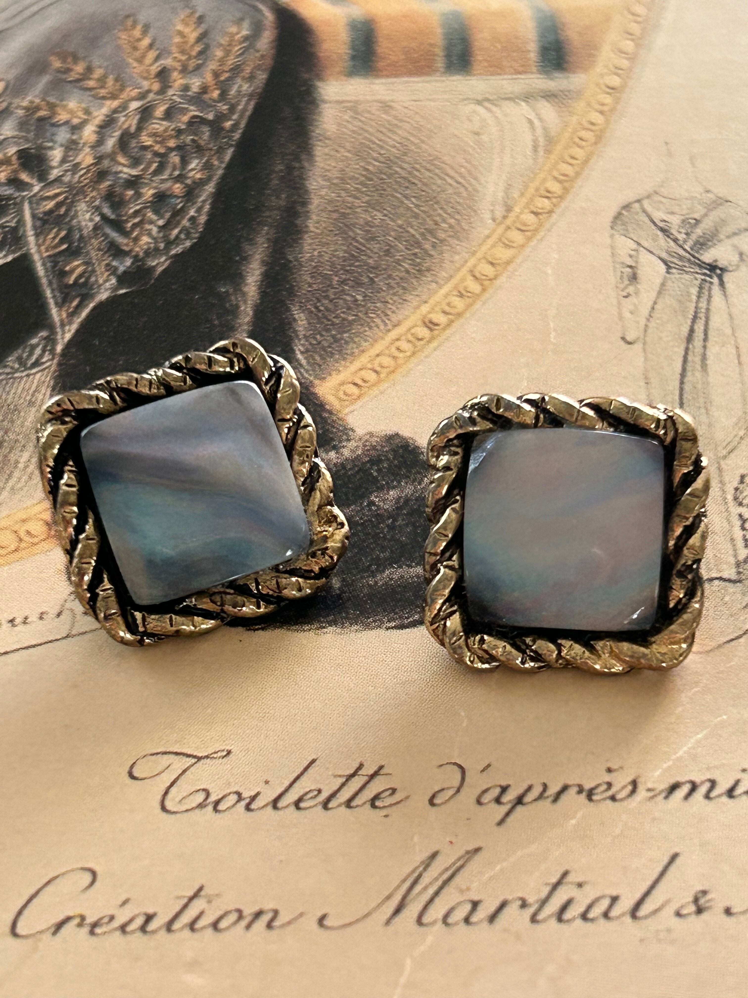 美しいシェルのカボションにクラシカルなフレームの台座。