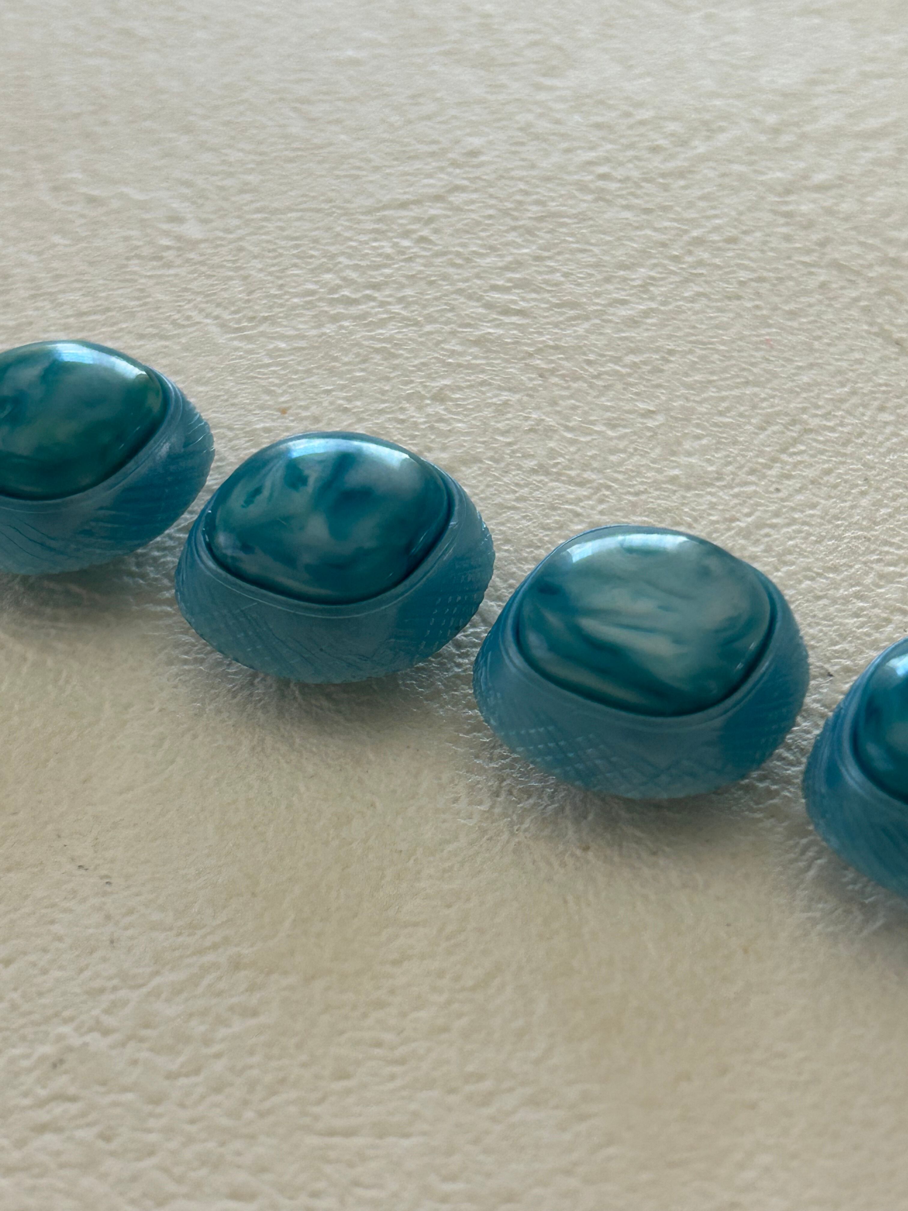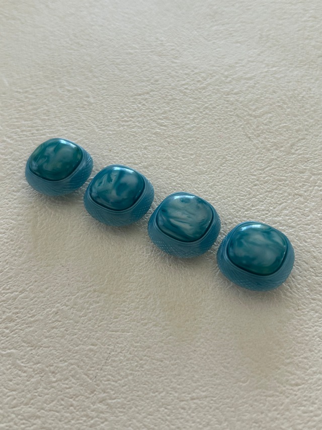 Japanese Vintage ヴィンテージボタン スクウェア カボション マーブル×ライトブルー 18mm レトロボタン アクセサリーパーツ 装飾材 カルトナージュ