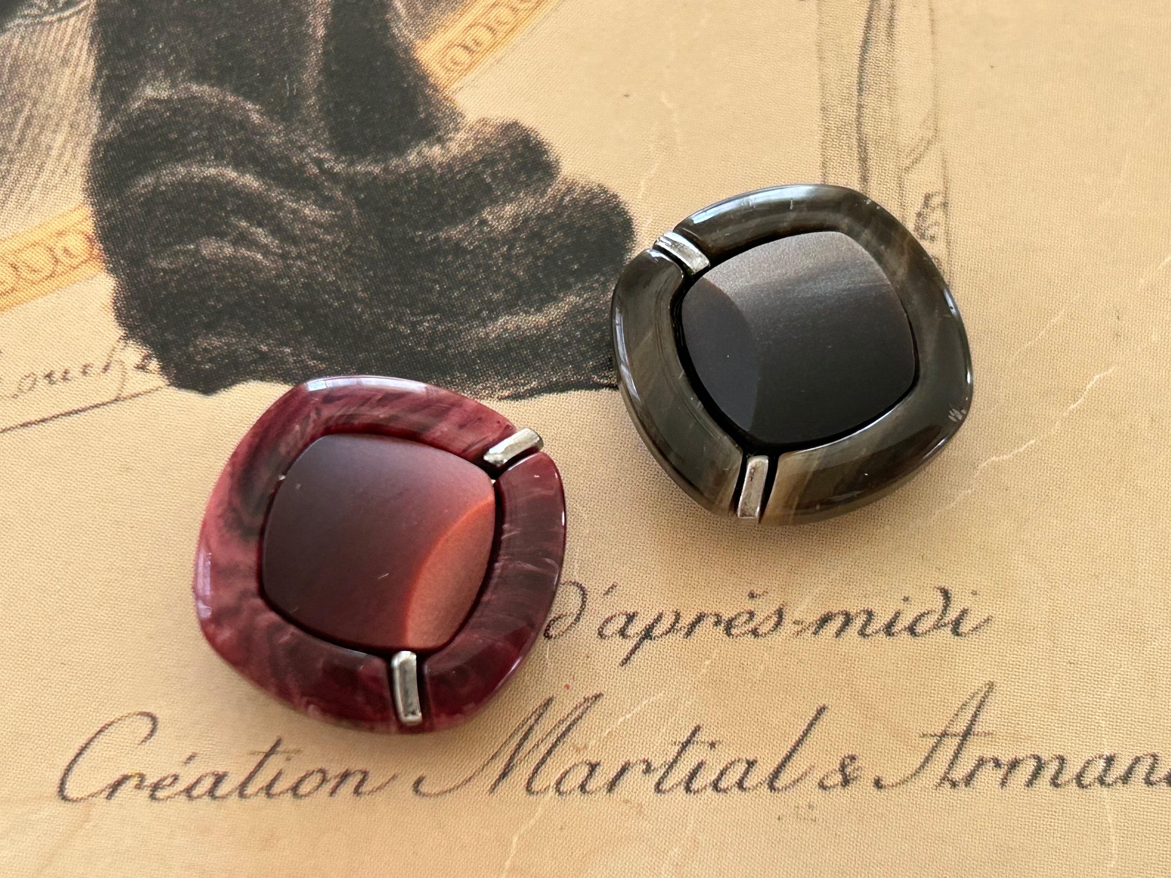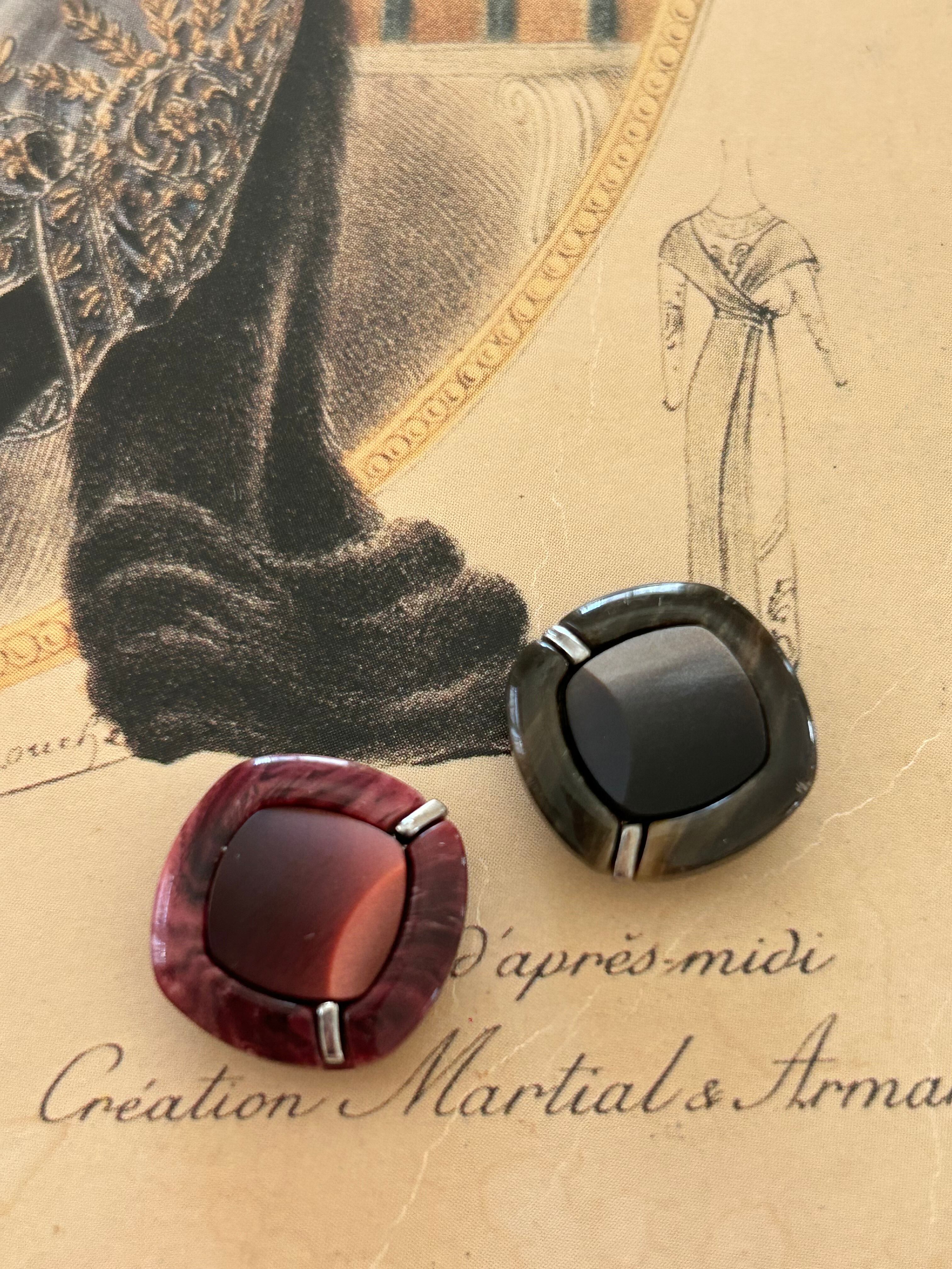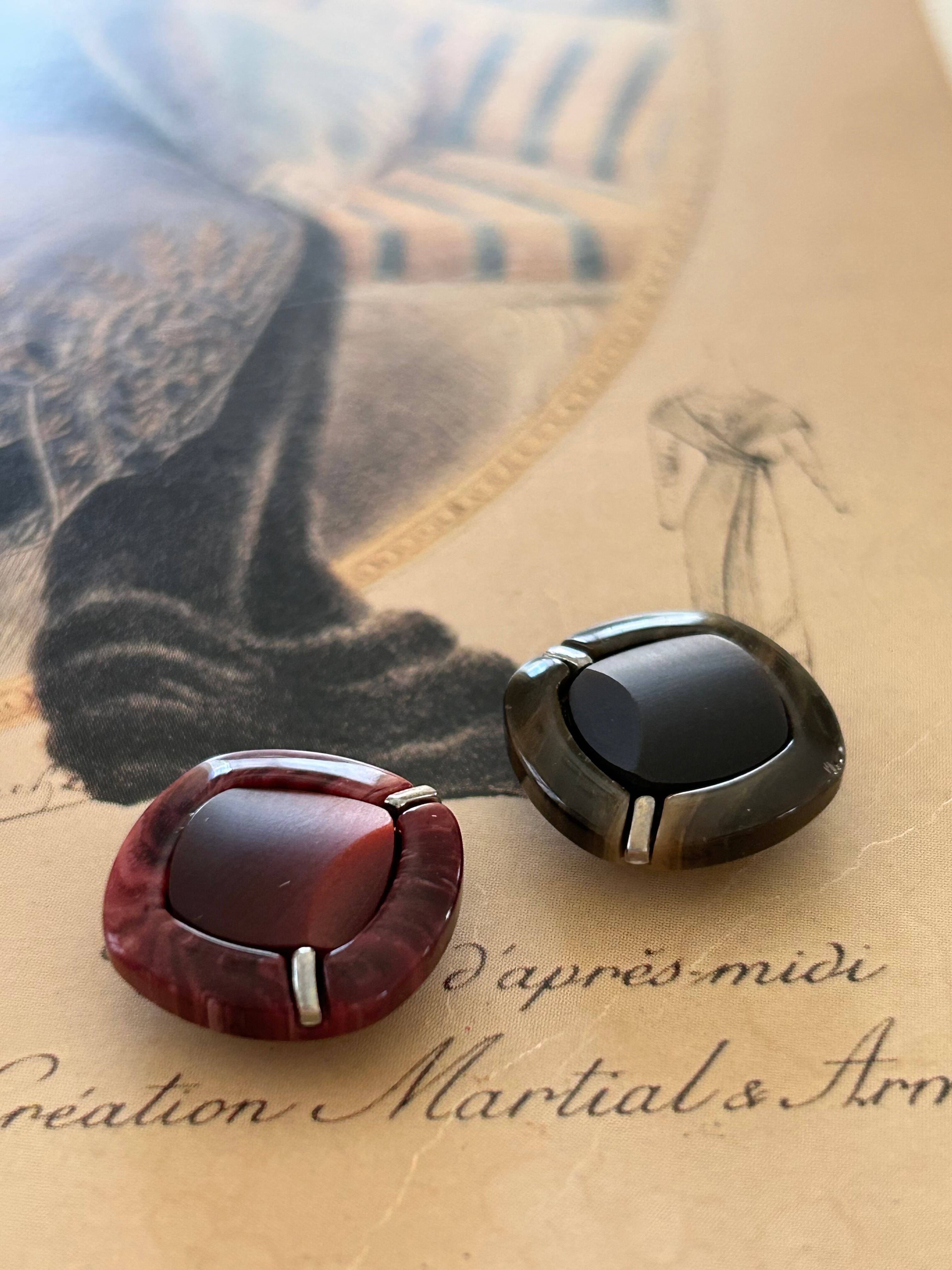 Japanese Vintage ボタン 角なしスクウェア ワインレッド/ブラウン 16mm カボション 昭和レトロ アクセサリーパーツ 装飾材 カルトナージュ