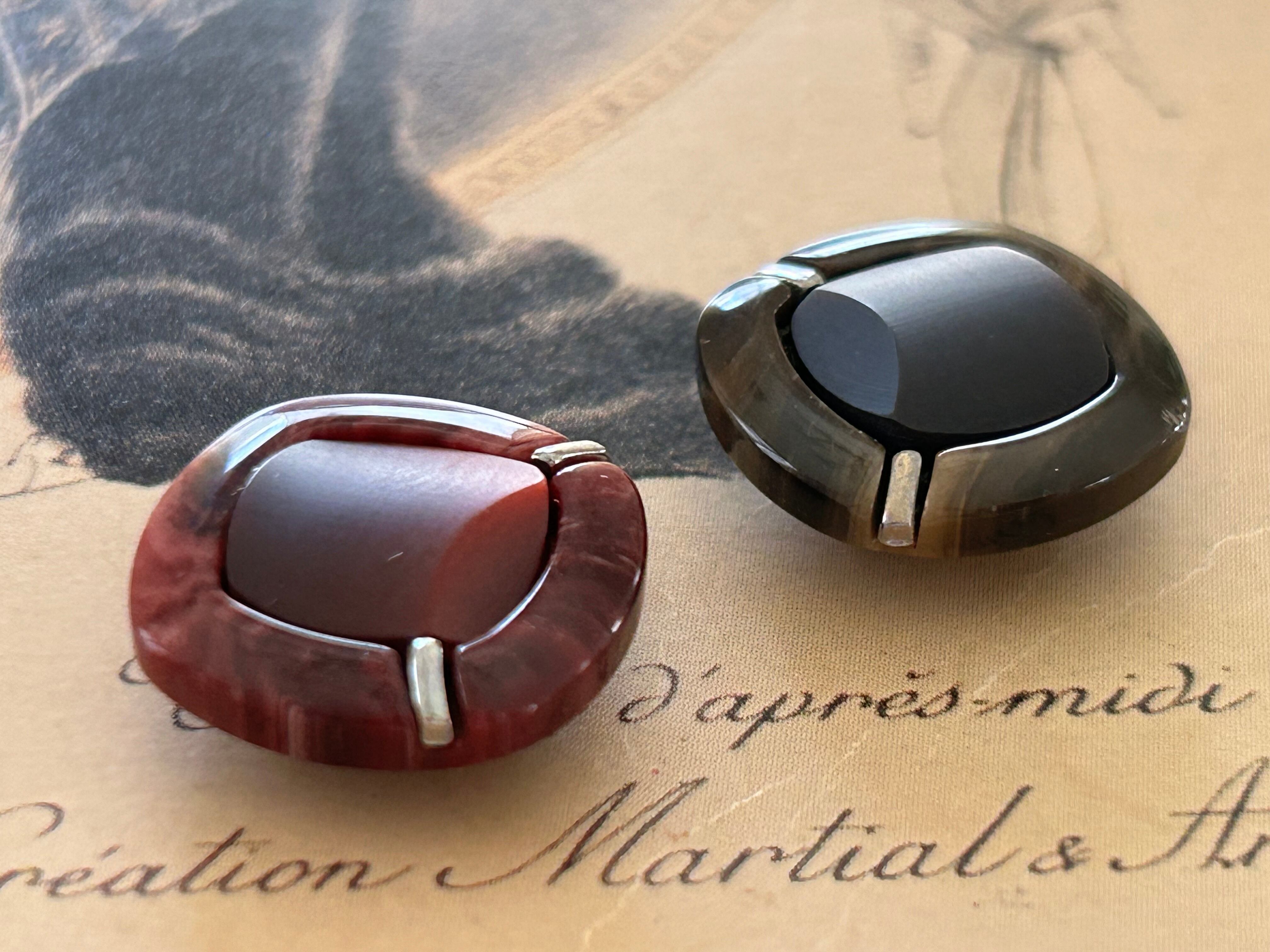マーブル調のプラスチック製台座に、同系色のマットでシックなグラデーションのカボション。