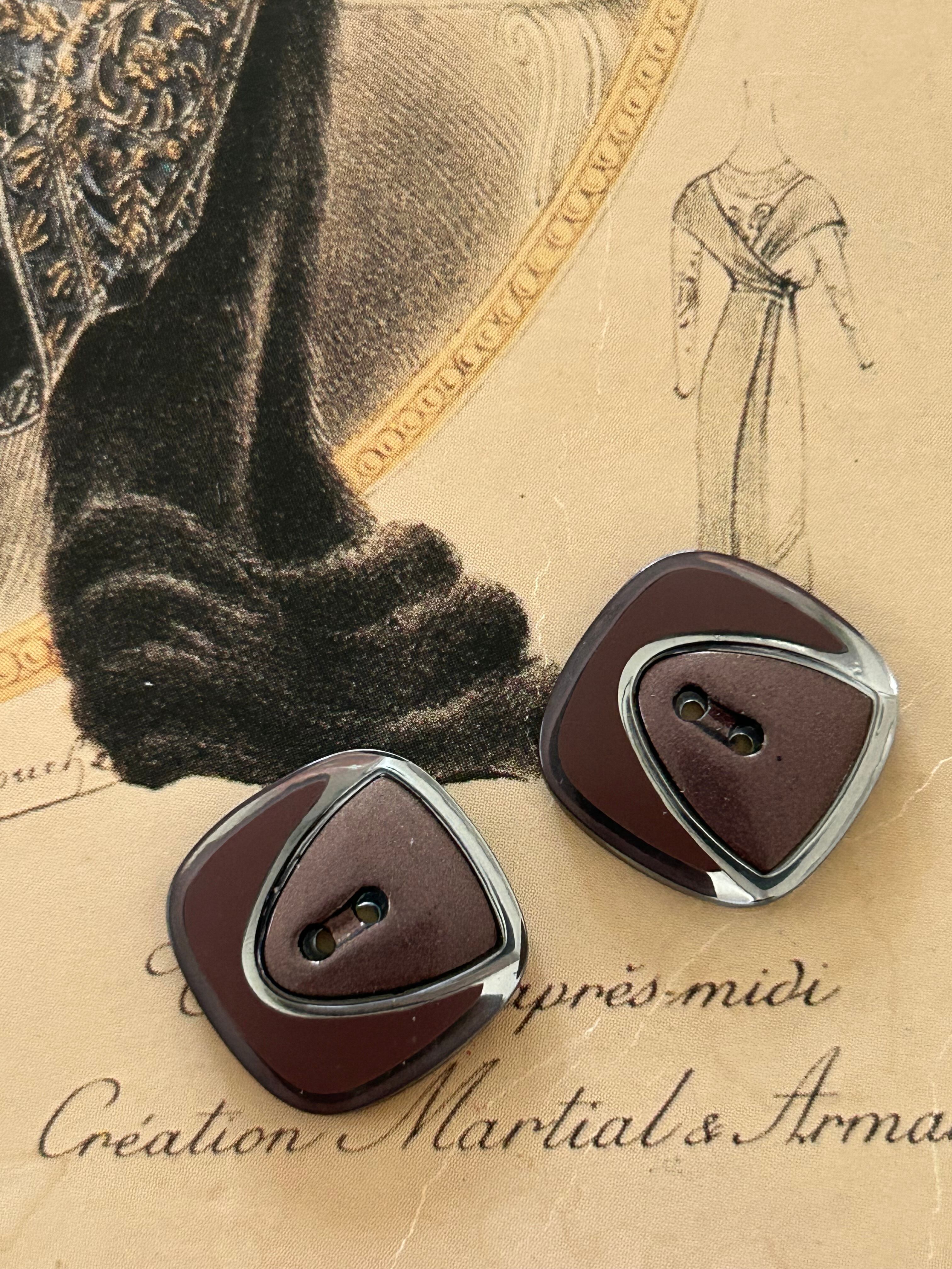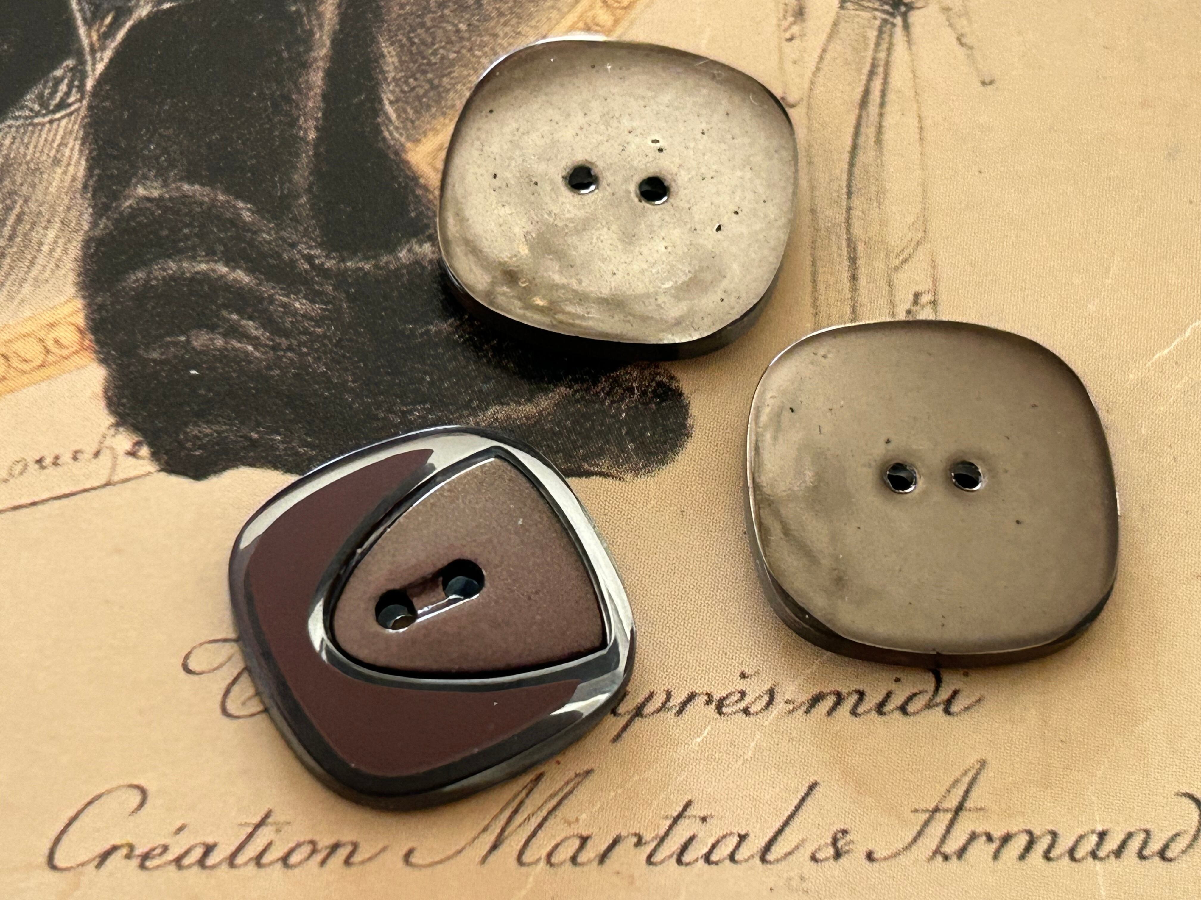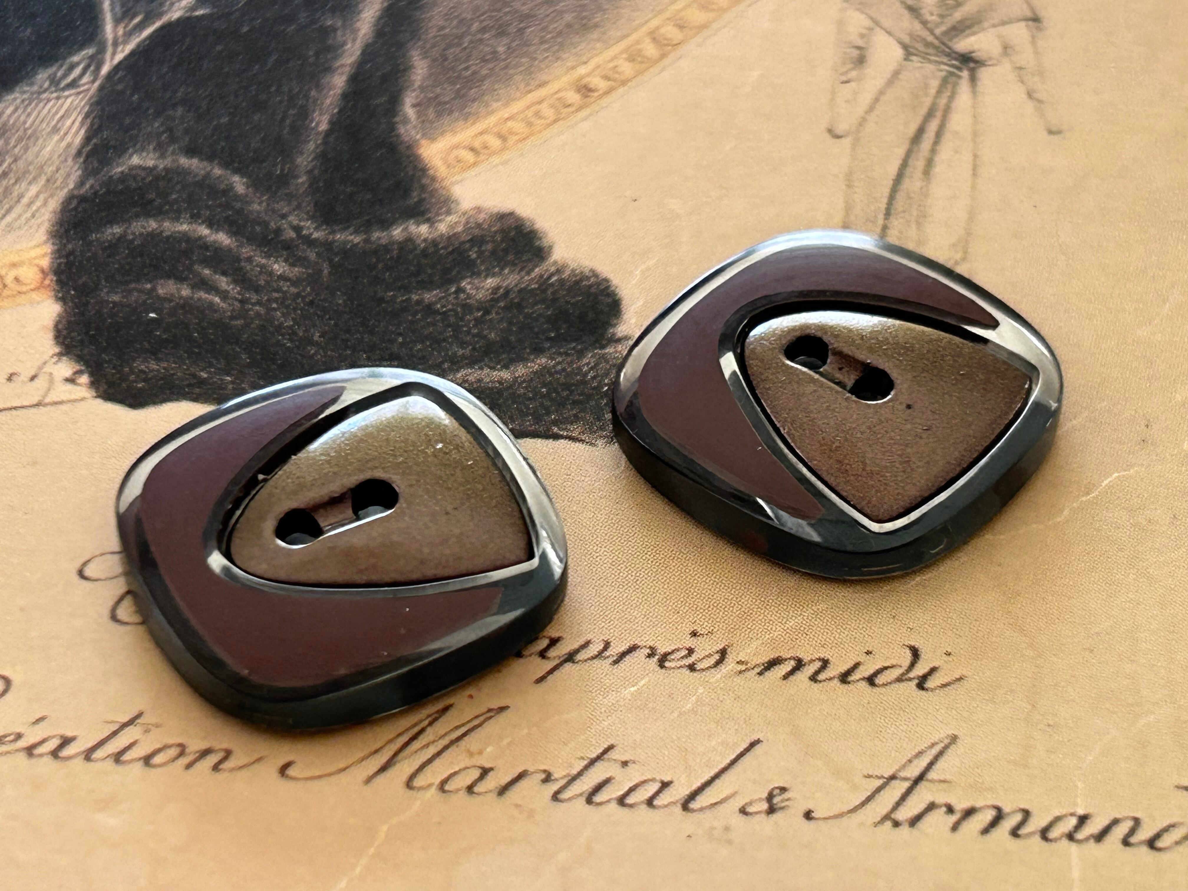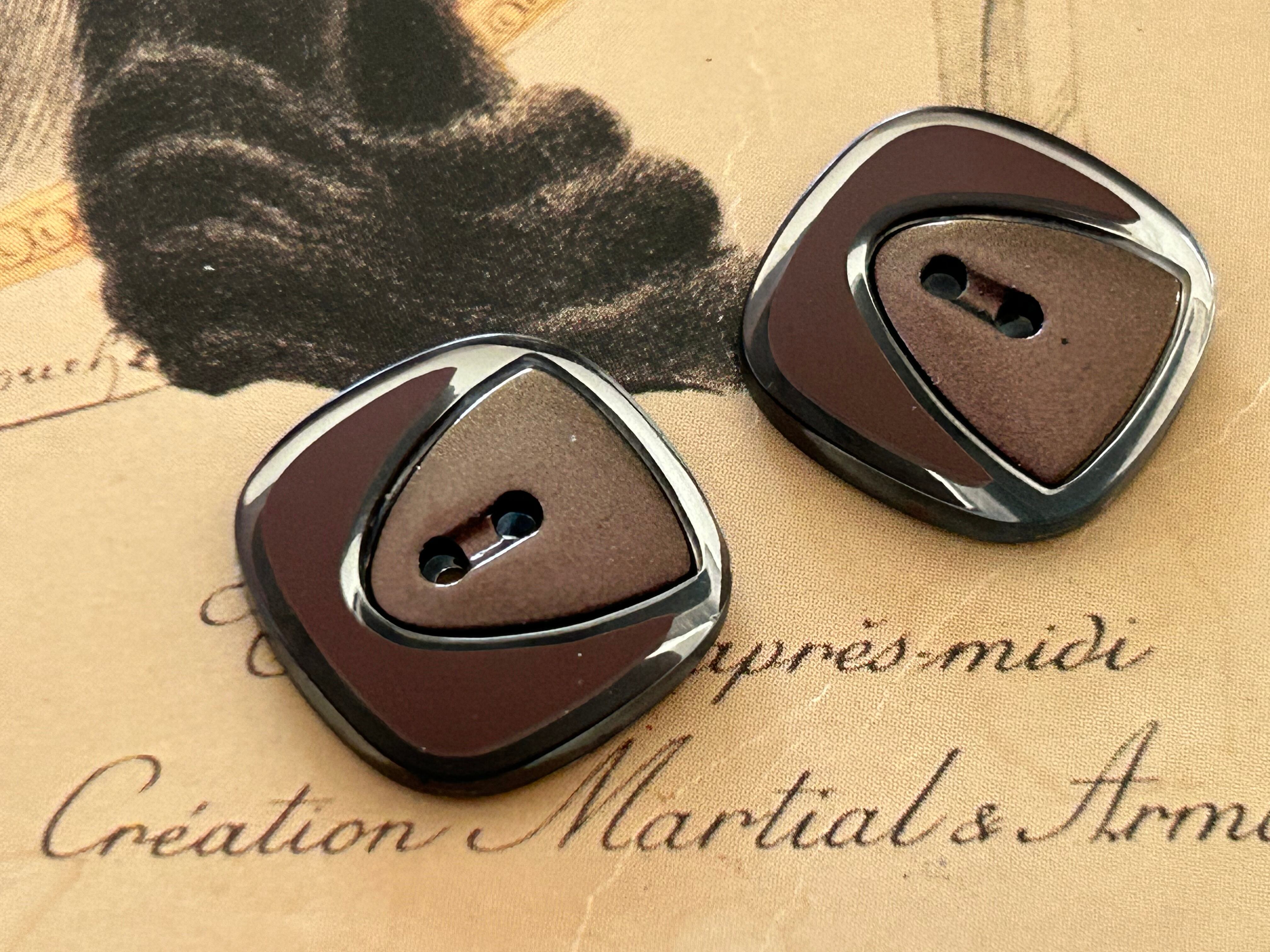 艶やかな発色良いブラウン×クリアカラーの角なしスクウェア型ボタン。