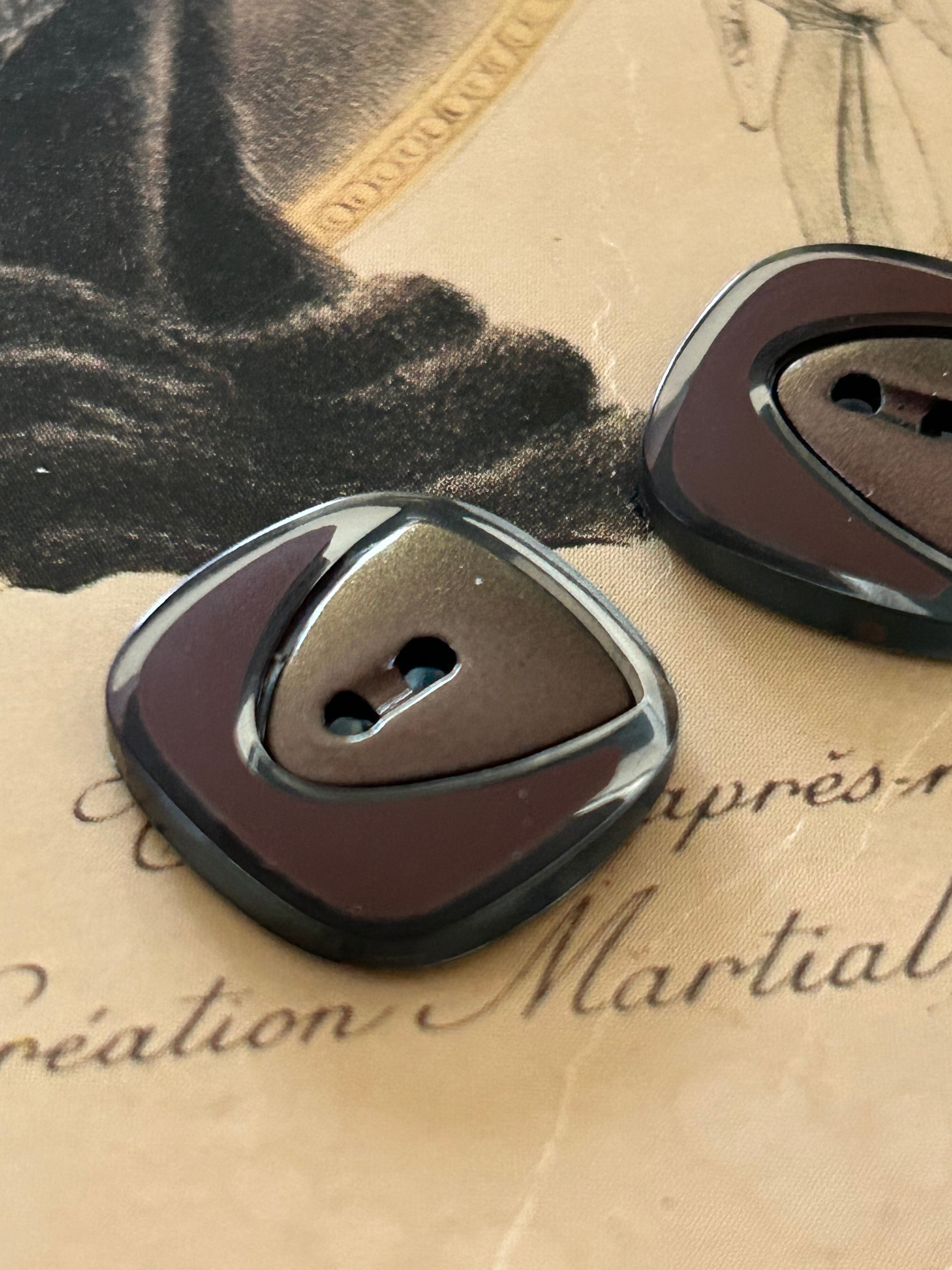 Japanese Vintage ボタン 角なしスクウェア 17mm ブラウン×クリア 2個セット 昭和レトロ アクセサリーパーツ 装飾材 カルトナージュ