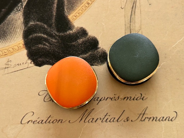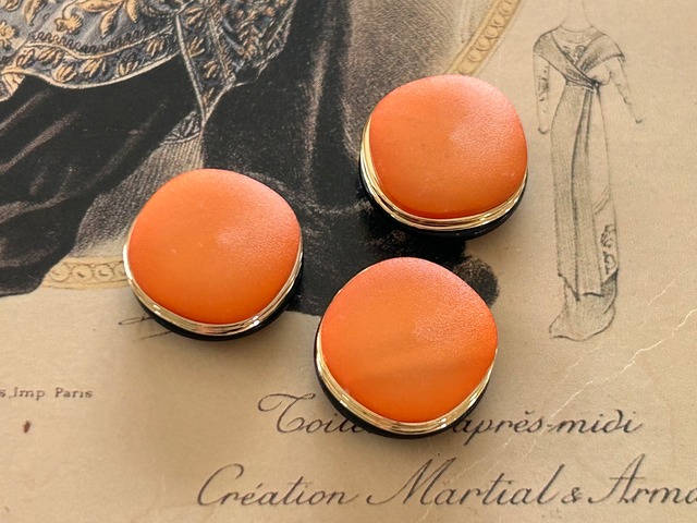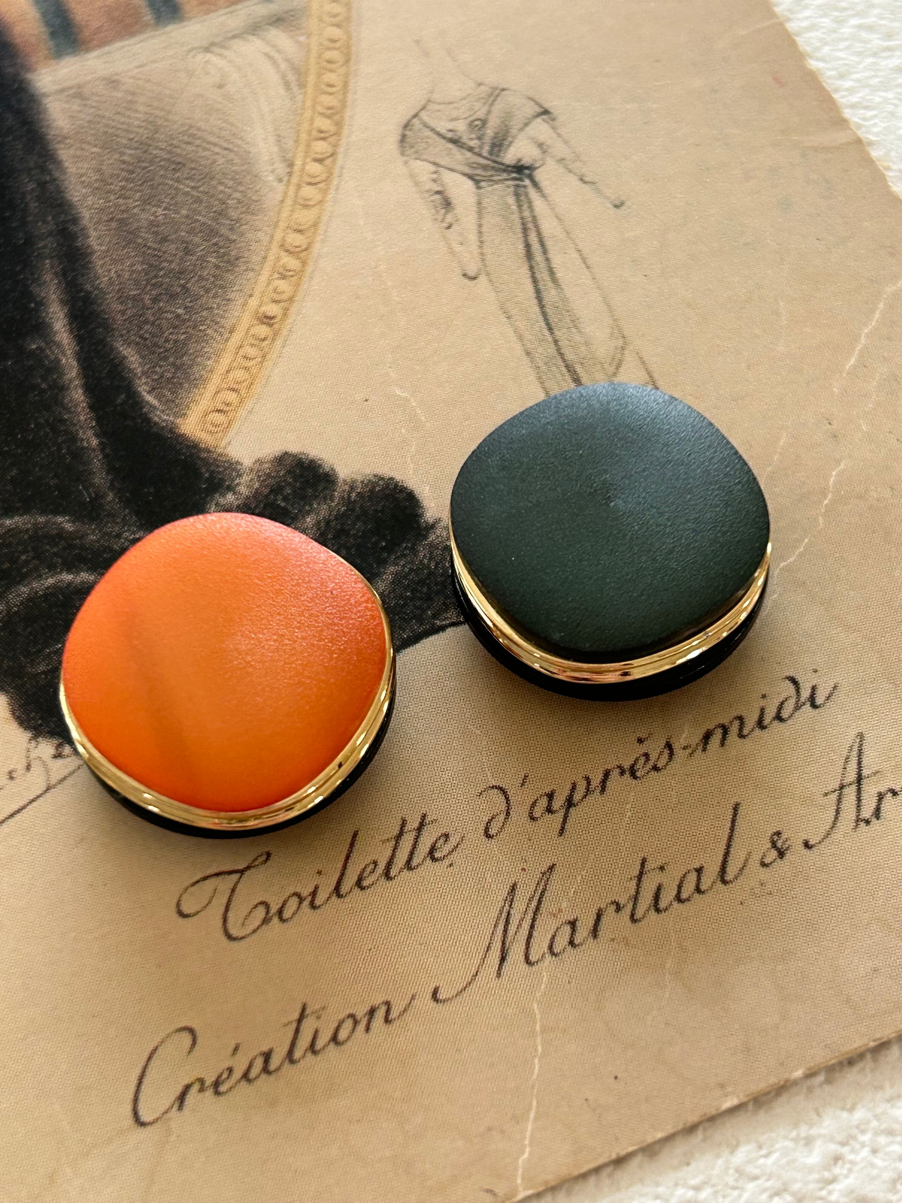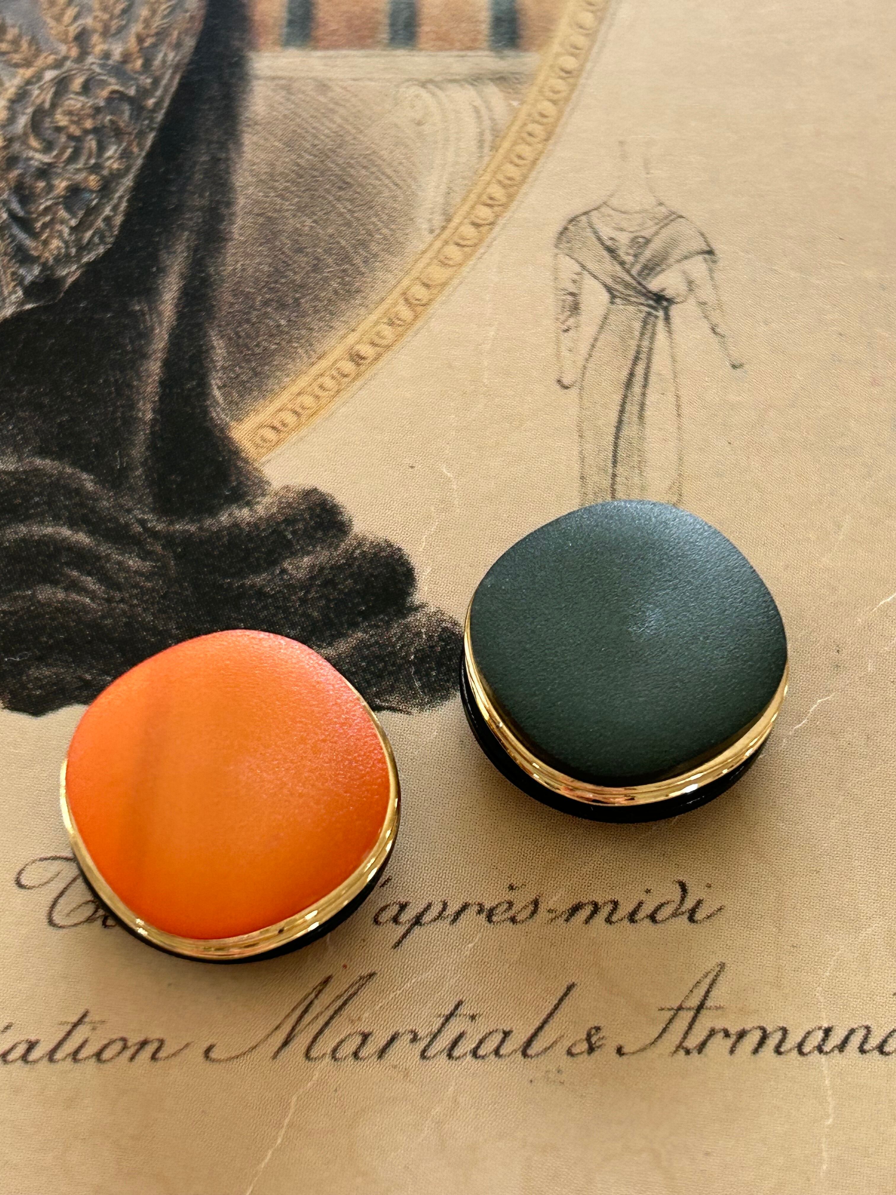 Japanese Vintage ボタン 17mm オレンジ/グリーン マット カボション マーブル調 プラスチック アクセサリーパーツ 装飾材 カルトナージ