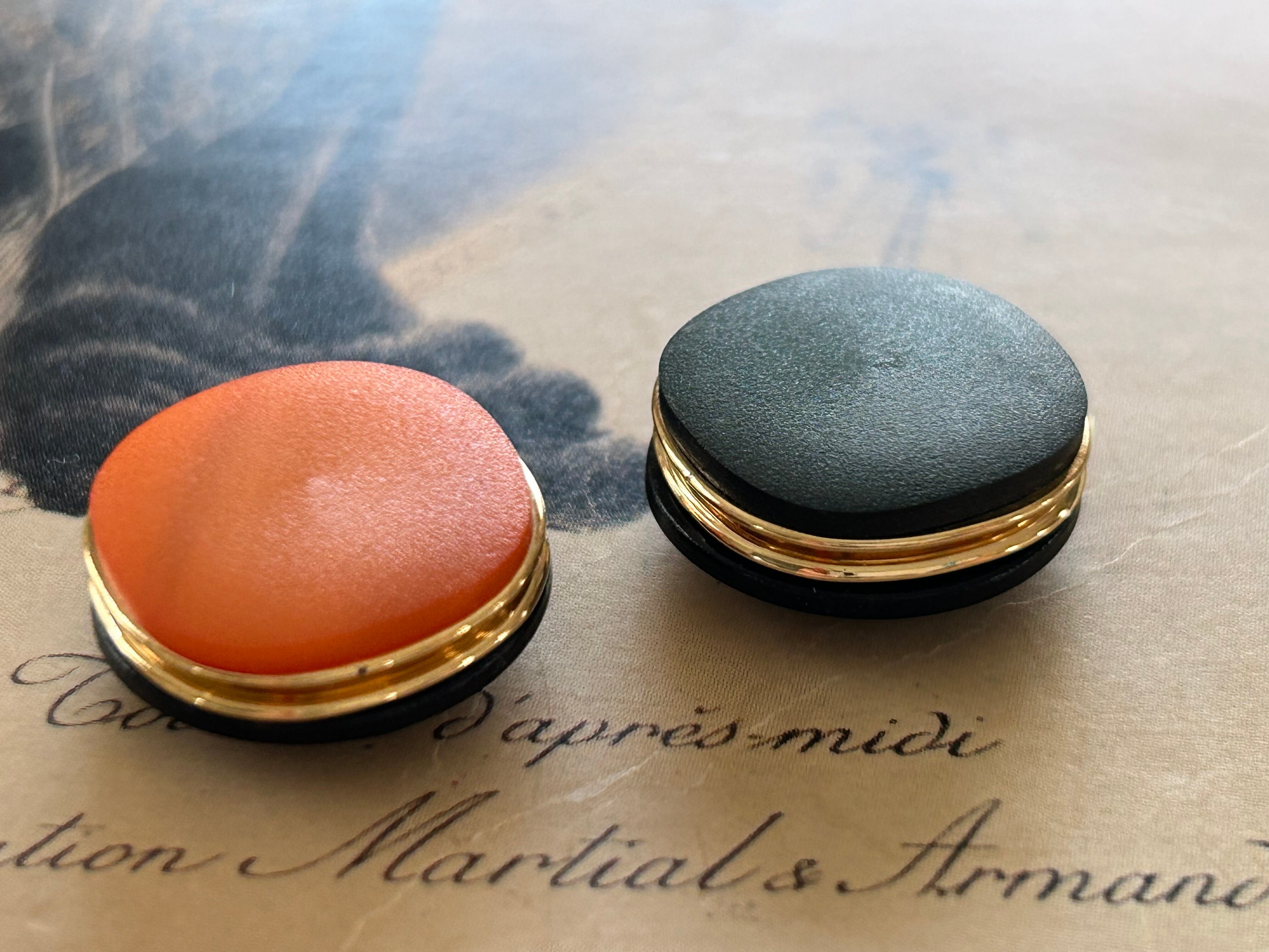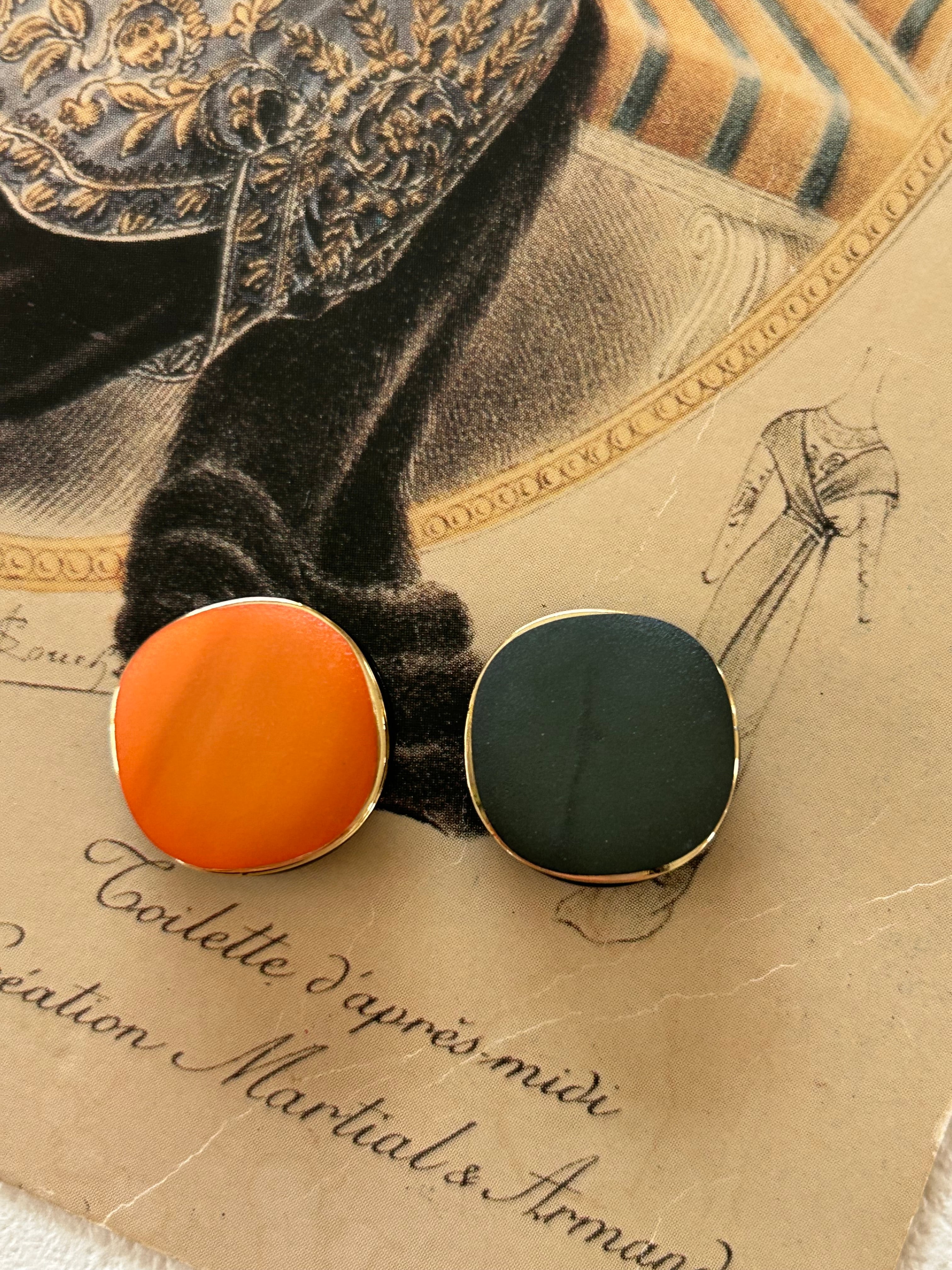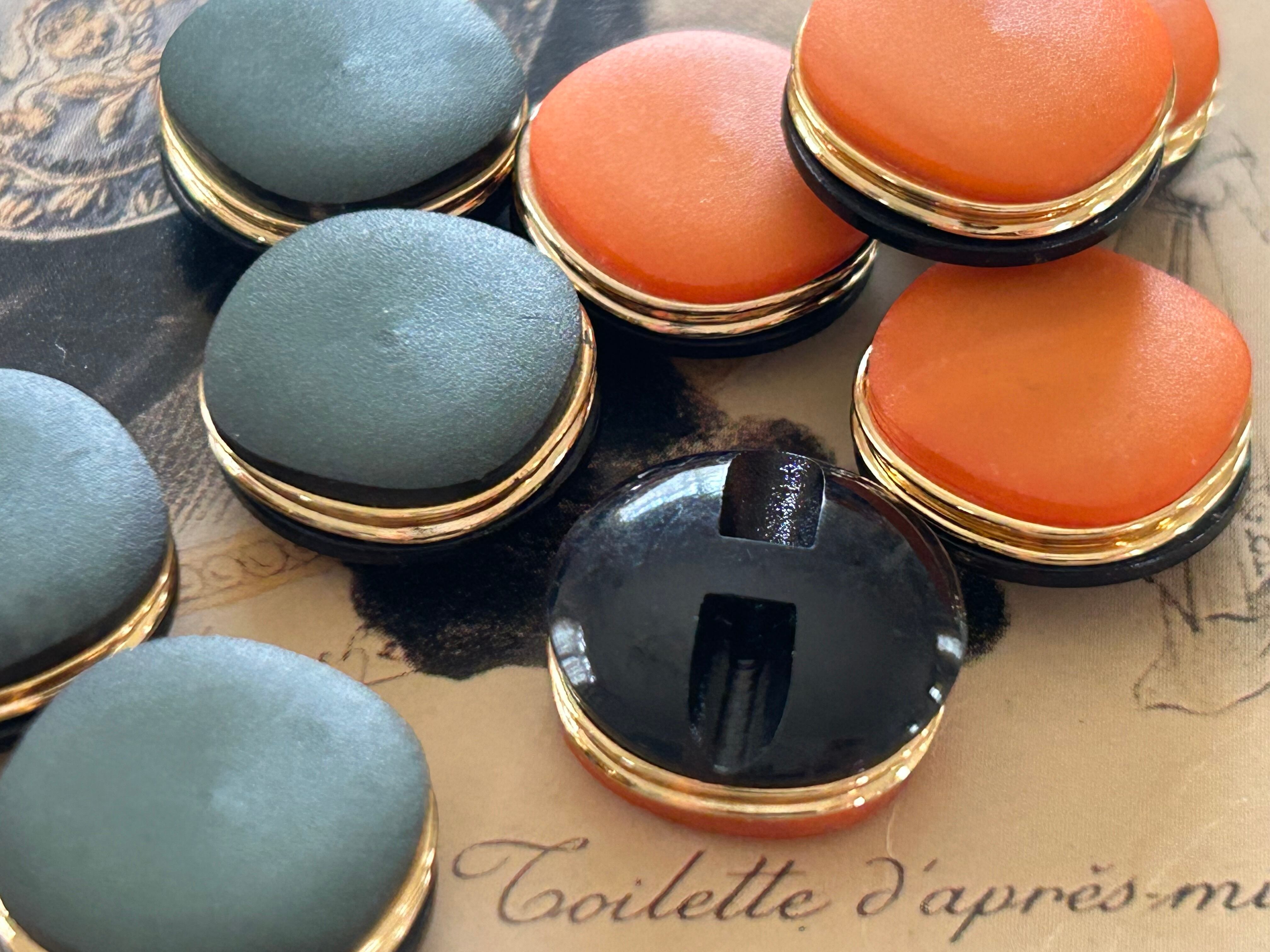 Japanese Vintage ボタン 17mm オレンジ/グリーン マット カボション マーブル調 プラスチック アクセサリーパーツ 装飾材 カルトナージ