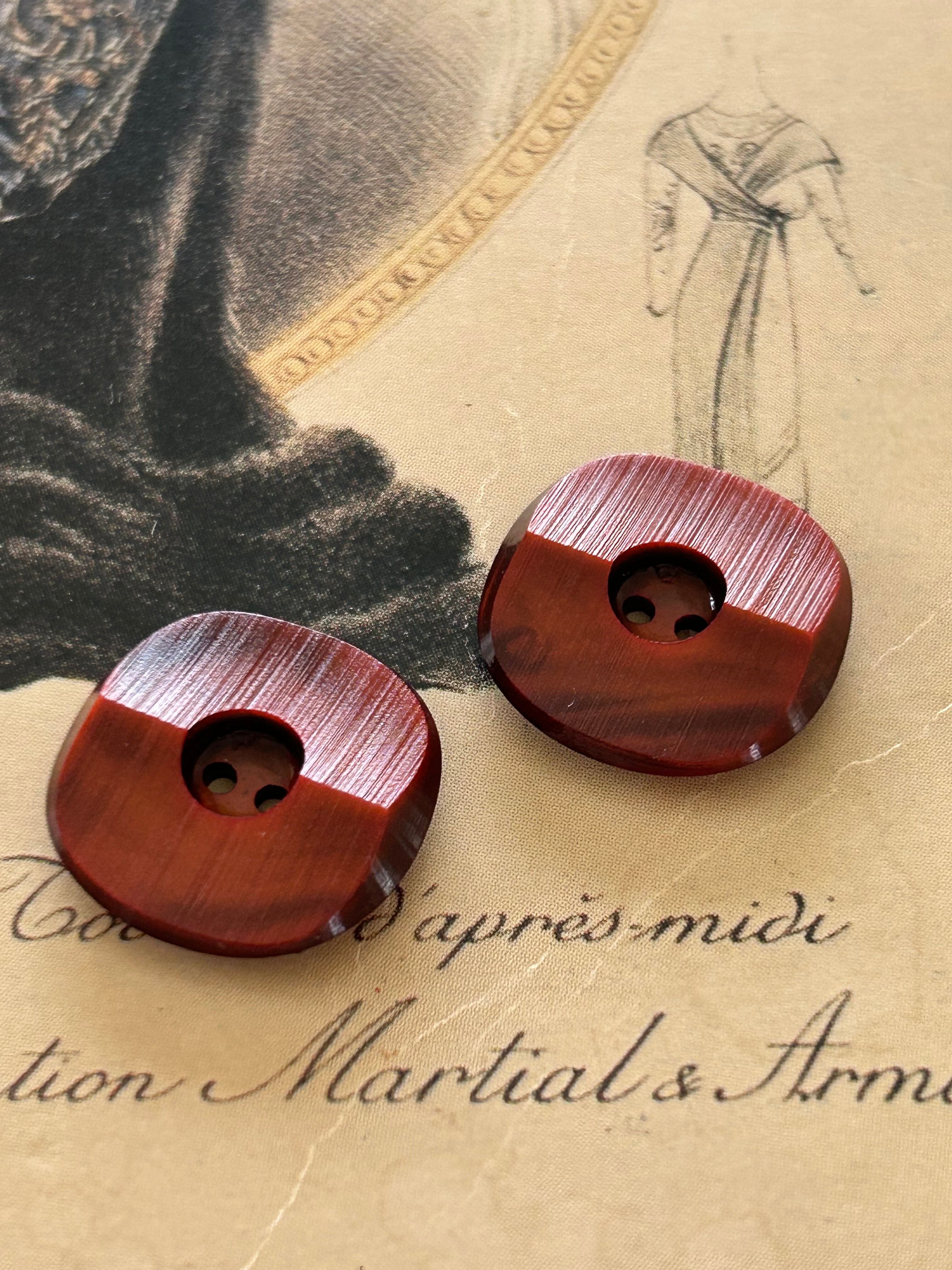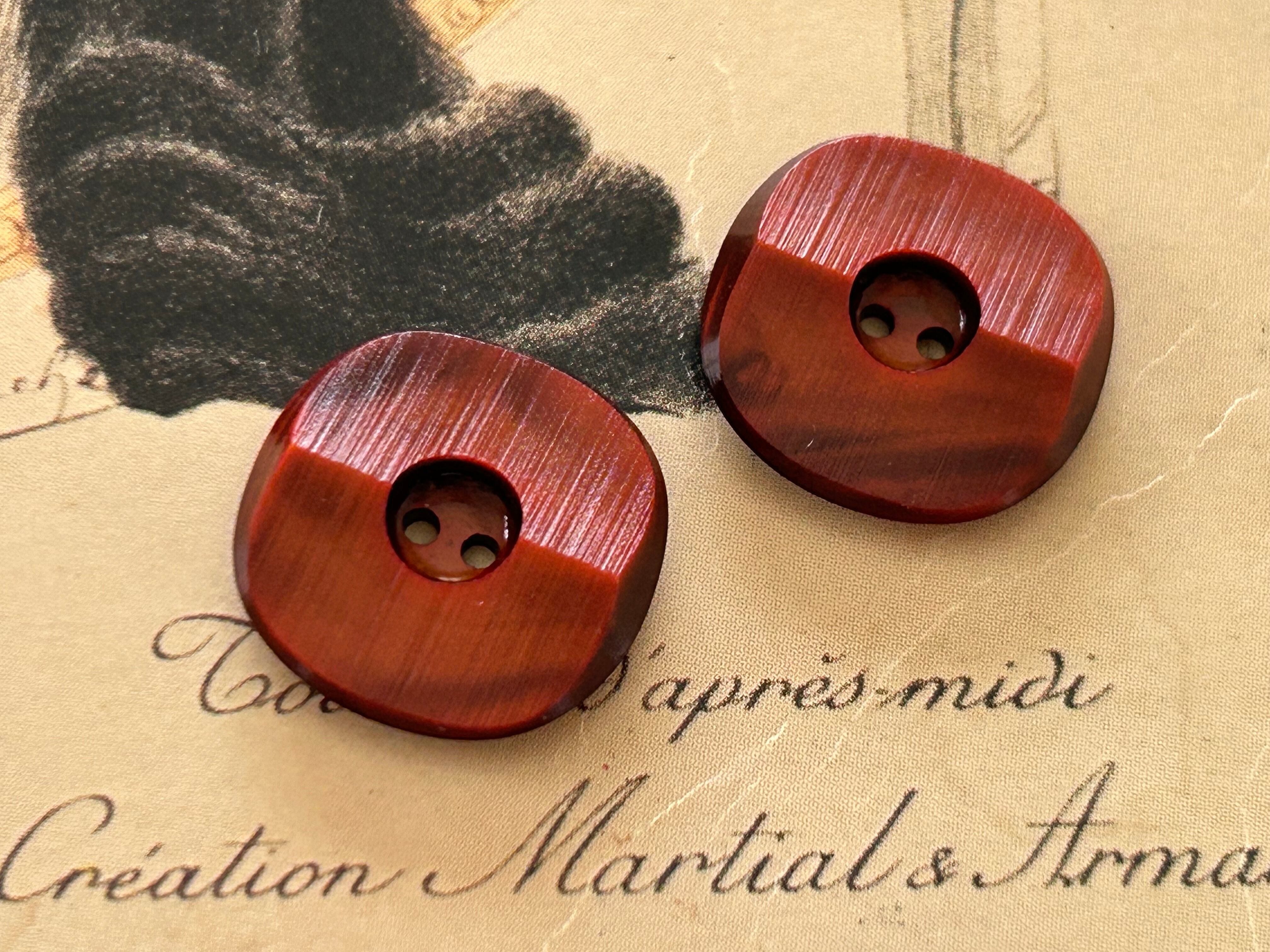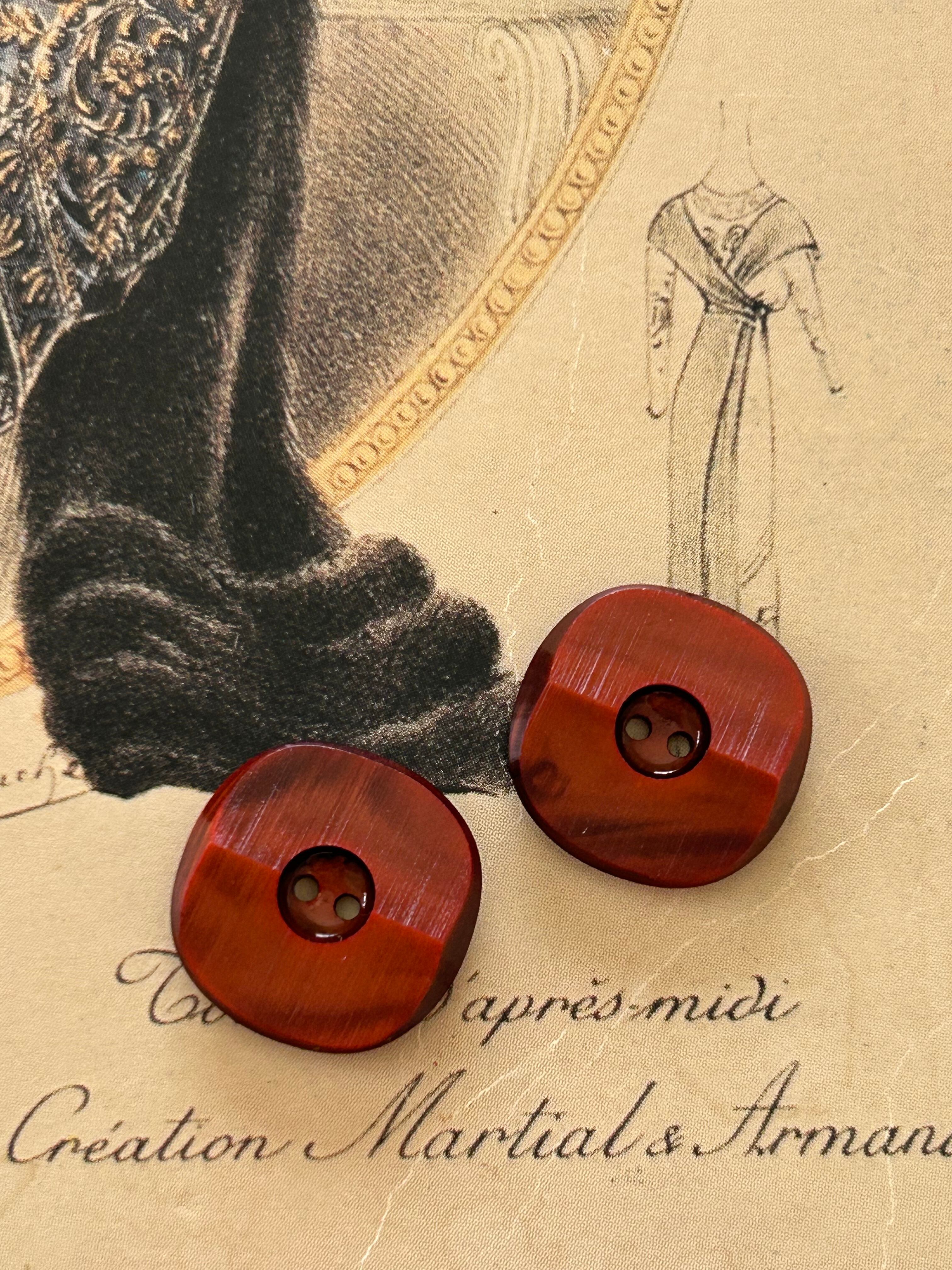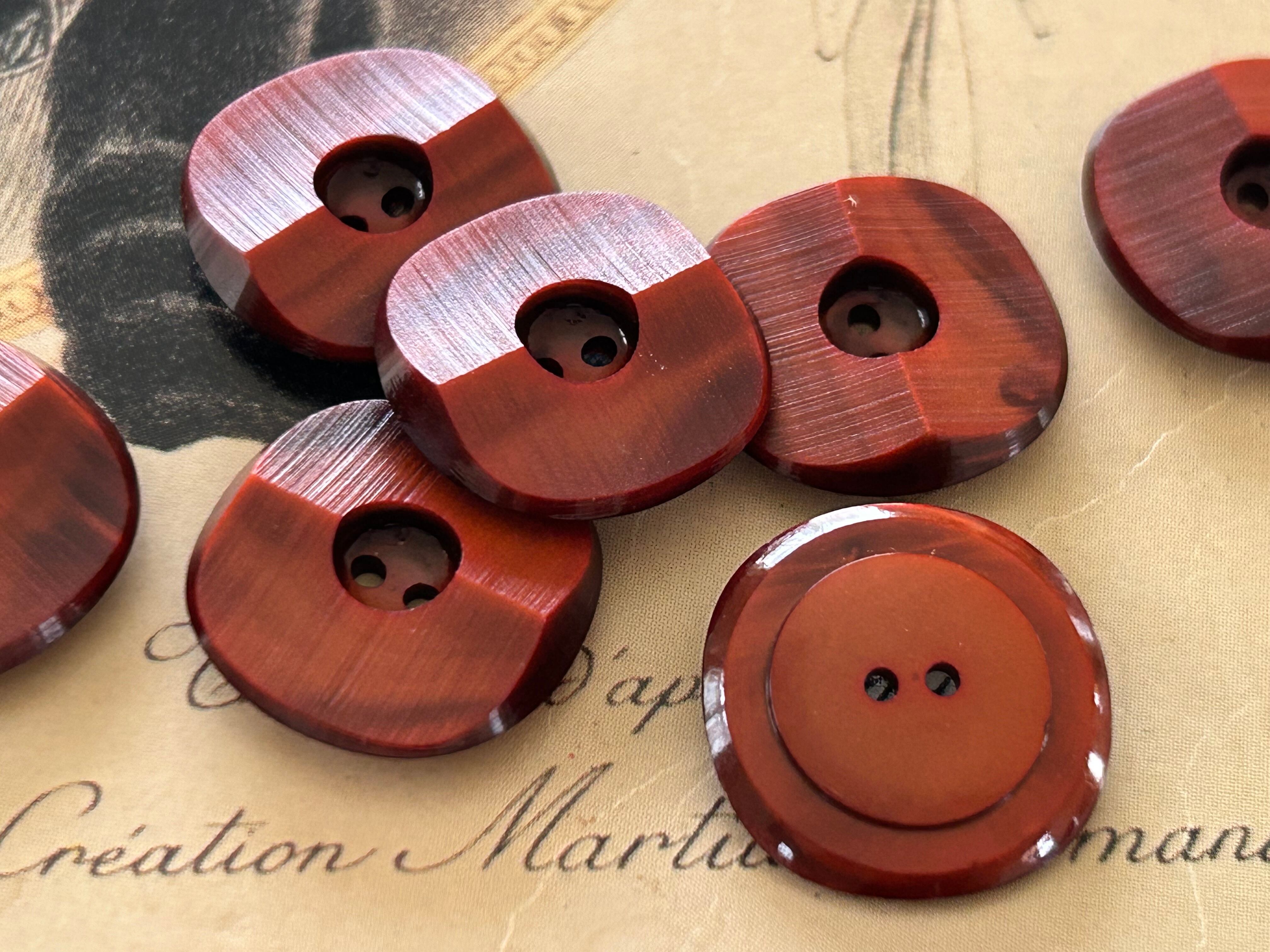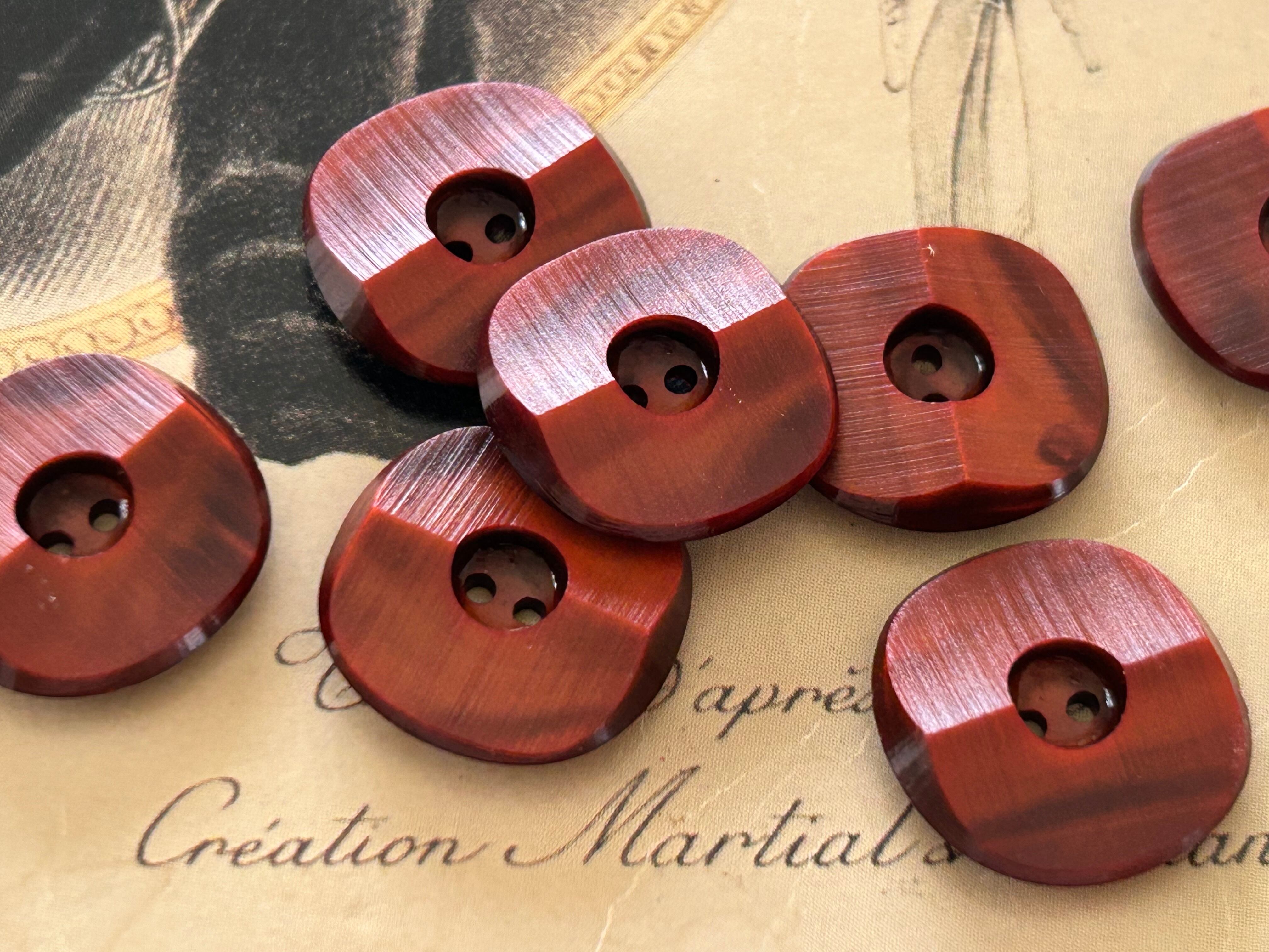 Japanese Vintage ボタン 角なしスクウェア レッド系 赤茶 16mm マーブル 昭和レトロ アクセサリーパーツ 装飾材 カルトナージュ