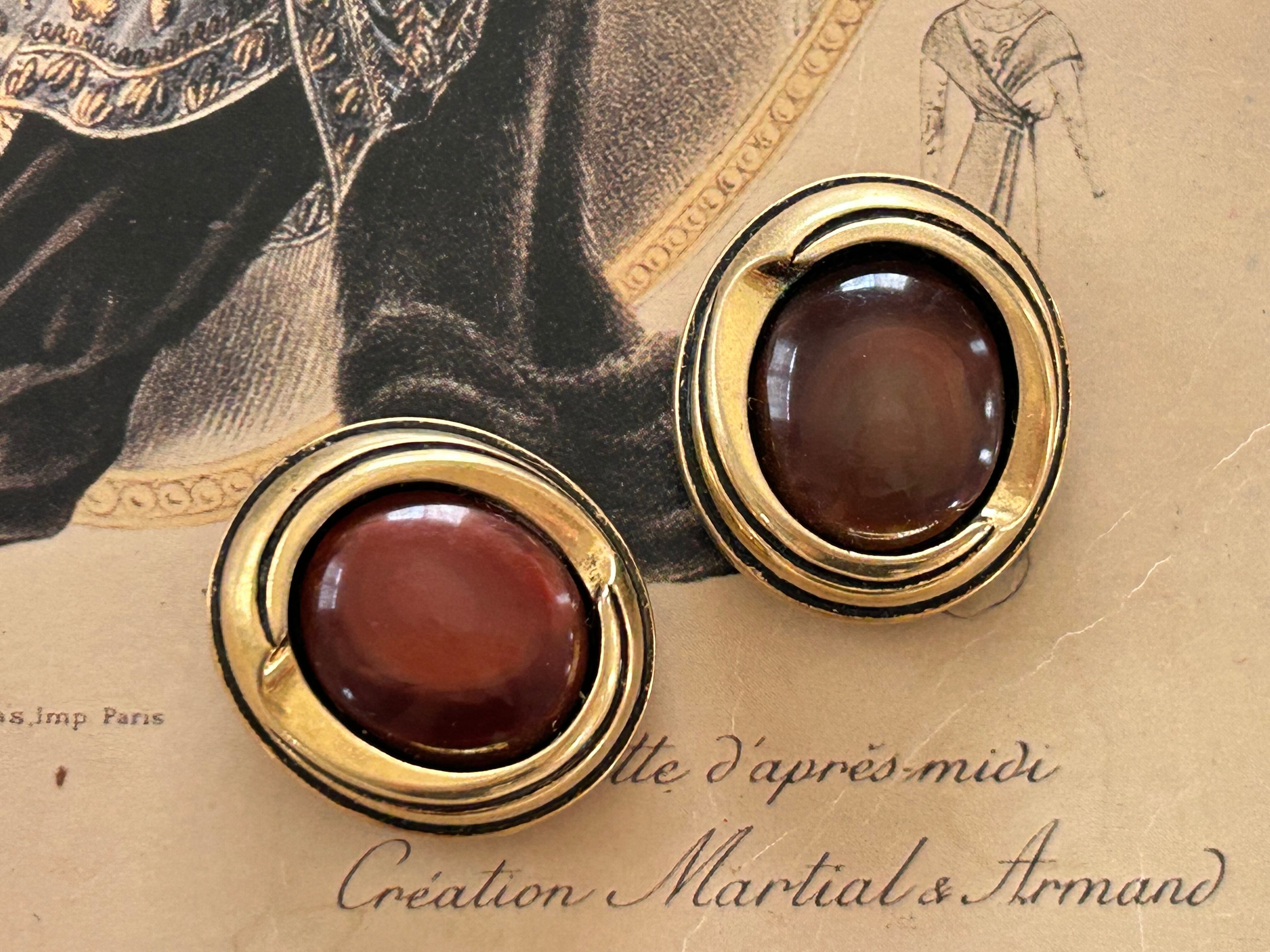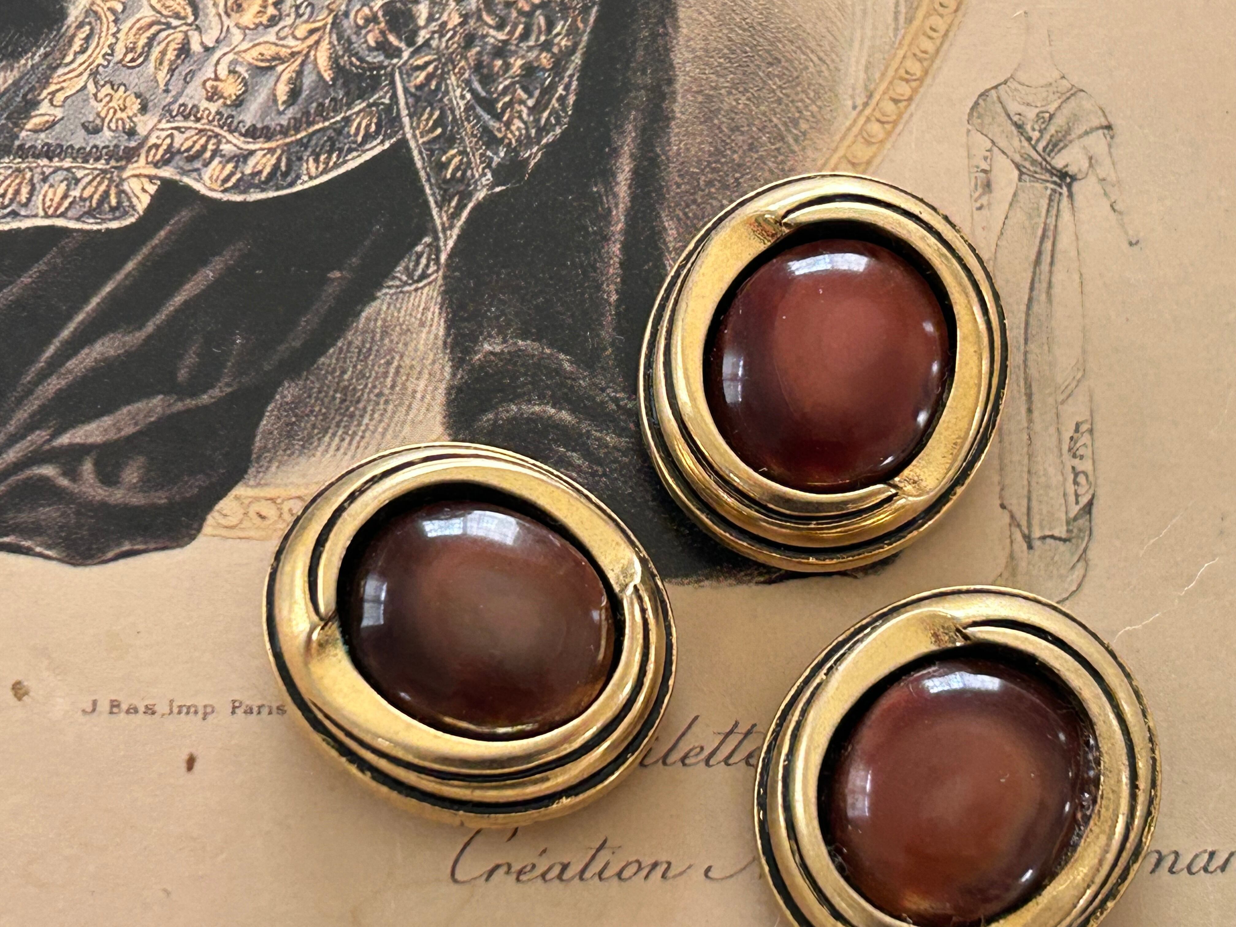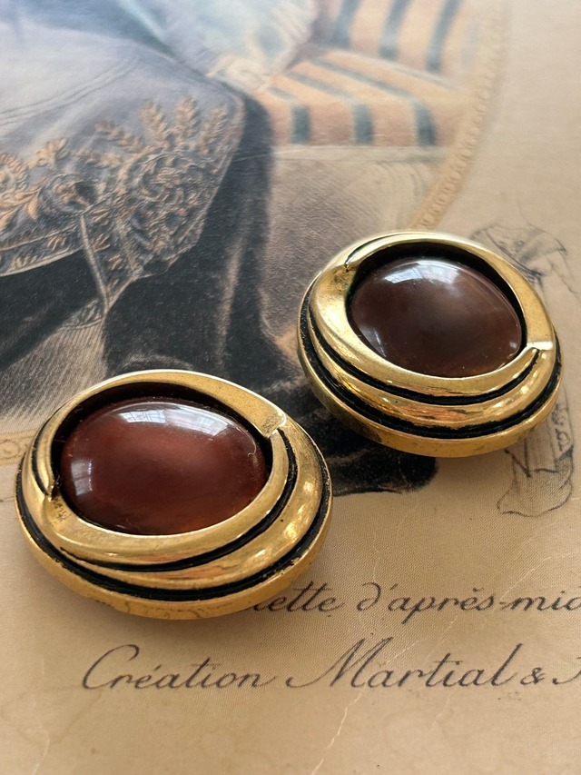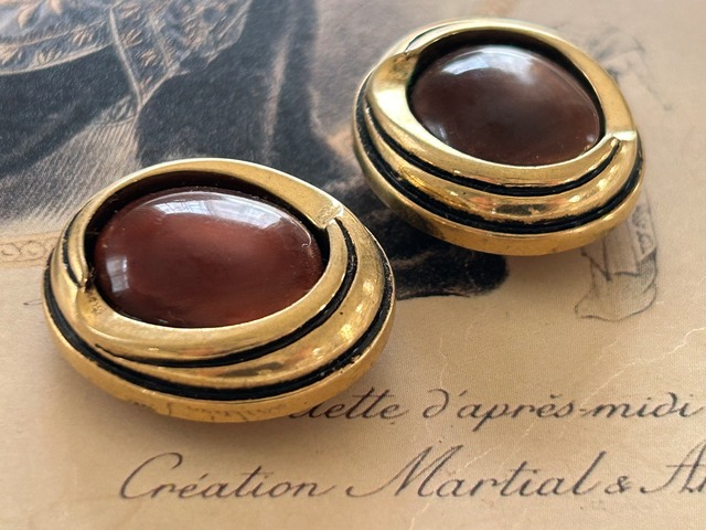 Japanese Vintageボタン ブラウン×ゴールド オーバル型 カボション 27mm アクセサリーパーツ デコレーション材