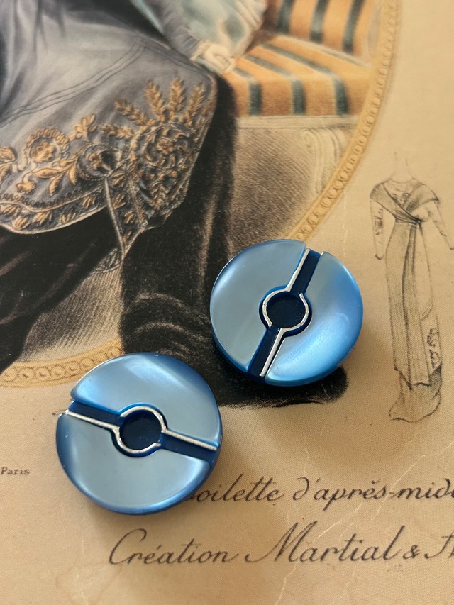 Japanese Vintage ボタン ライトブルー 20mm ストン プラスチックボタン 昭和レトロ アクセサリーパーツ 装飾材 カルトナージュ