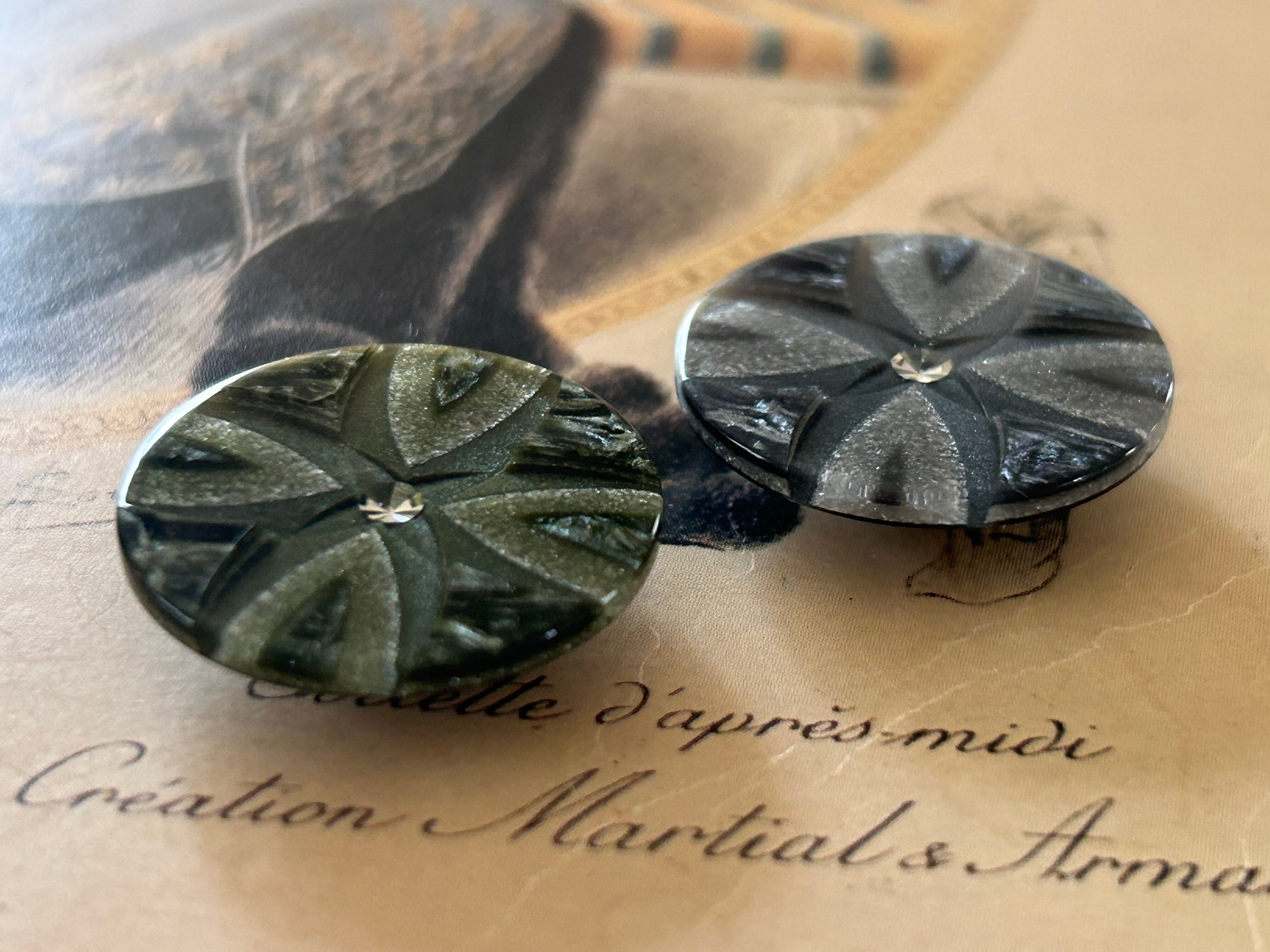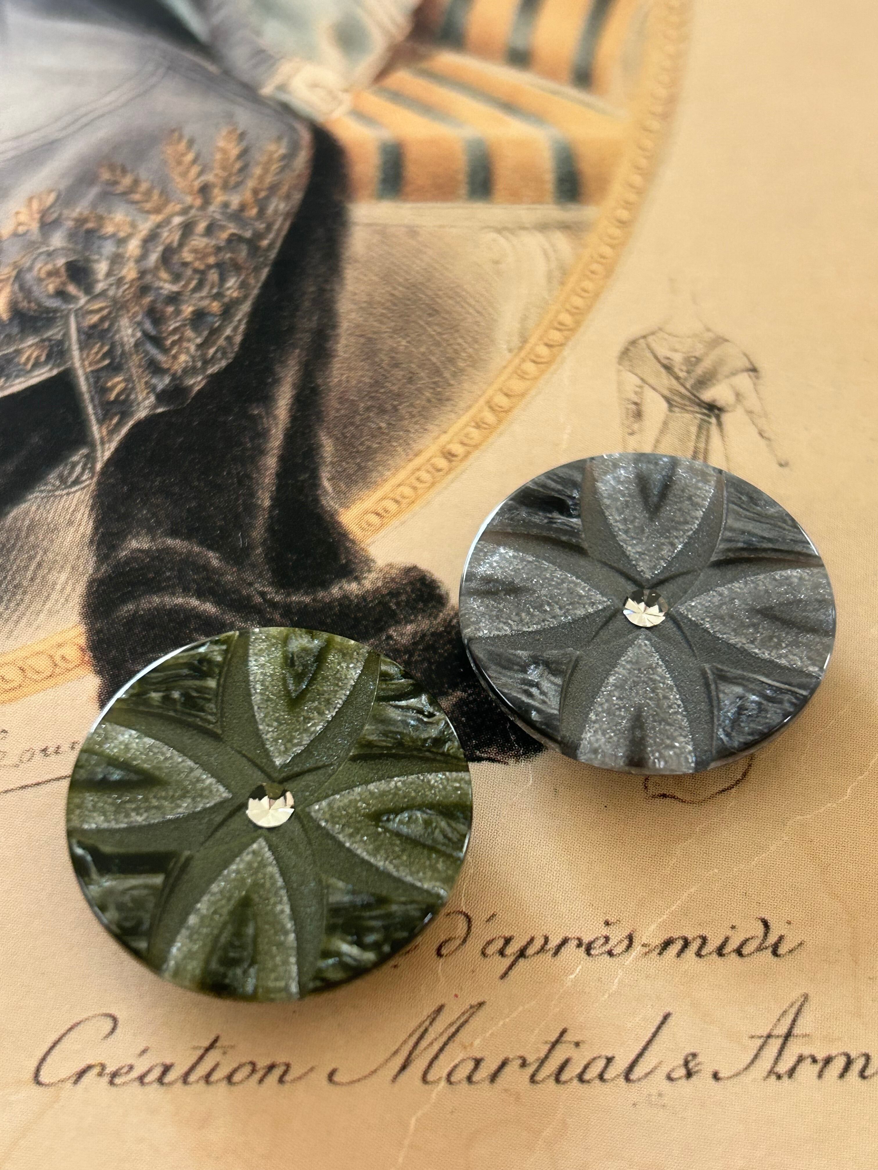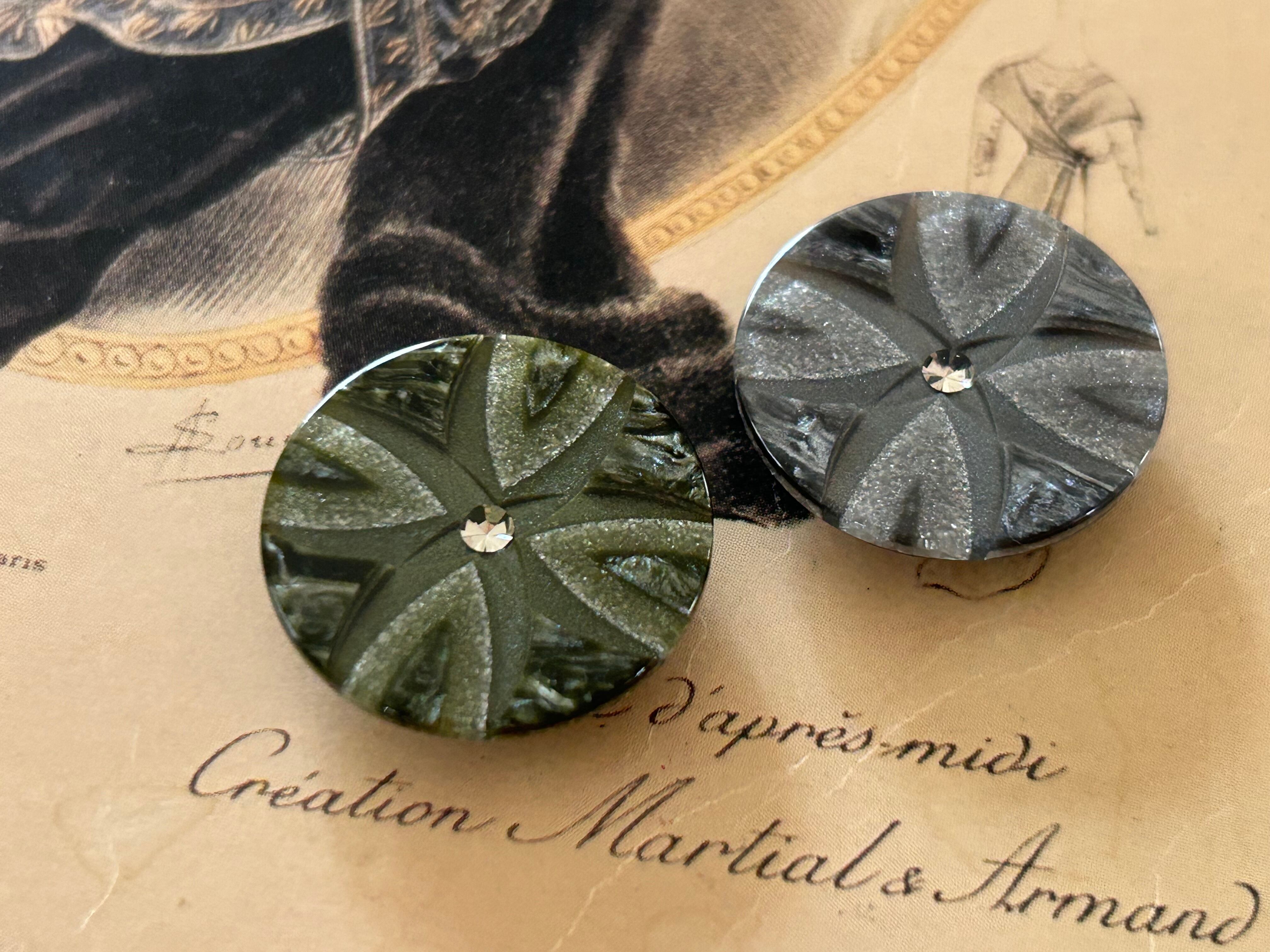 Japanese Vintage ボタン カーキ/グレー 23mm ストーン 昭和レトロ アクセサリーパーツ 装飾材 カルトナージュ