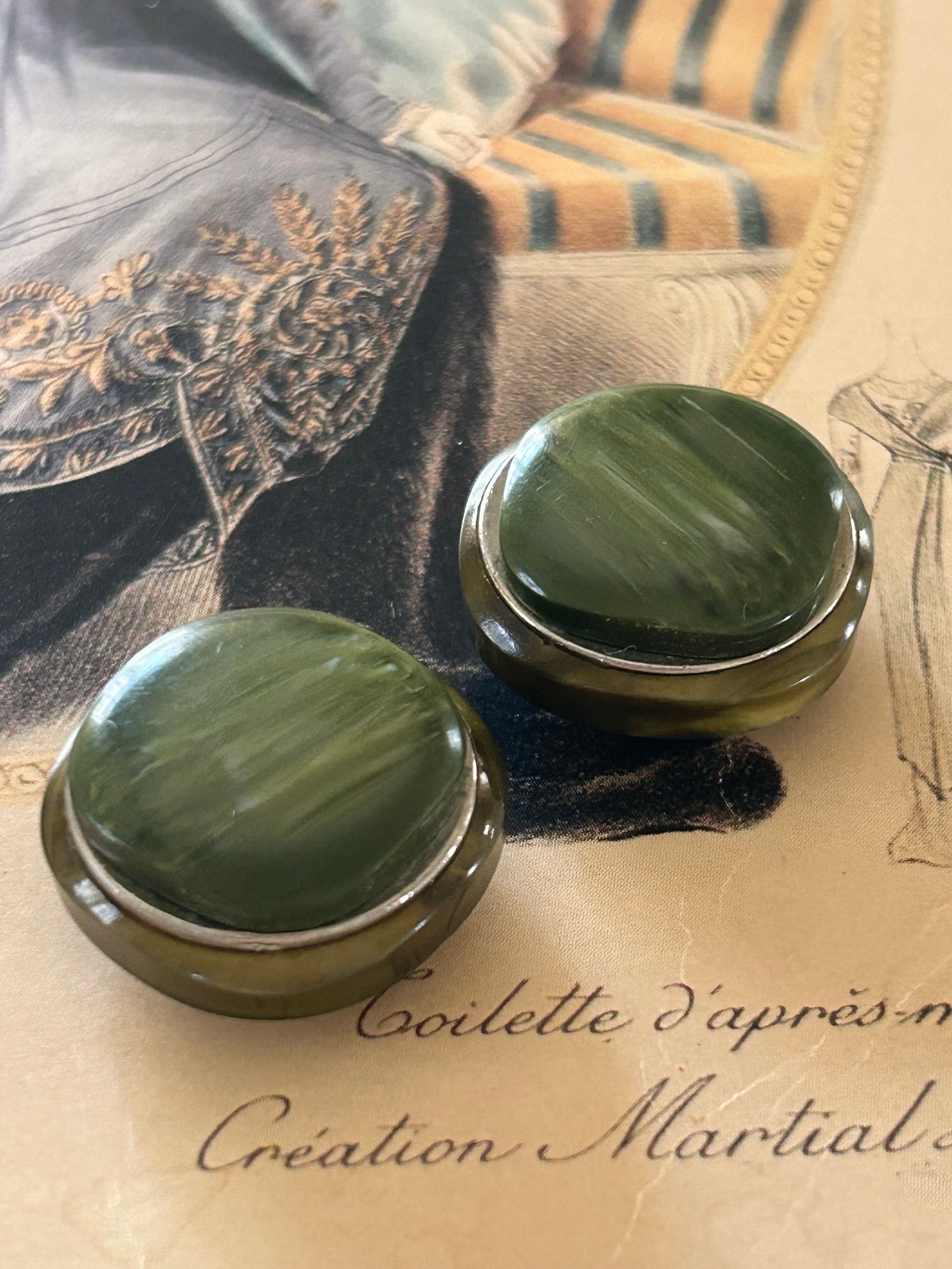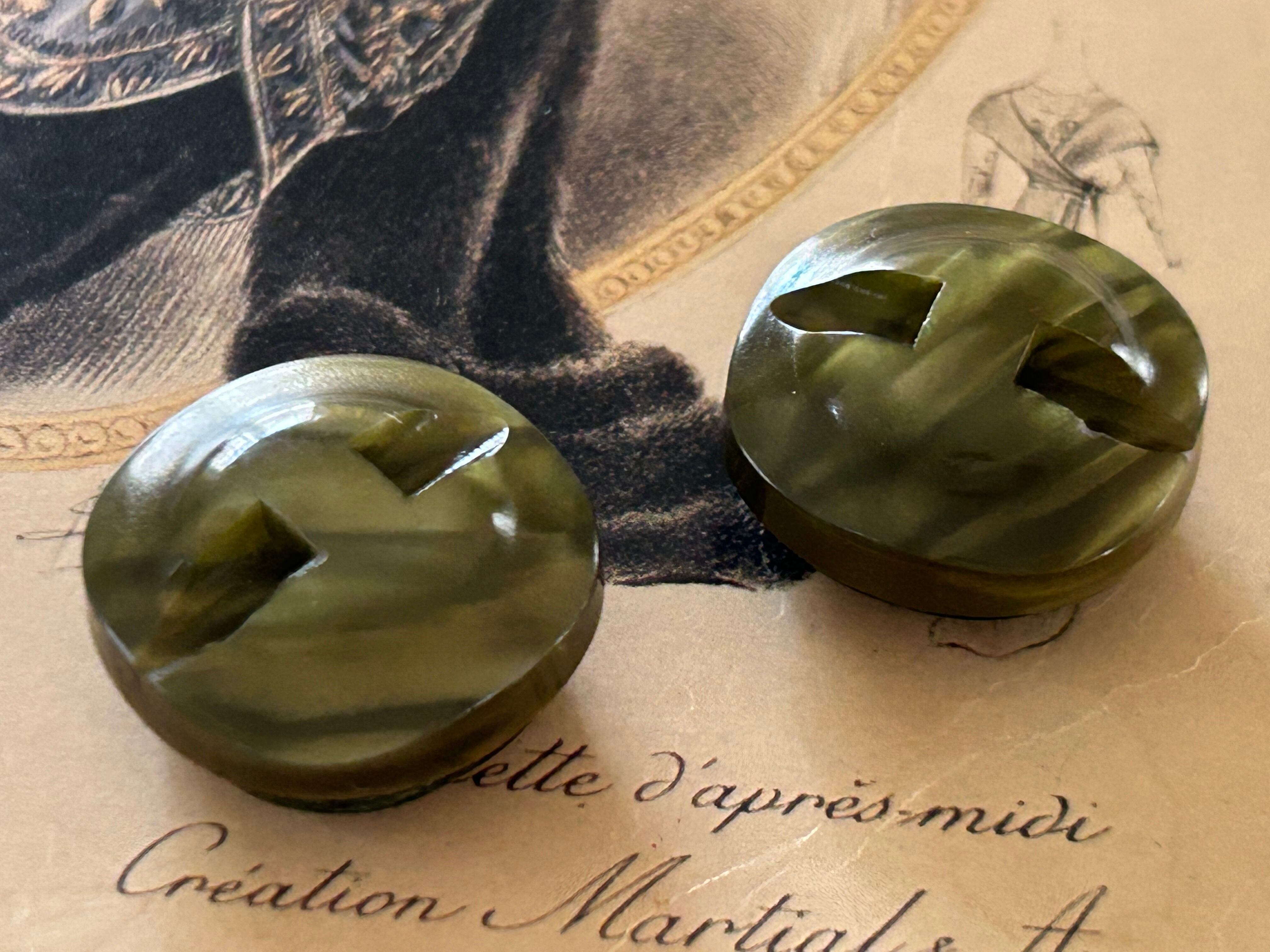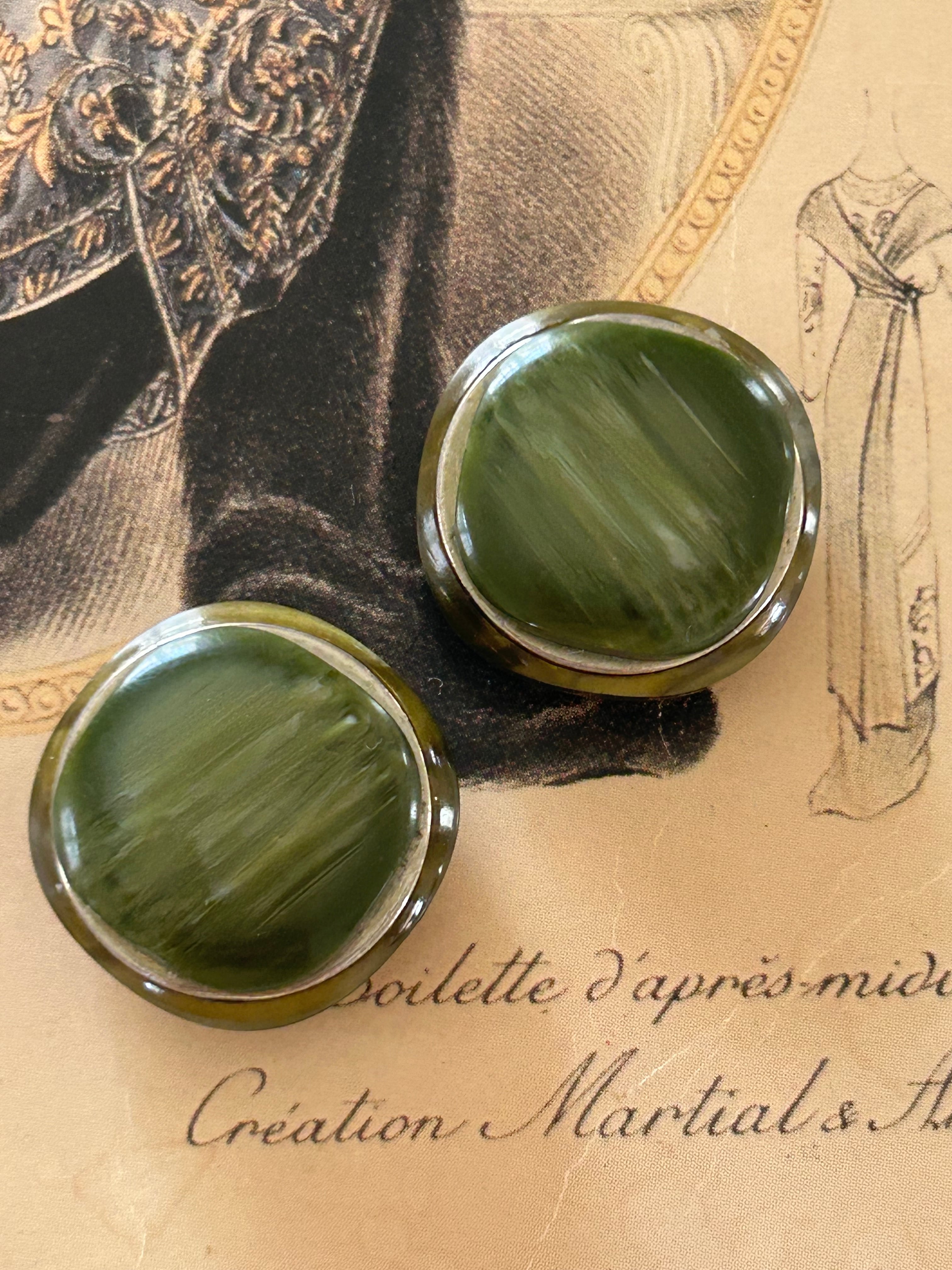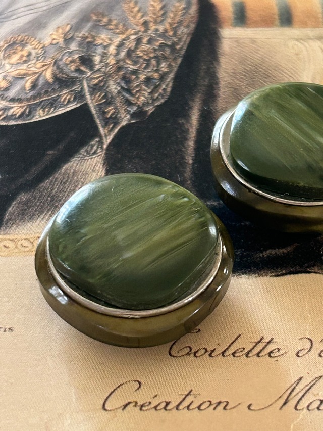 Japanese Vintage ボタン 21mm カーキ カボション マーブル調 プラスチック アクセサリーパーツ 装飾材 カルトナージ