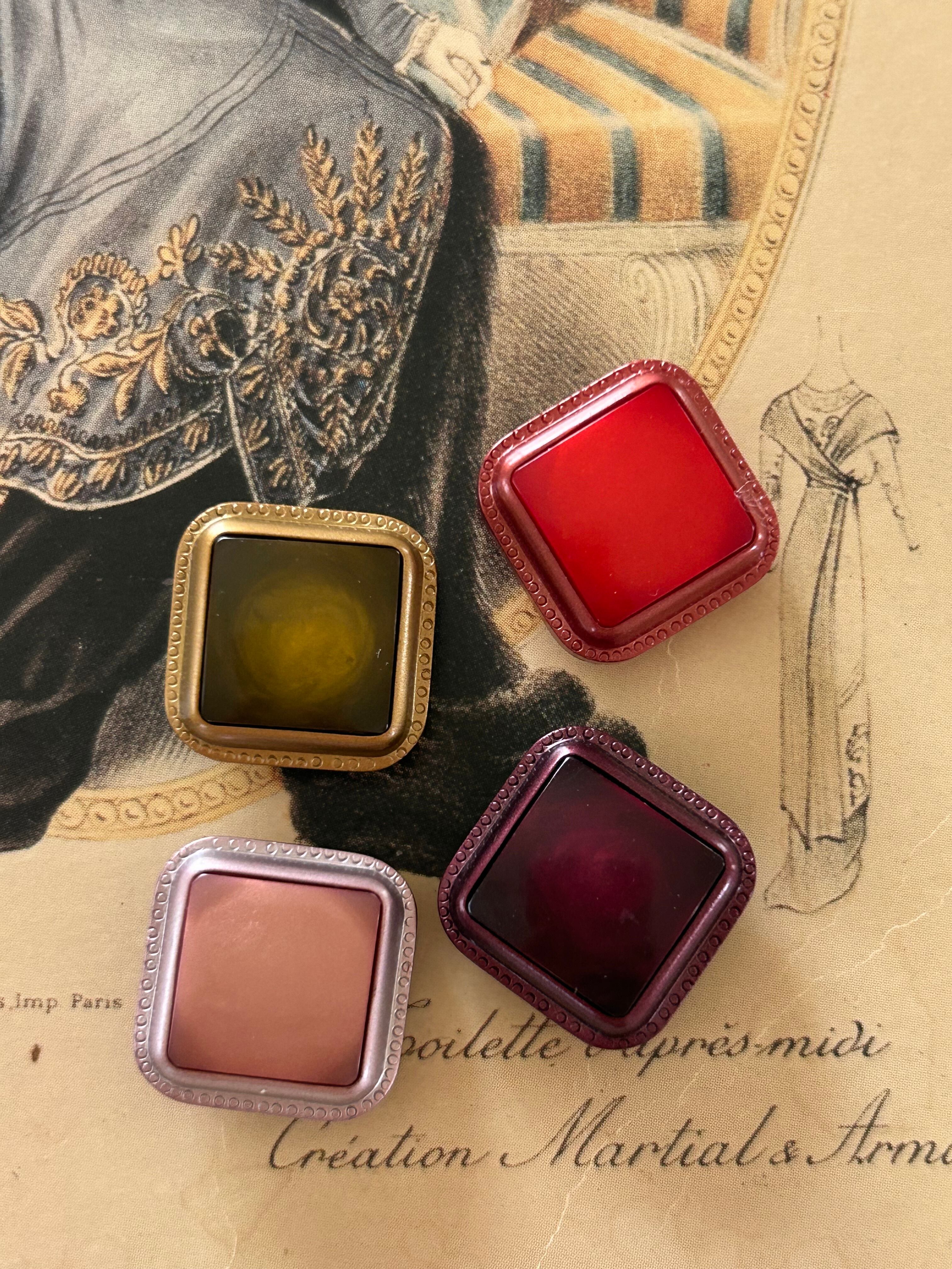 お洋服のボタンの付け替えには勿論のことアクセサリーパーツとして、カルトナージュのデコレーション材になど様々な用途でお役立て下さいませ。