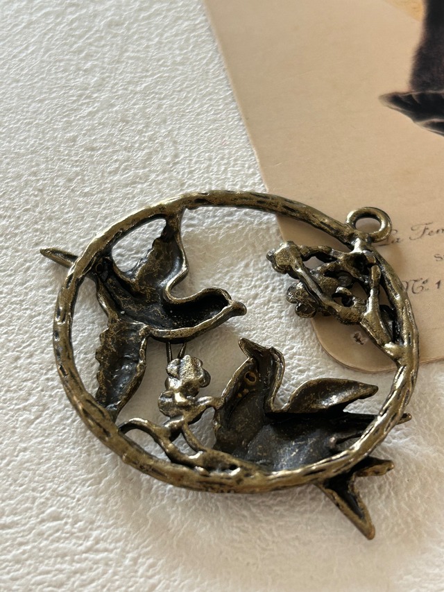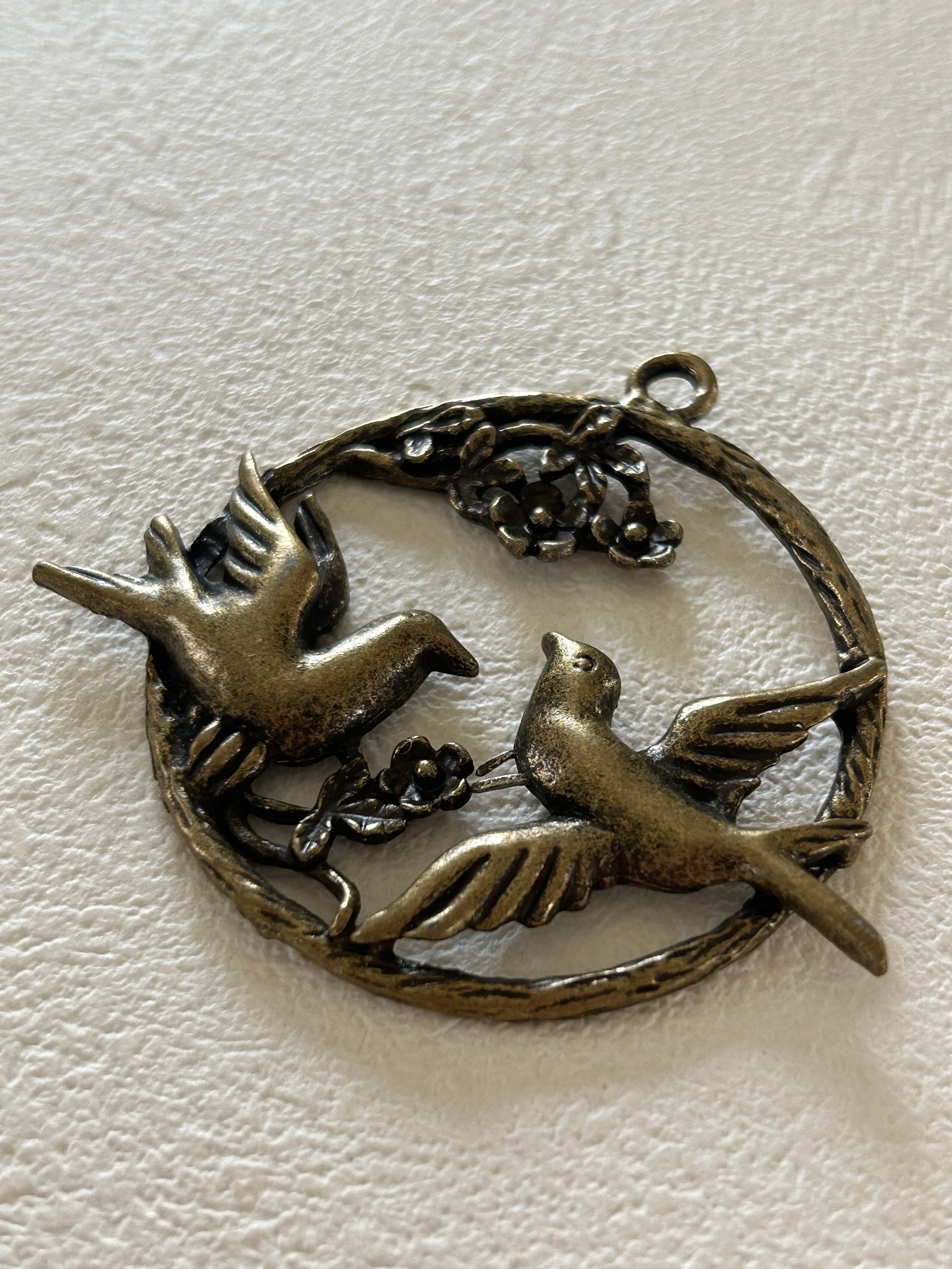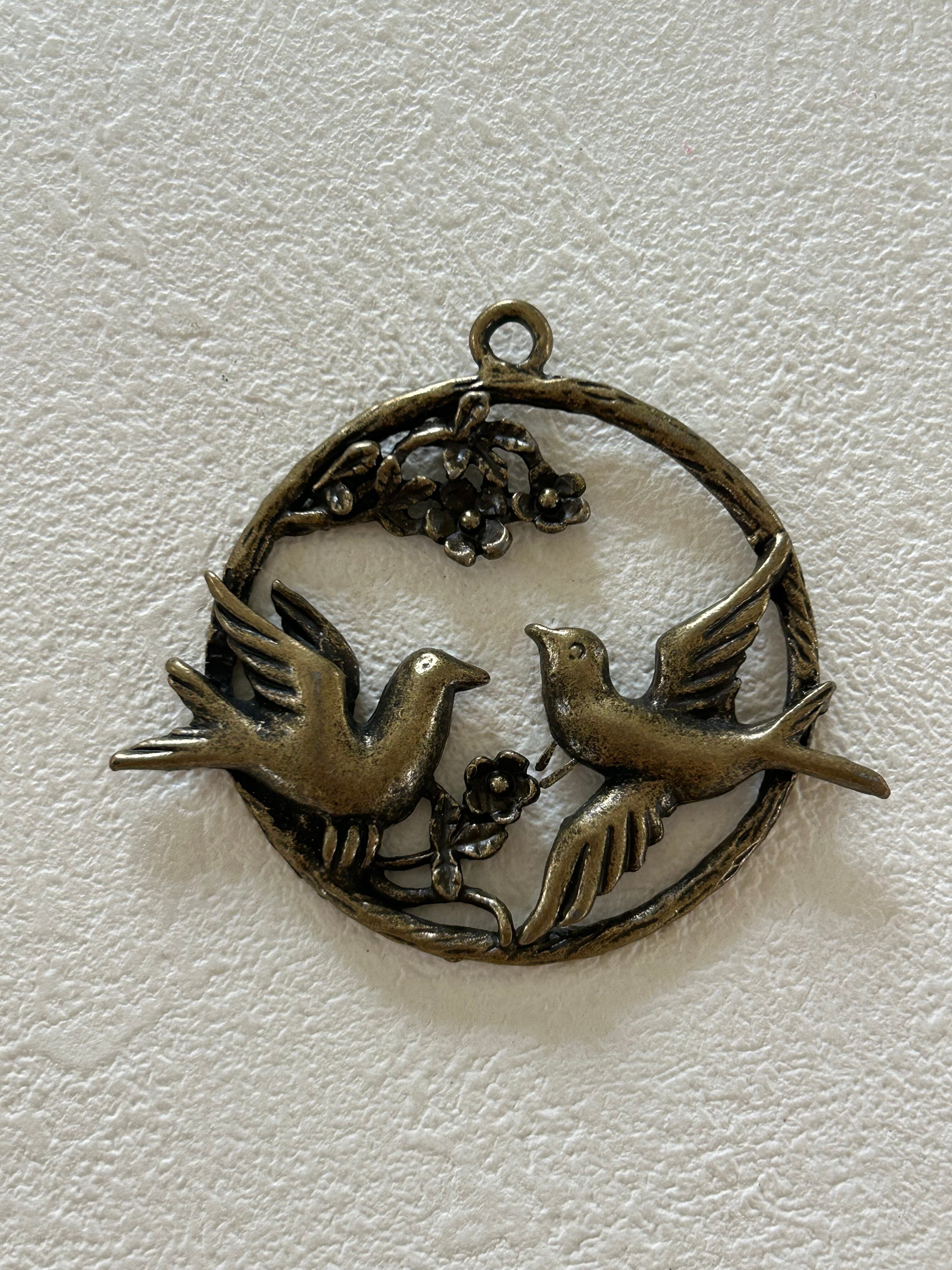 輸入デザインパーツ 2匹の鳩のリース型パーツ 鳩 とり フラワー チャーム 金古美 6cm アクセサリーパーツ デコレーション材