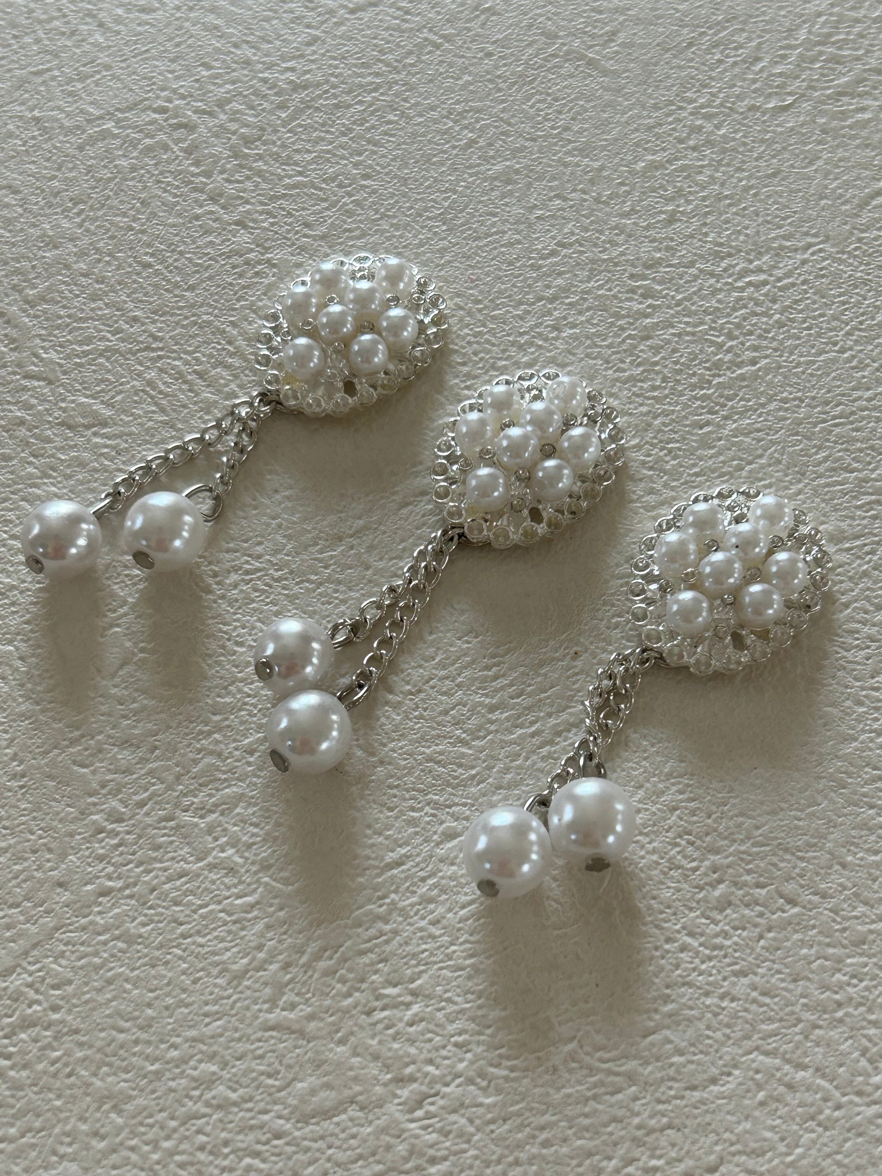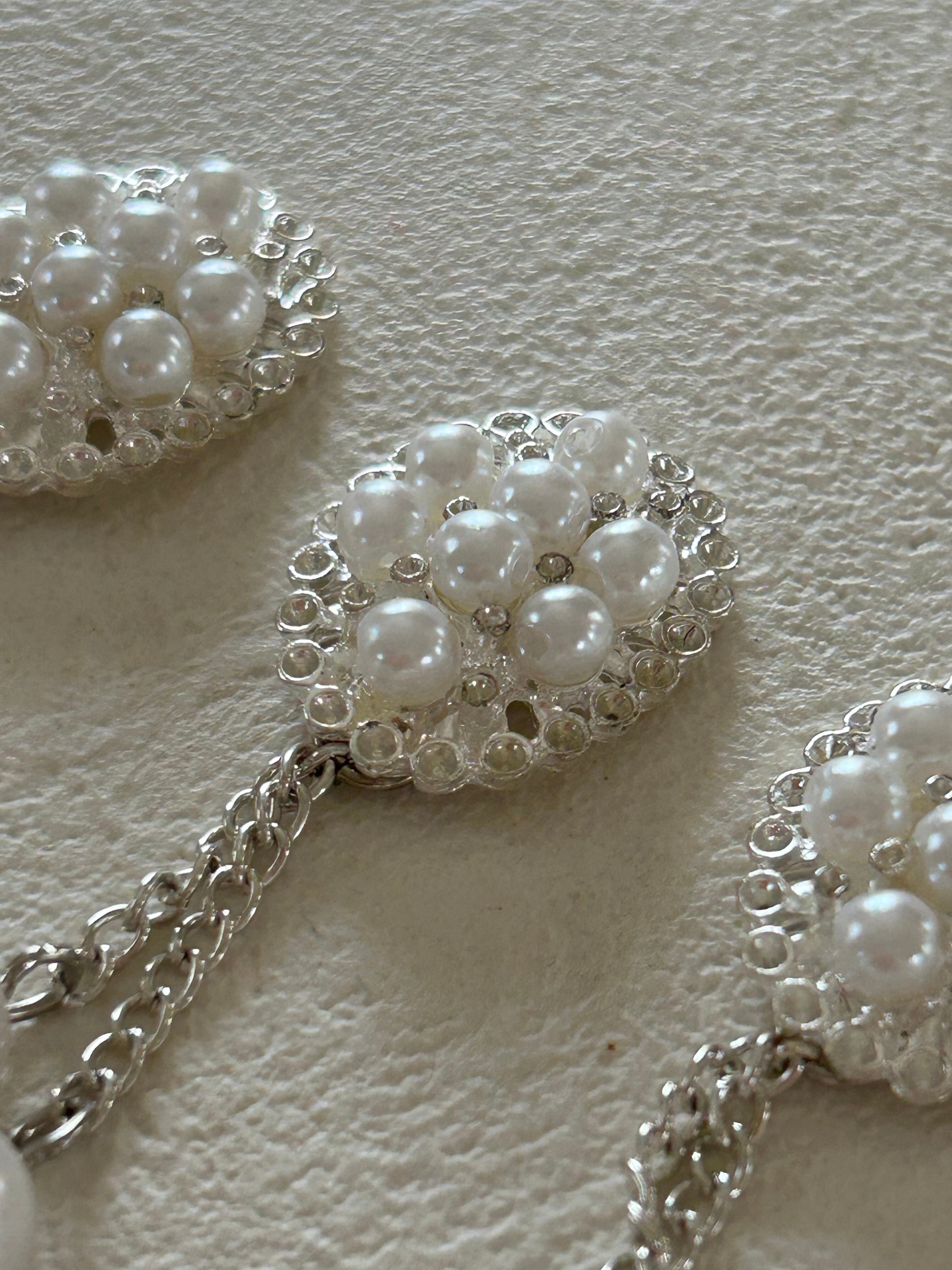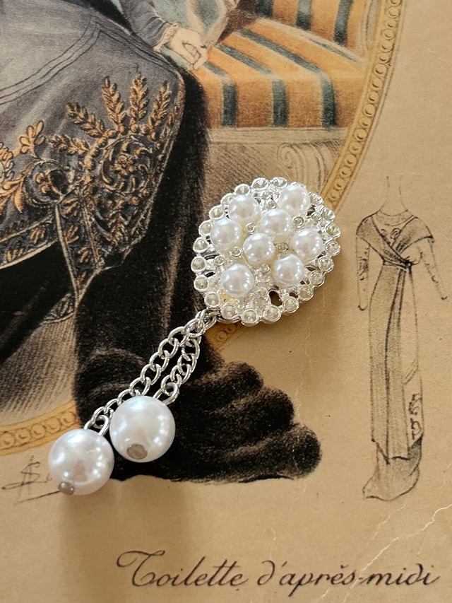 エレガントなシルバーのフレームにパール調ビーズがしきつめられています。