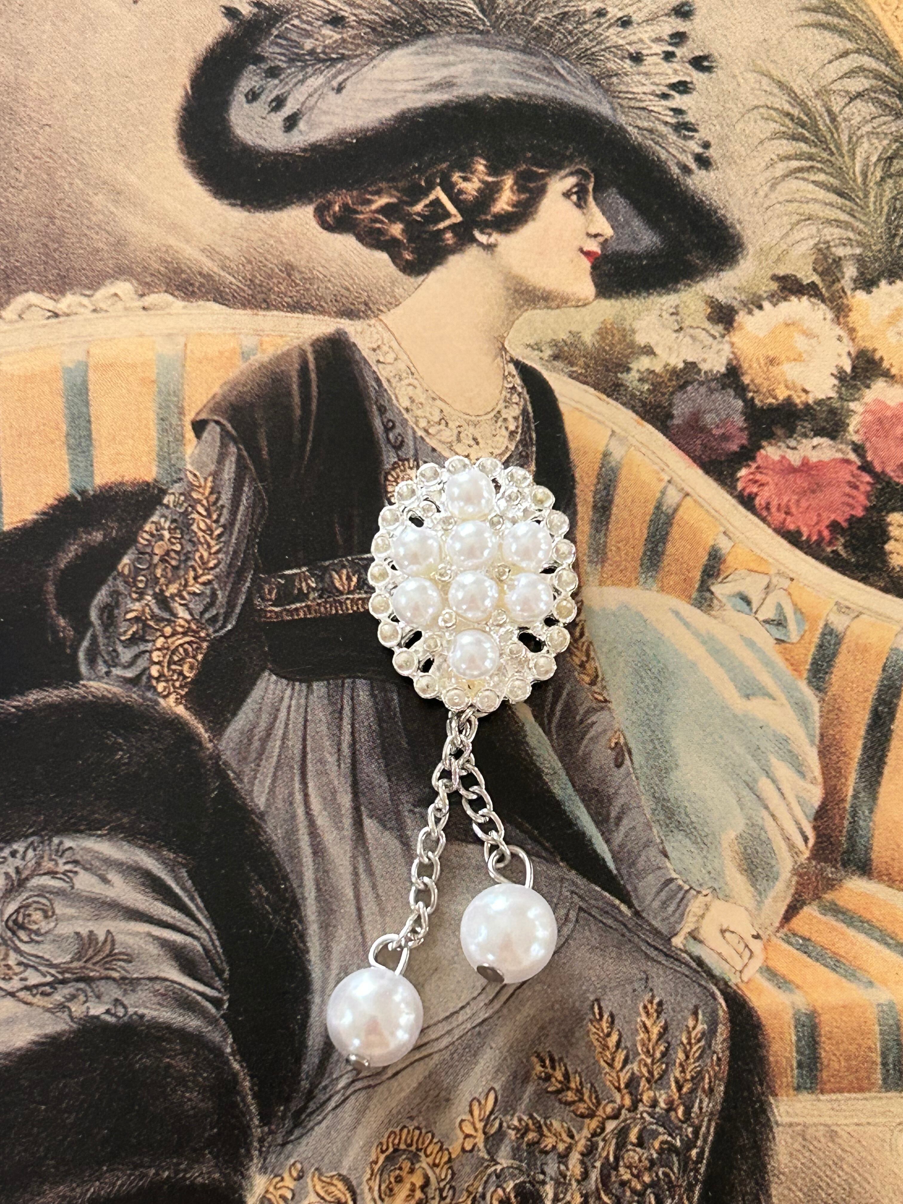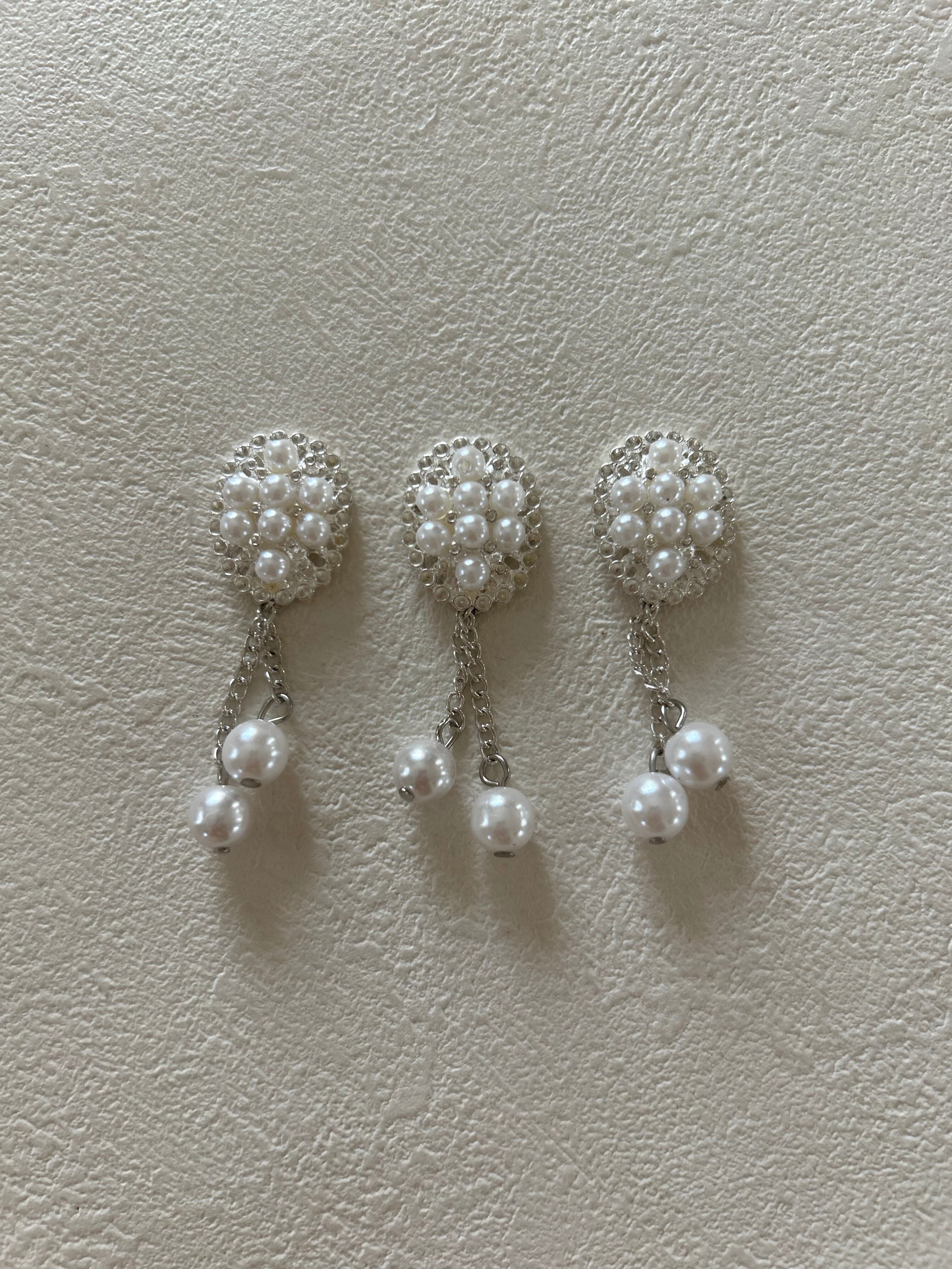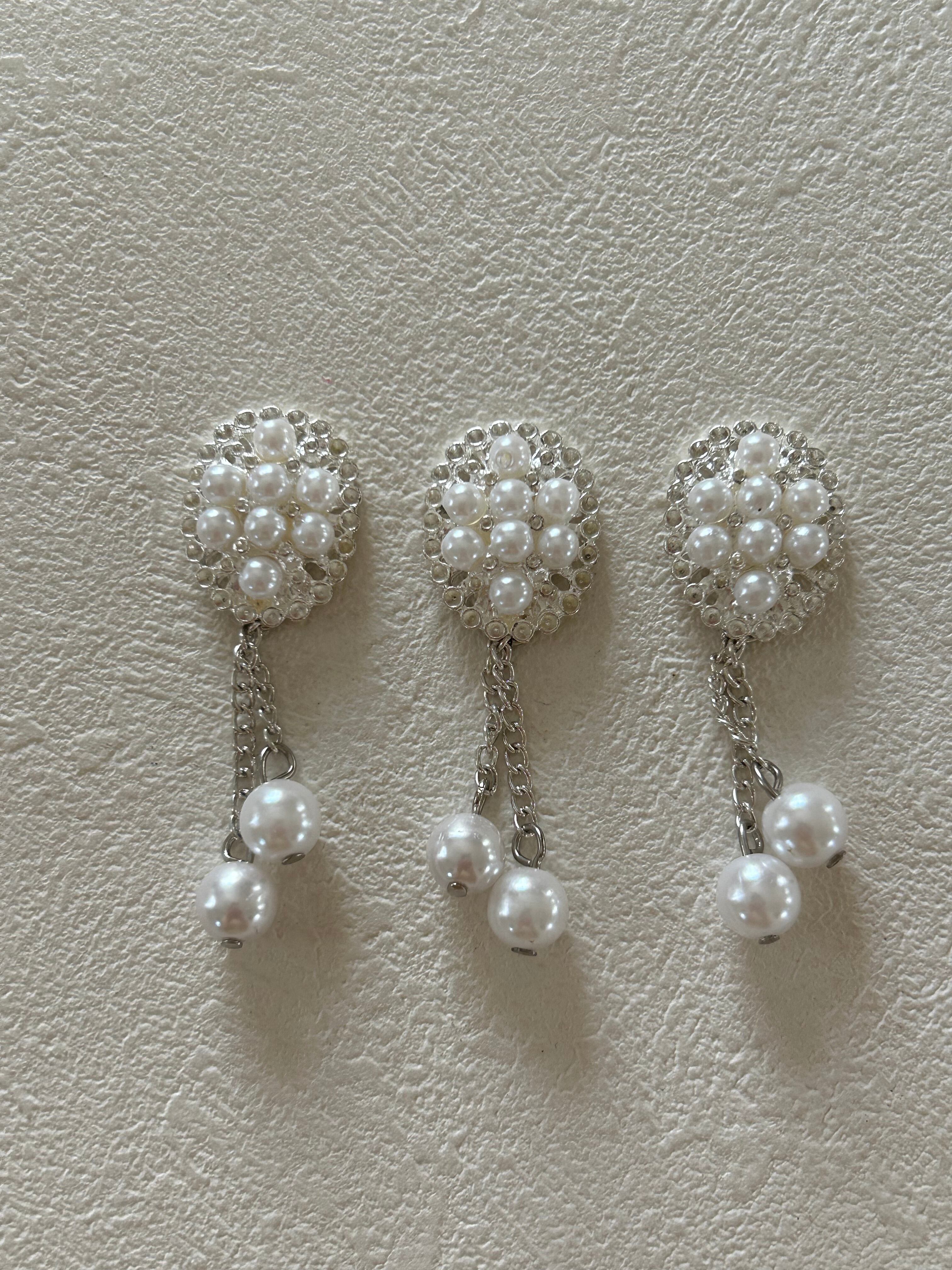 エレガントなシルバーのフレームにパール調ビーズがしきつめられています。