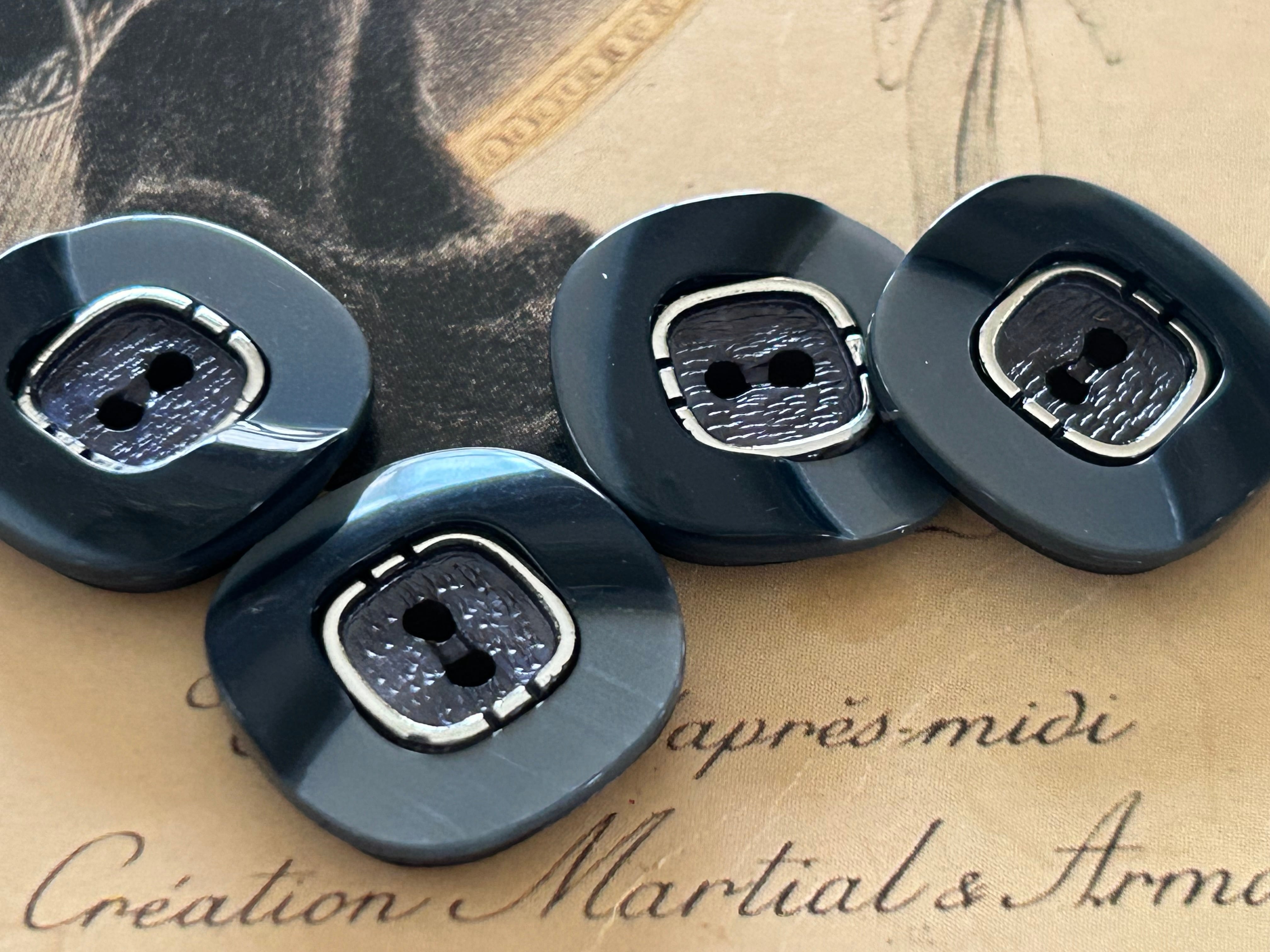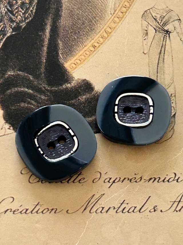 Japanese Vintage ボタン 角なしスクウェア ブルーグレー×シルバー 18mm 昭和レトロ アクセサリーパーツ 装飾材 カルトナージュ
