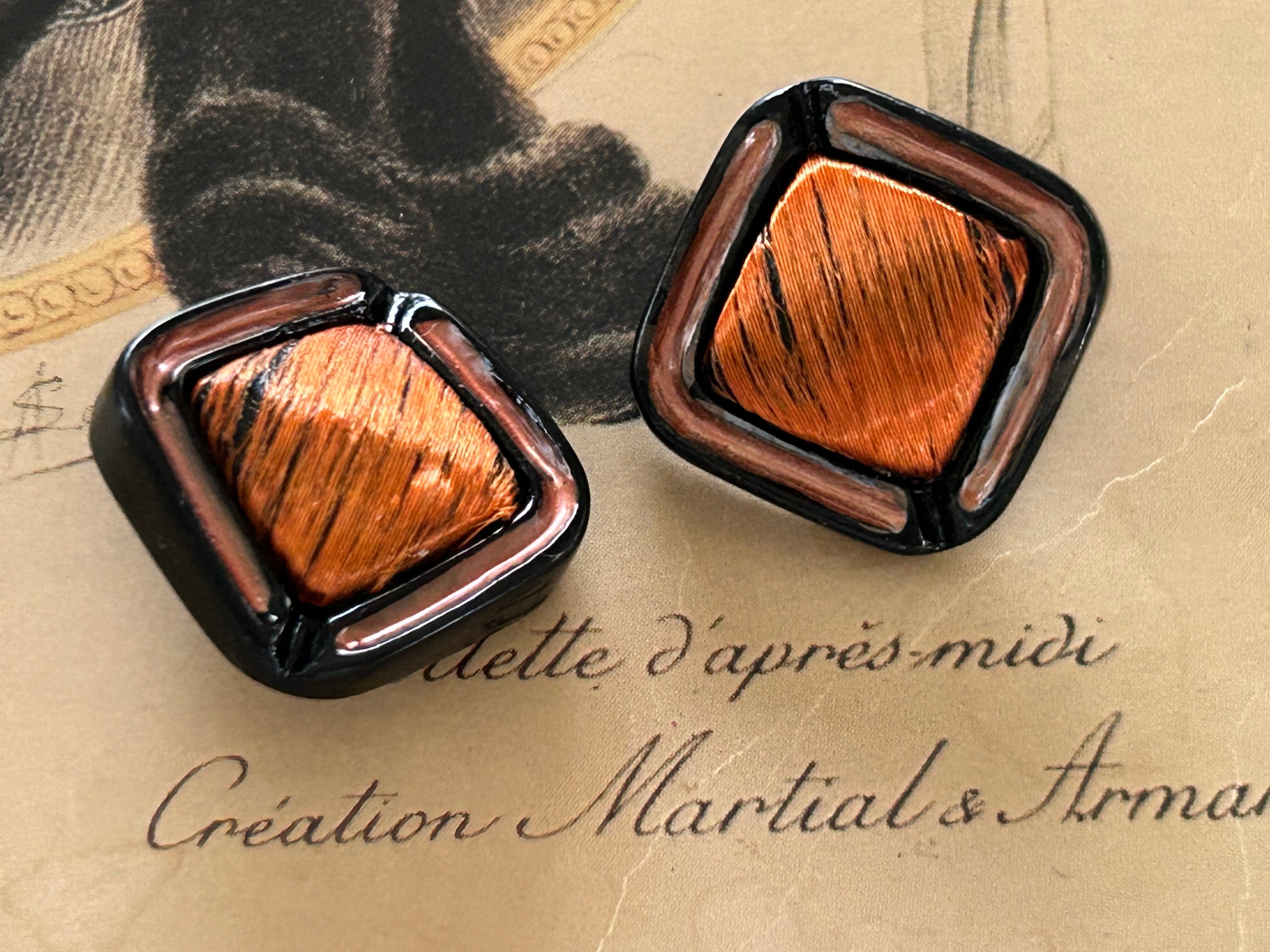 Japanese Vintage ヴィンテージボタン スクウェア オレンジ 18mm レトロボタン アクセサリーパーツ 装飾材 カルトナージュ