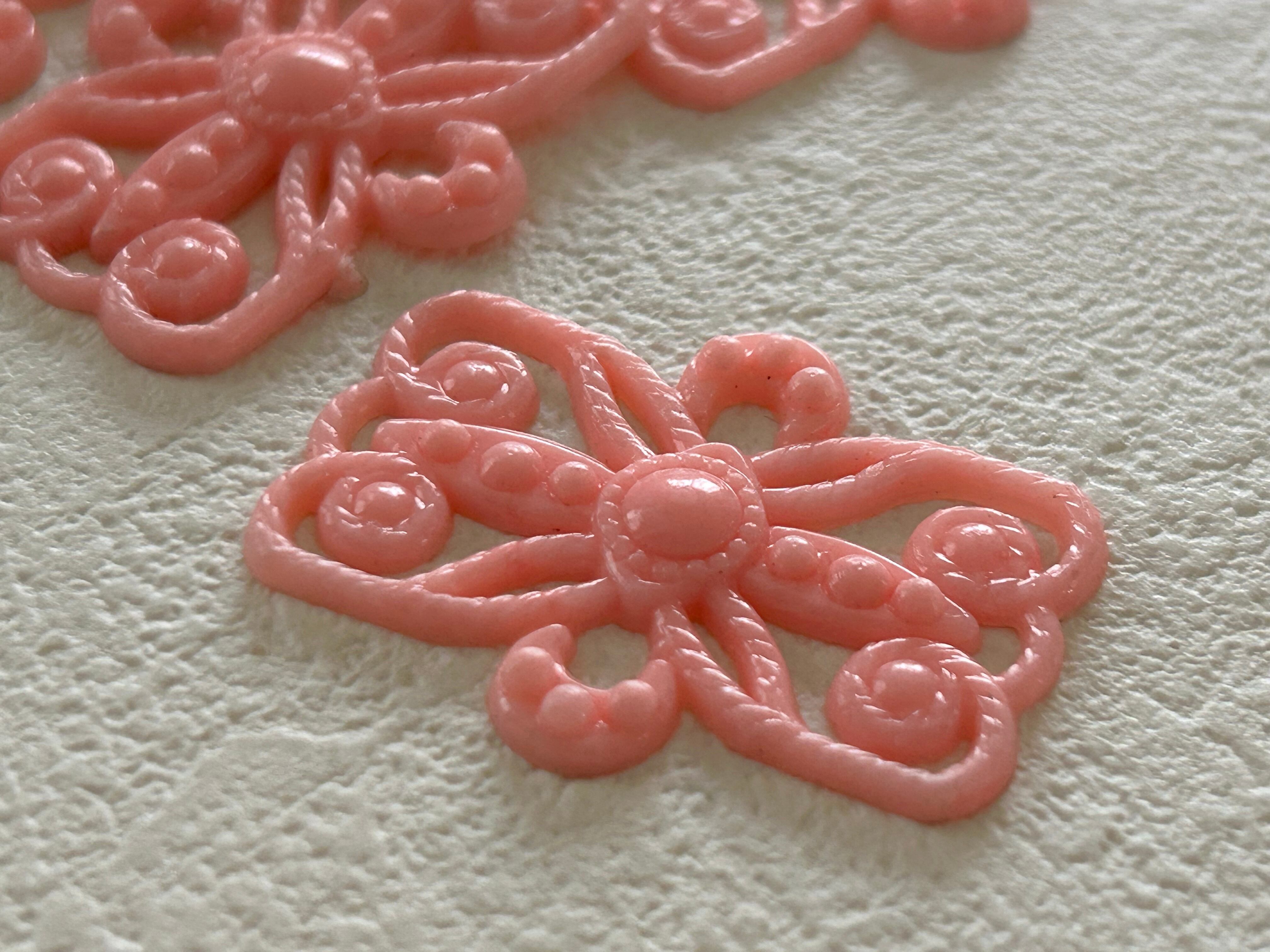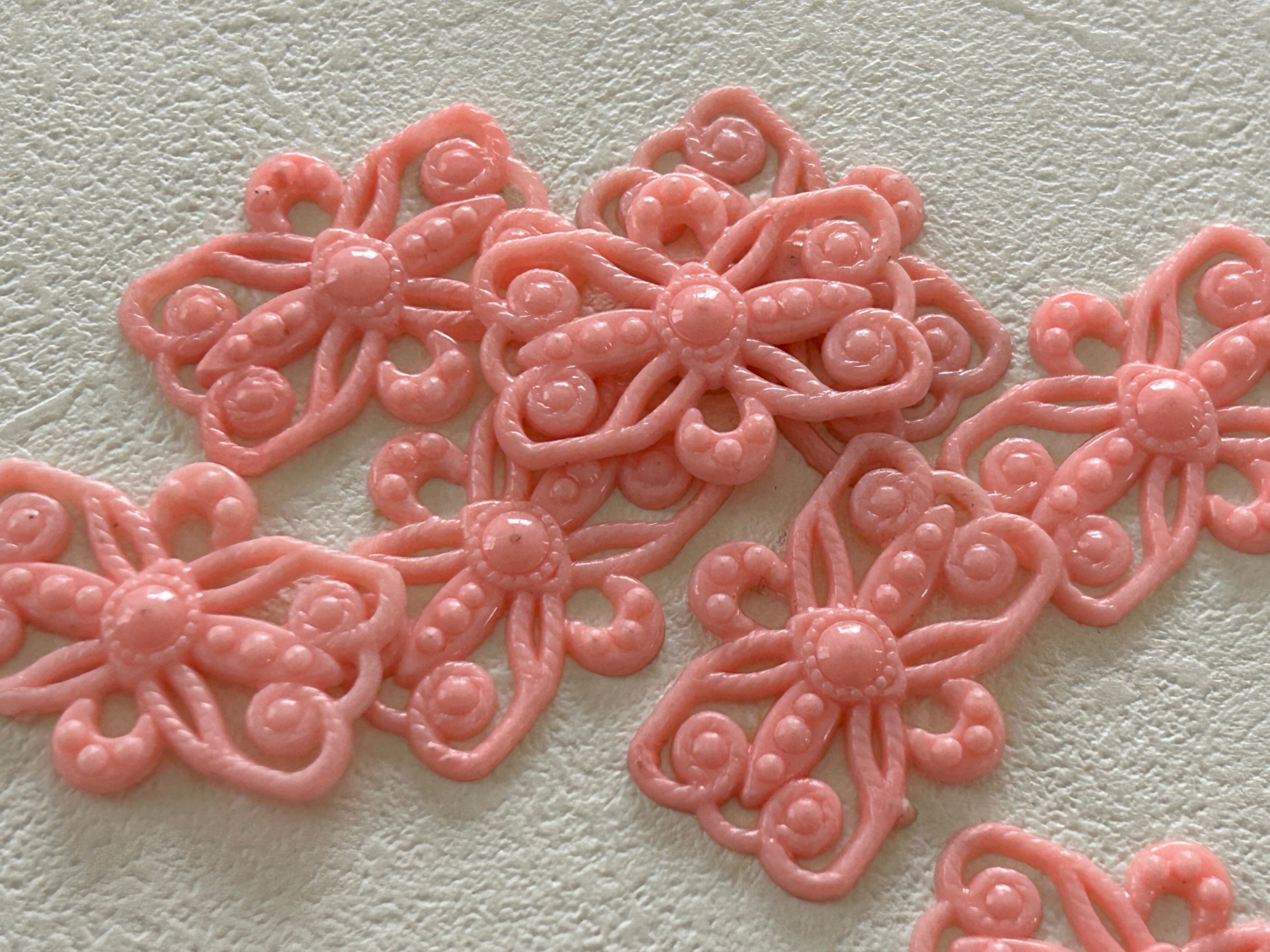 フランスVintage ヴィンテージパーツ 透かし ピンク プラスチック チャーム アクセサリーパーツ デコレーション材