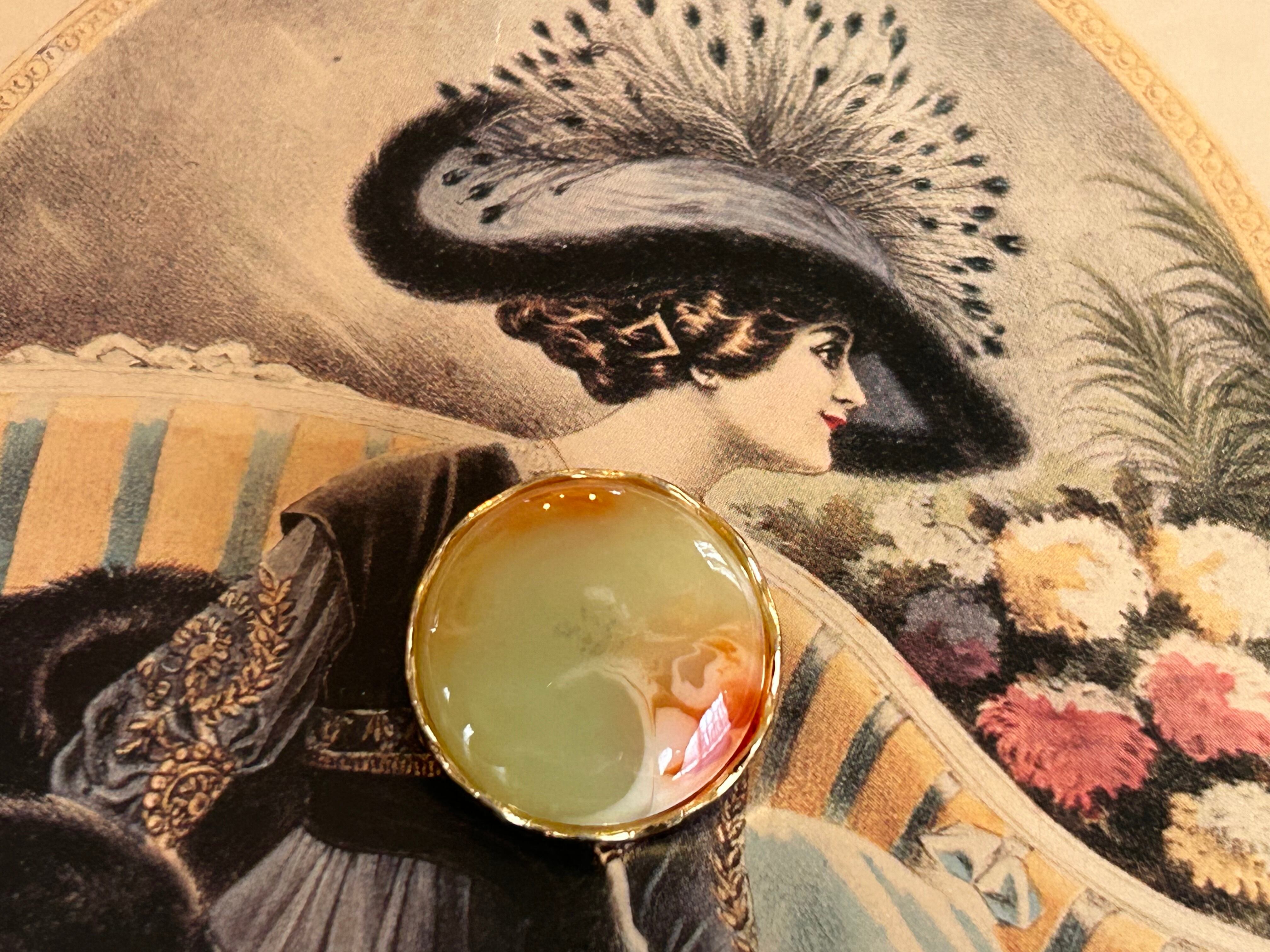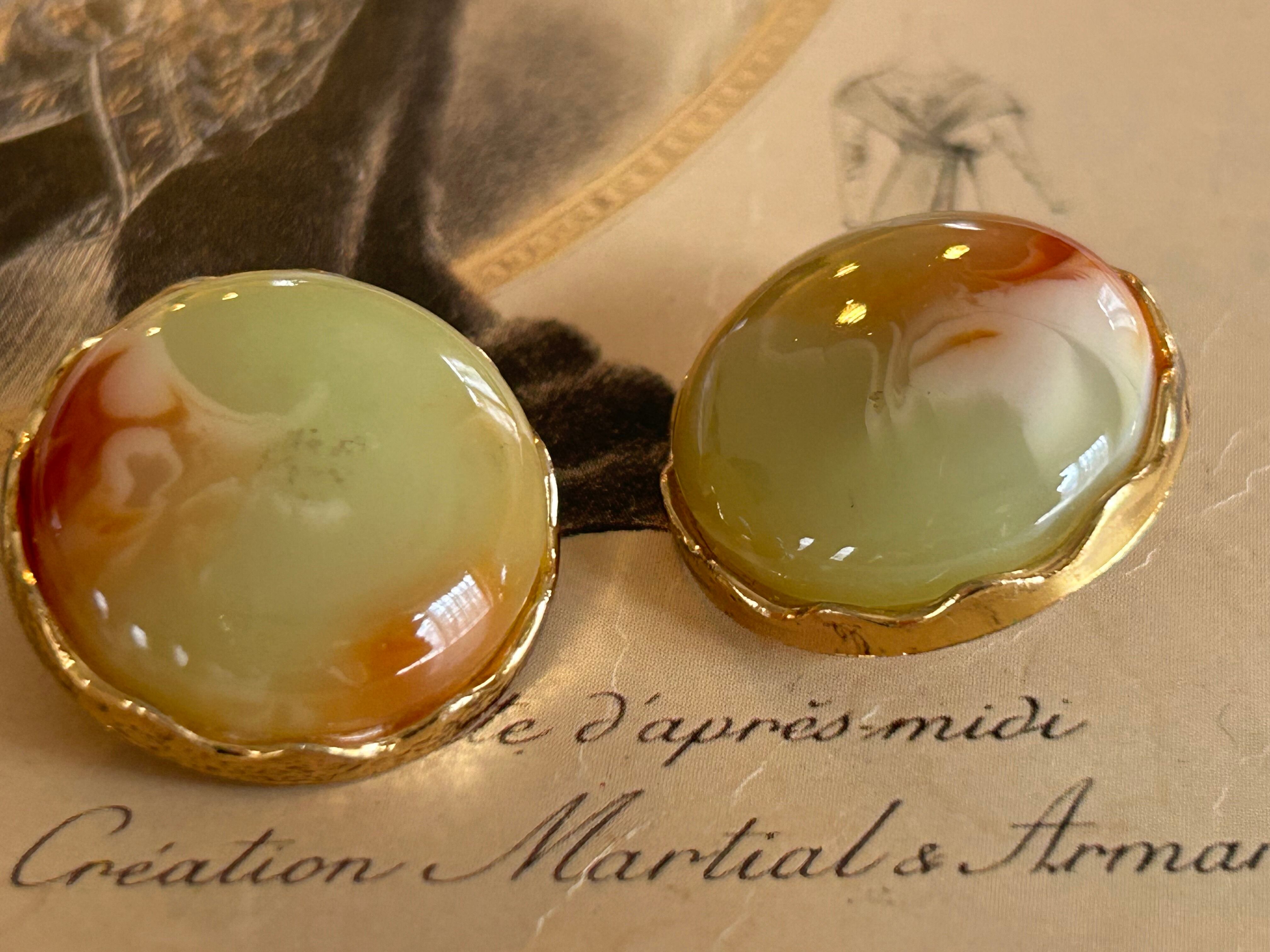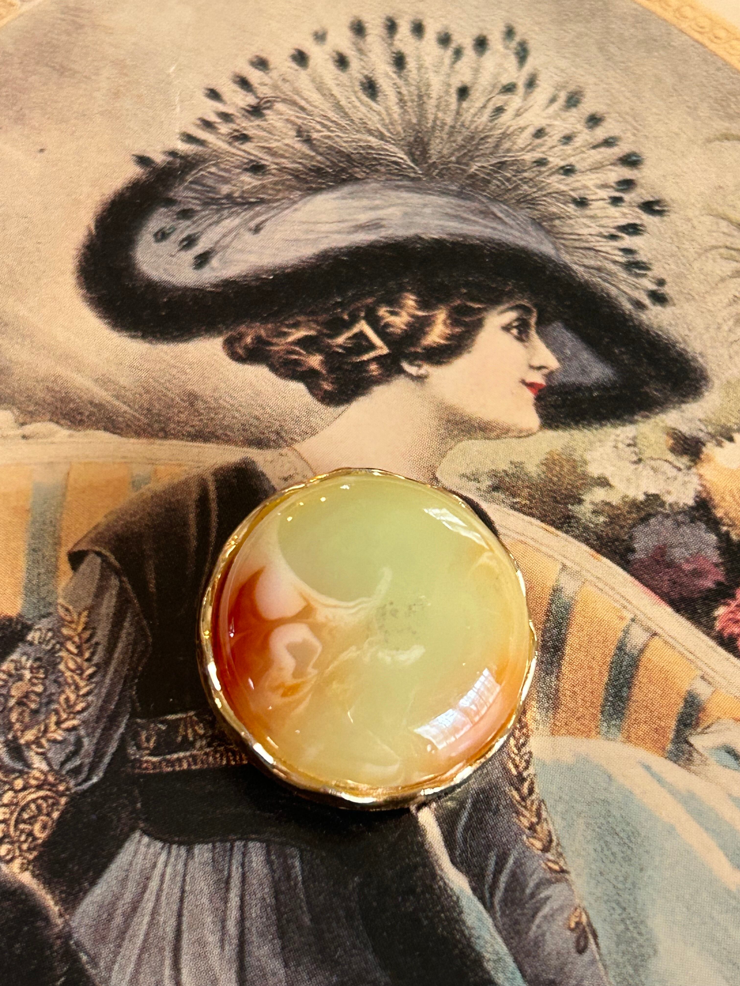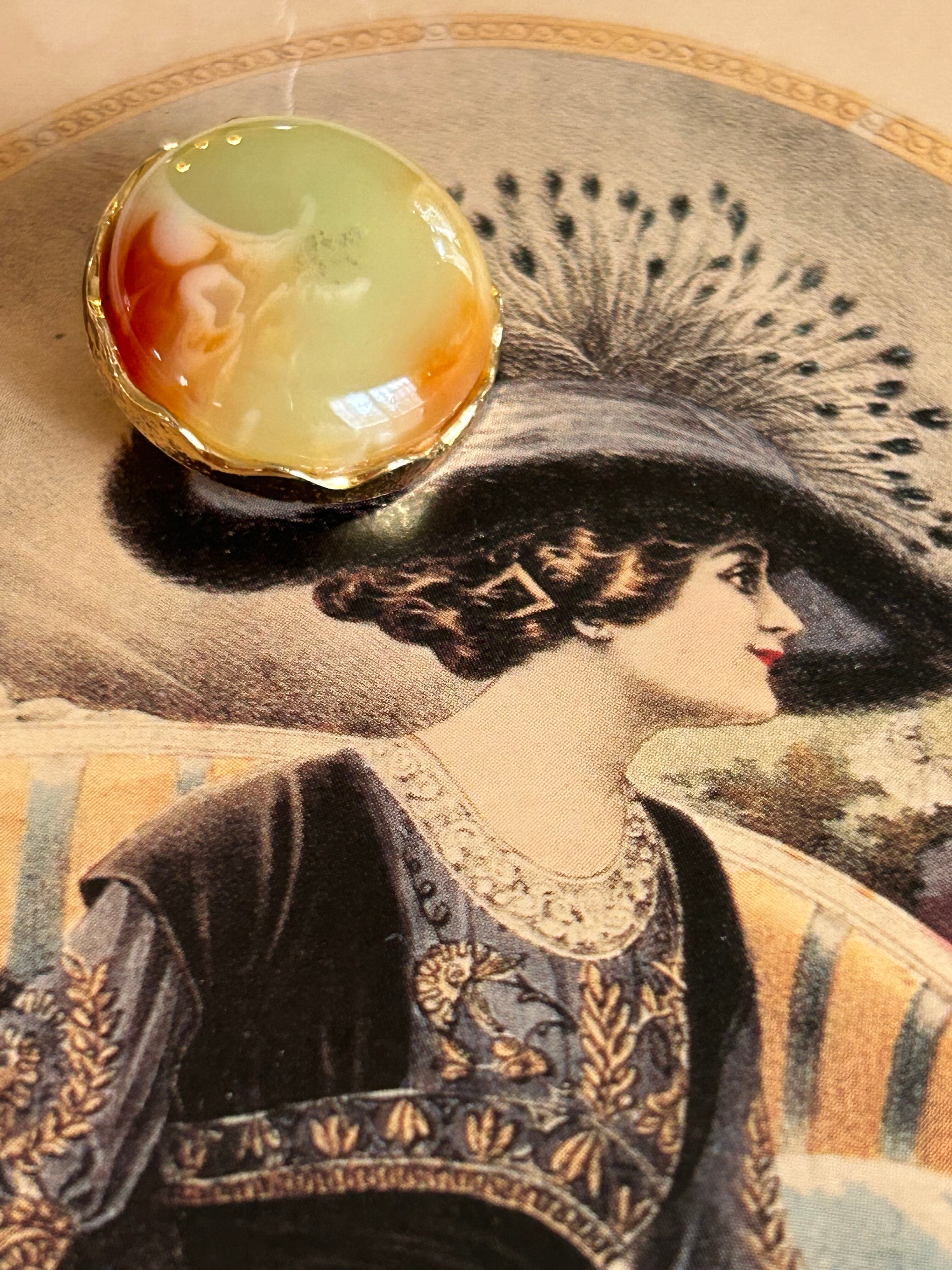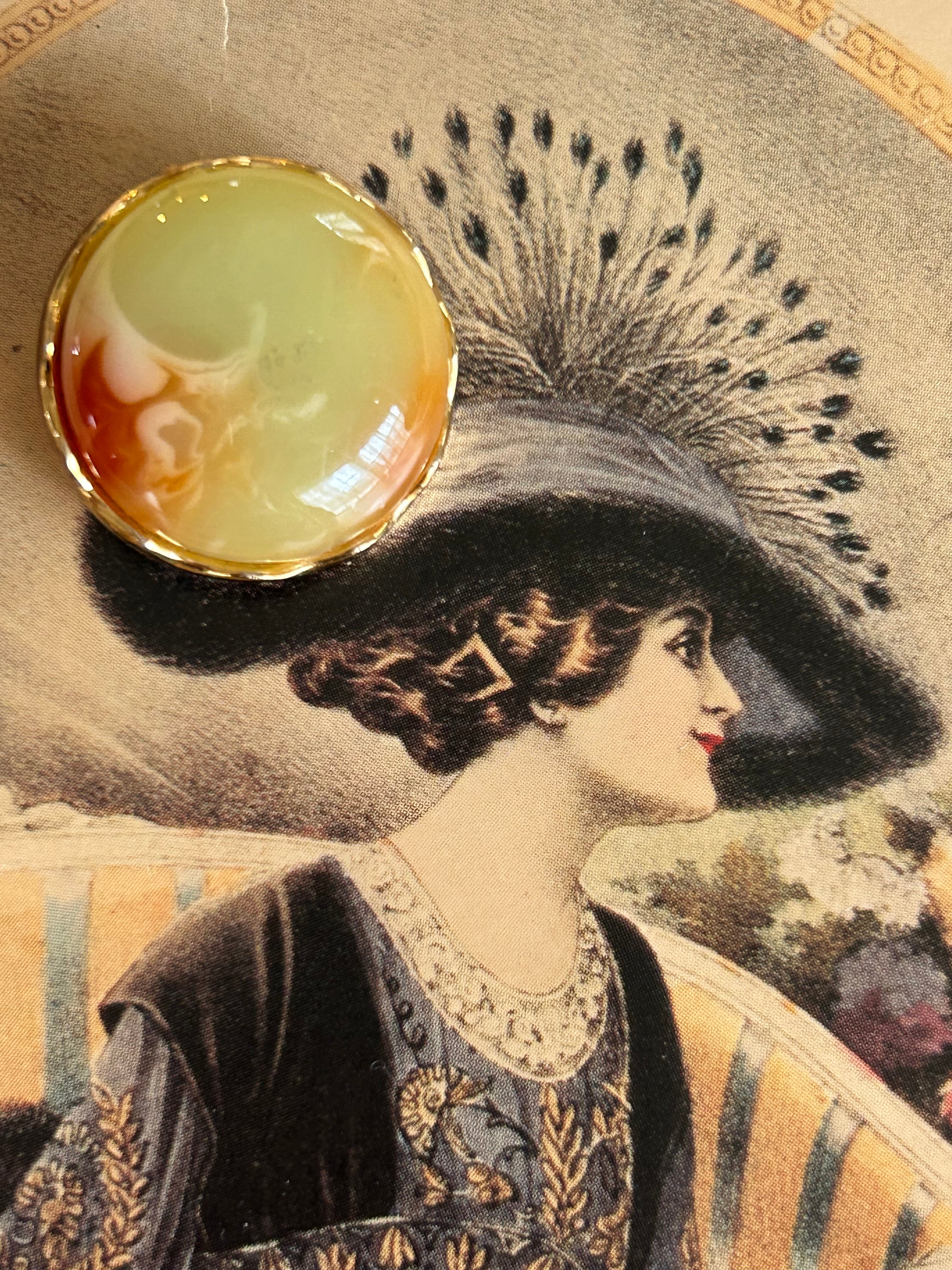 Japanese Vintage ヴィンテージボタン カボション イエロー系 マーブル 23mm アクセサリーパーツ 装飾材