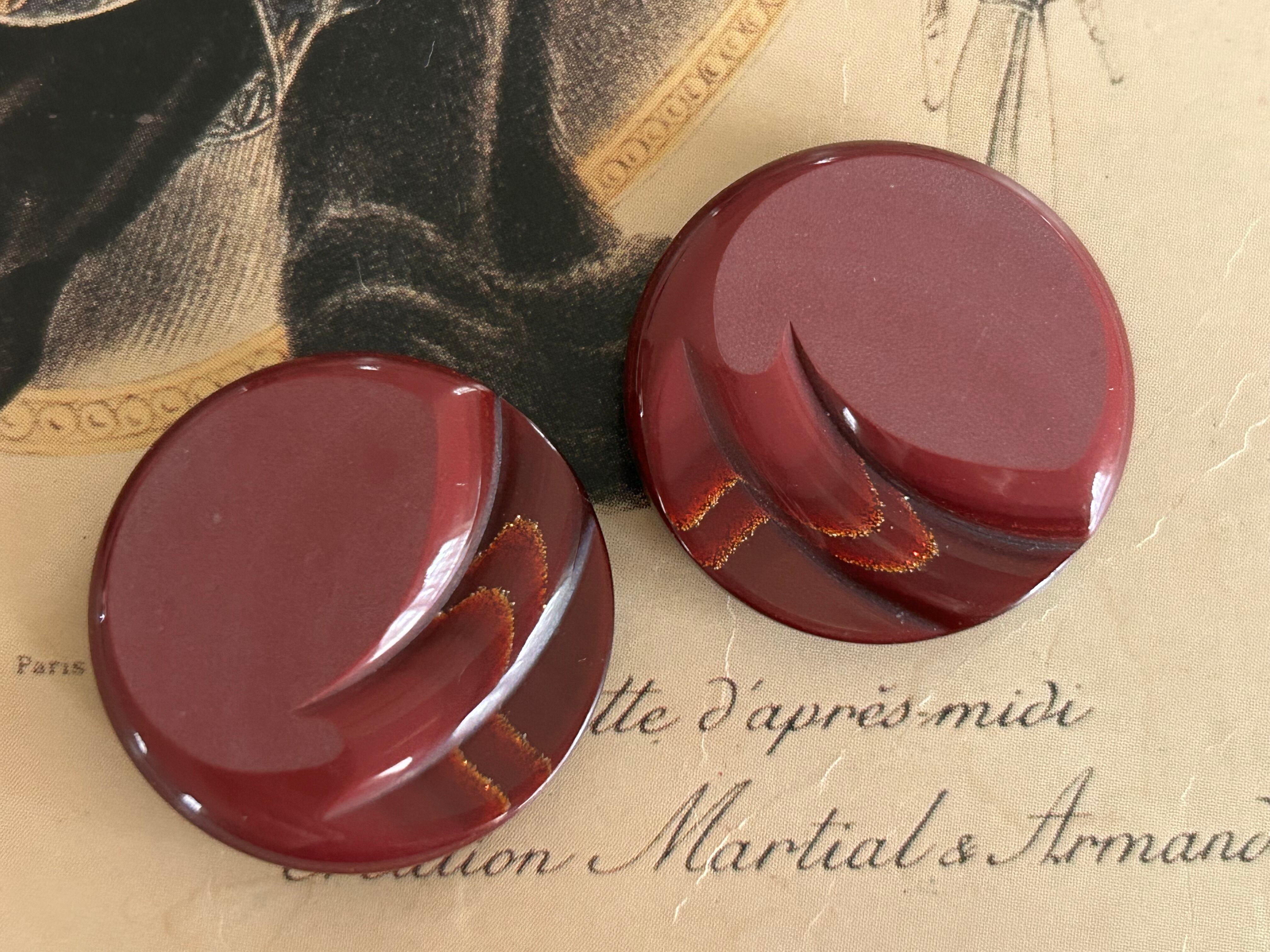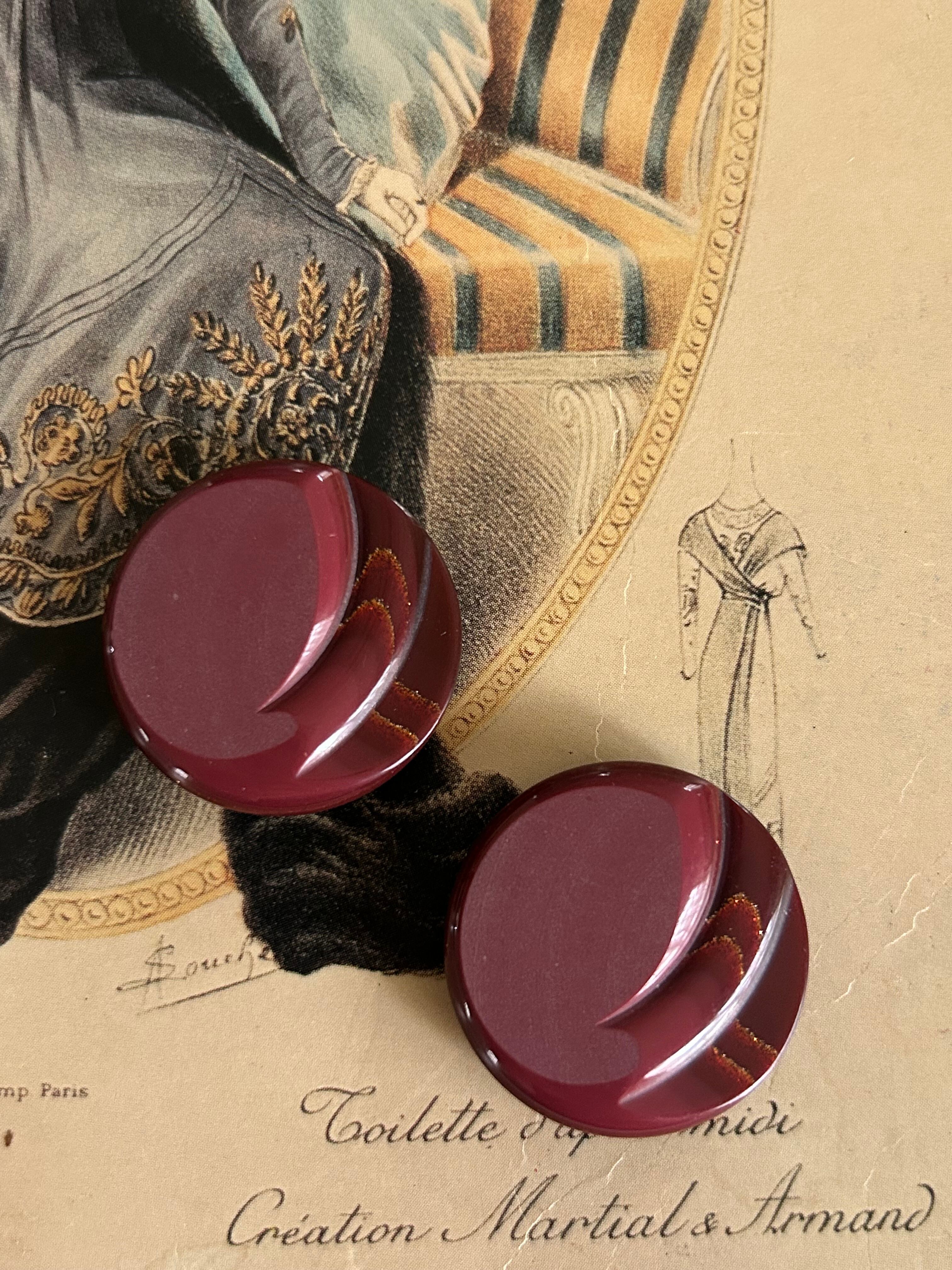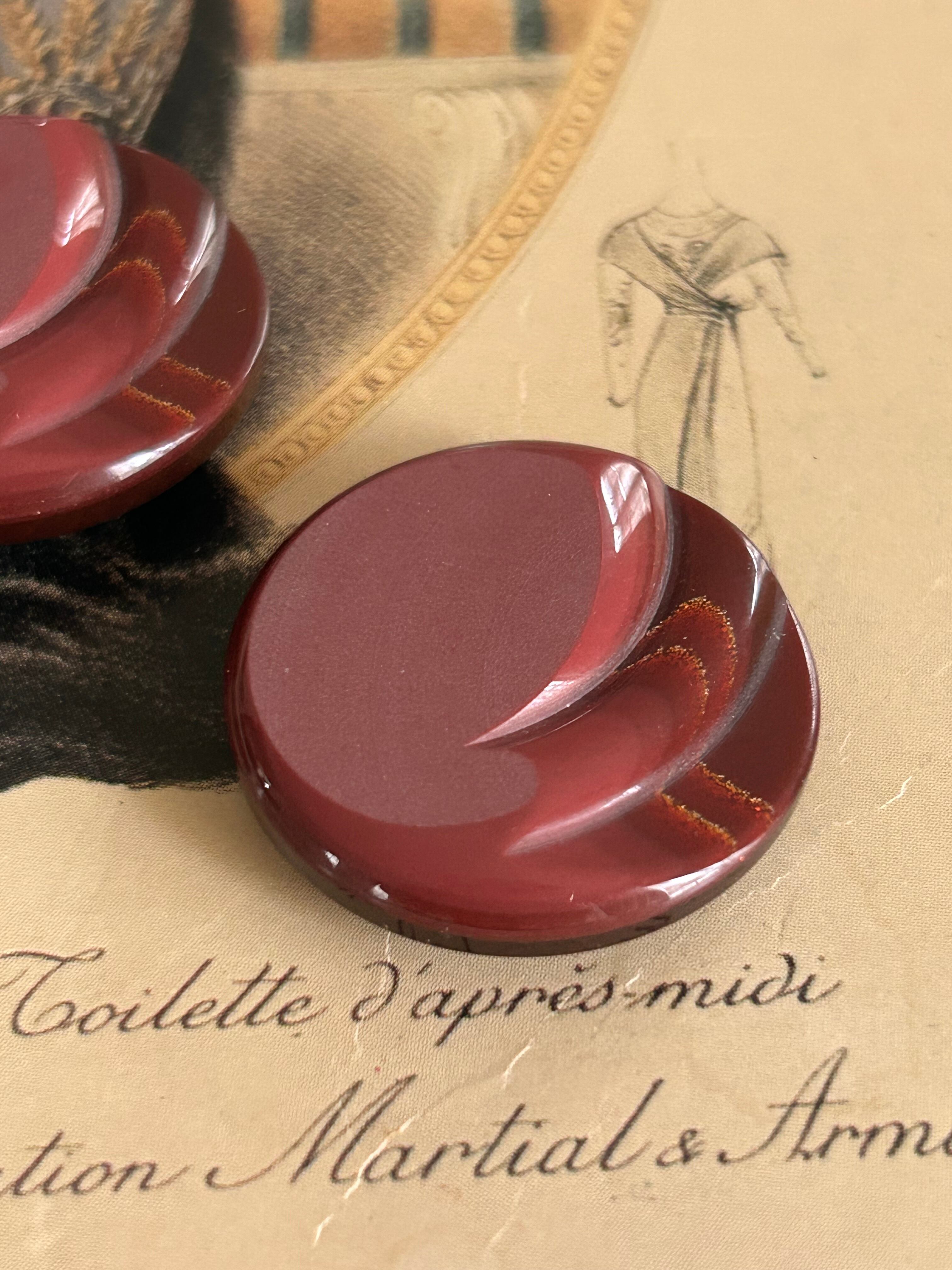 Japanese Vintage ボタン ワインレッド×ゴールド 27mm グリッター プラスチックボタン 昭和レトロ アクセサリーパーツ 装飾材 カルトナージュ