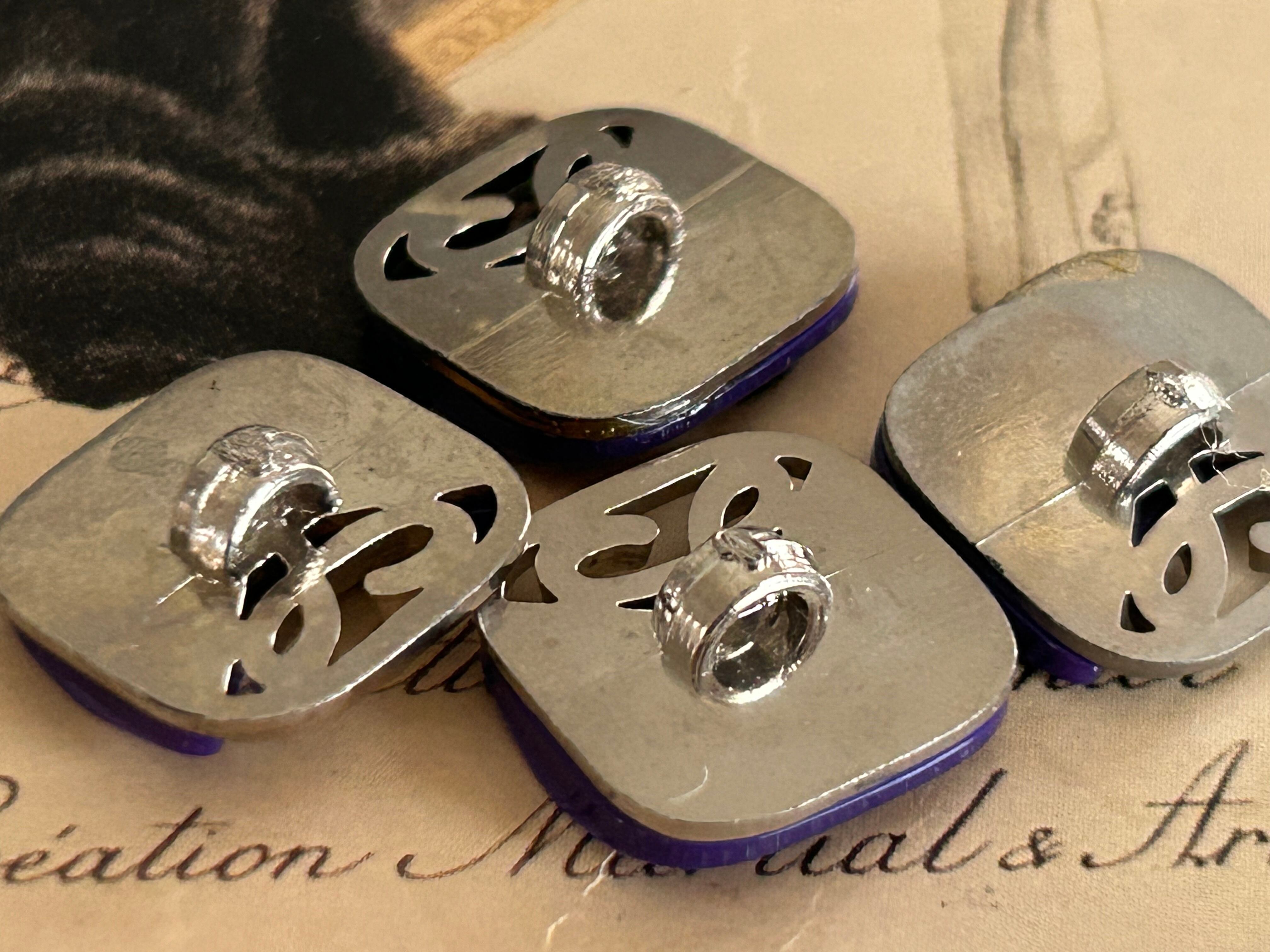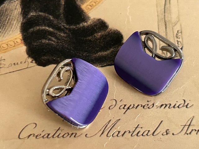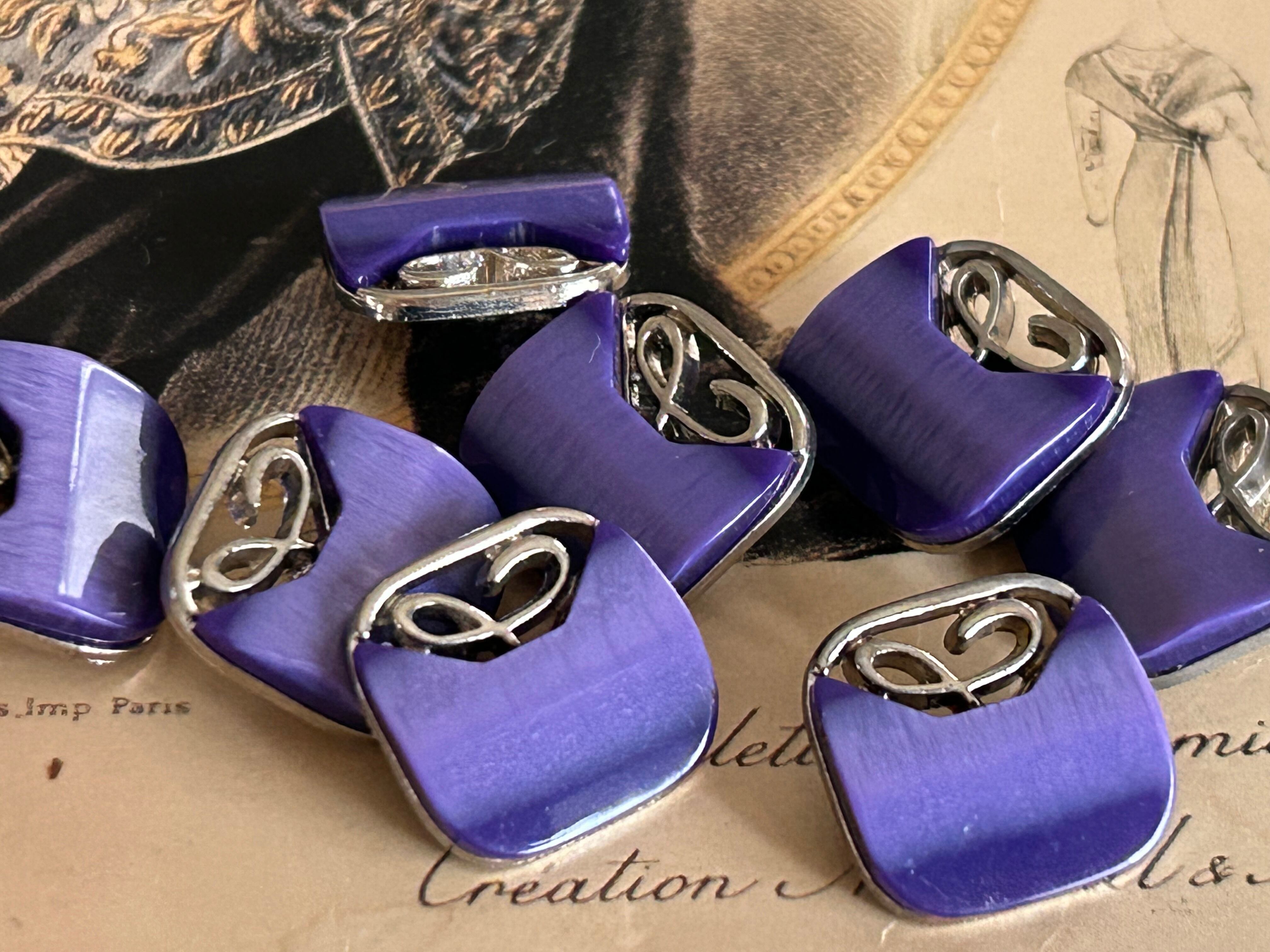 Japanese Vintage ボタン 15mm 角なしスクウェア カボション 透かし パープル×シルバー アクセサリーパーツ 装飾材 カルトナージュ
