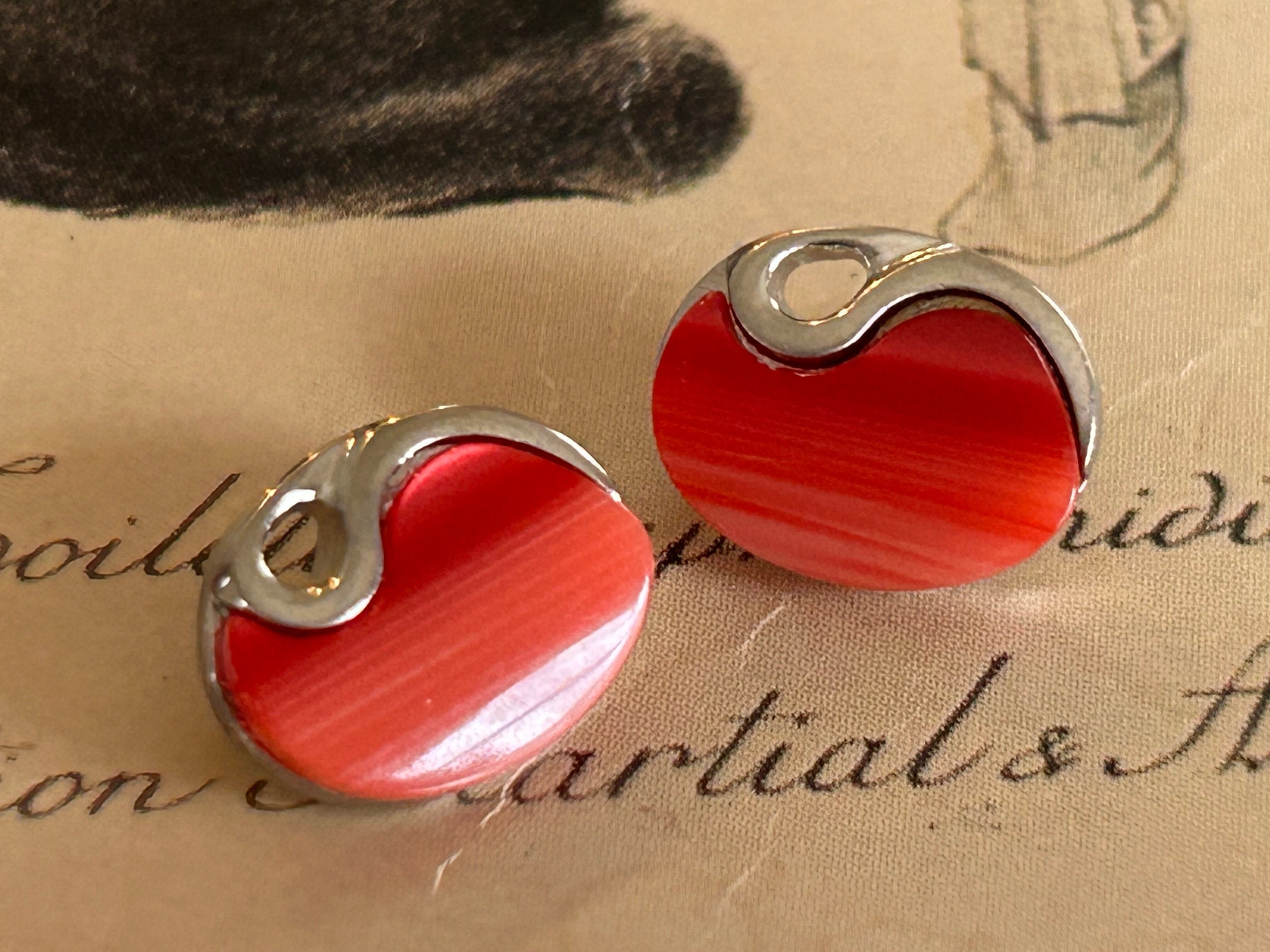 Japanese Vintage ボタン 11mm オーバル カボション レッド アクセサリーパーツ 装飾材 カルトナージュ