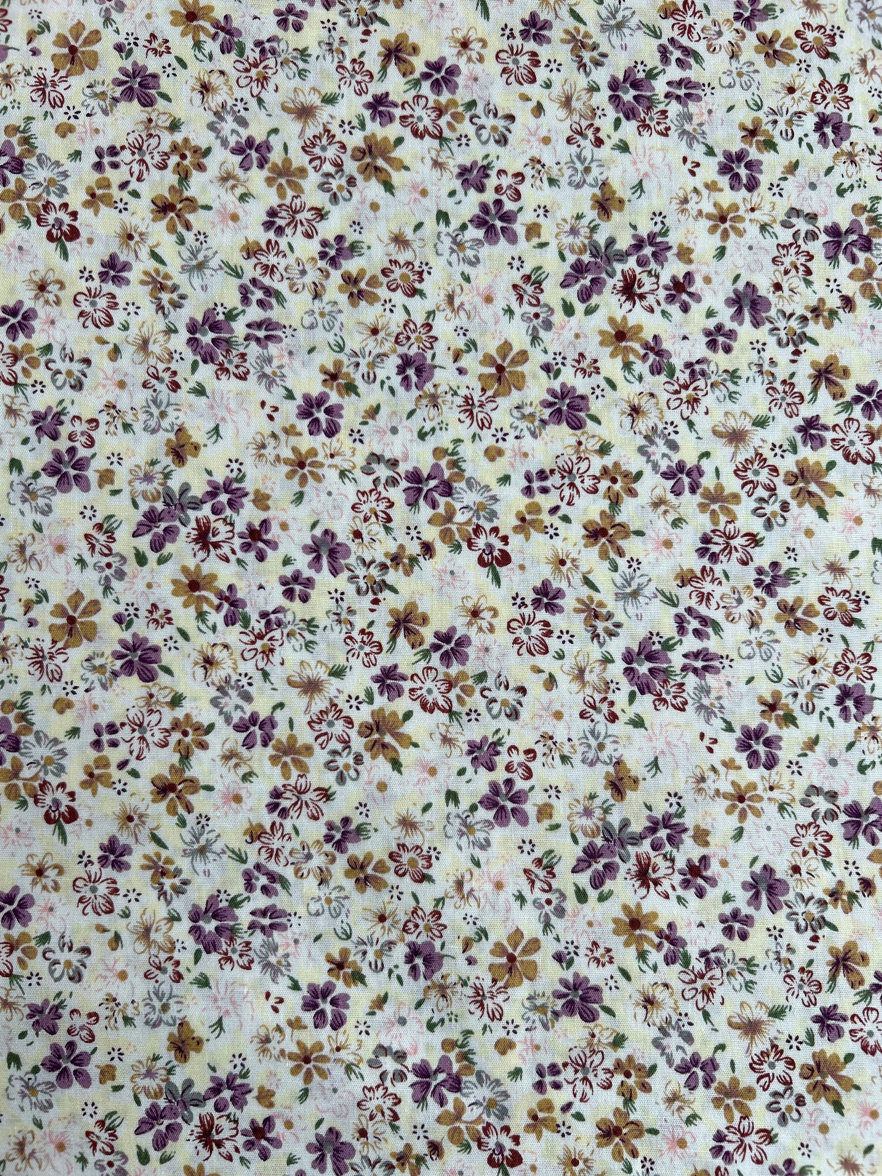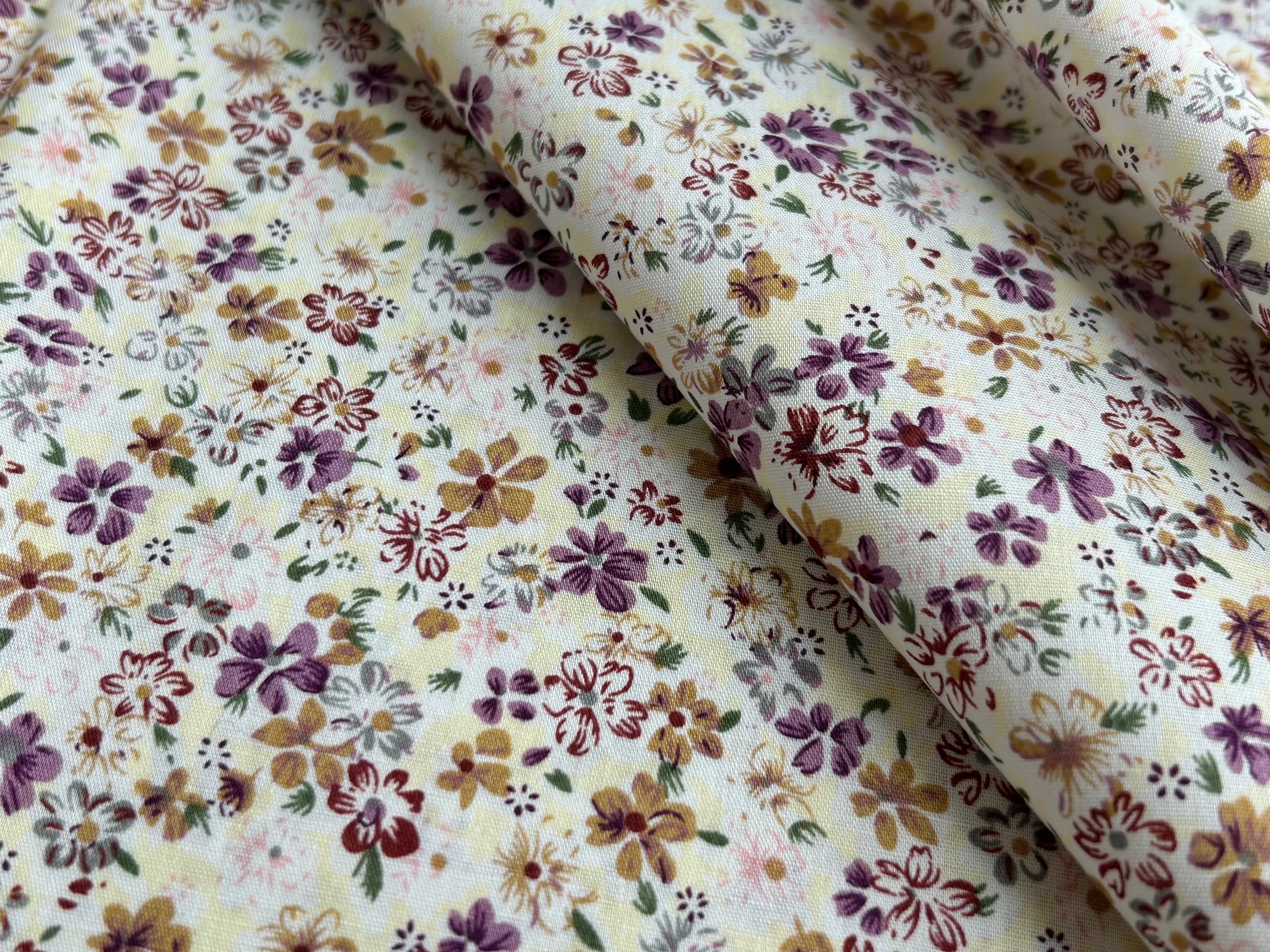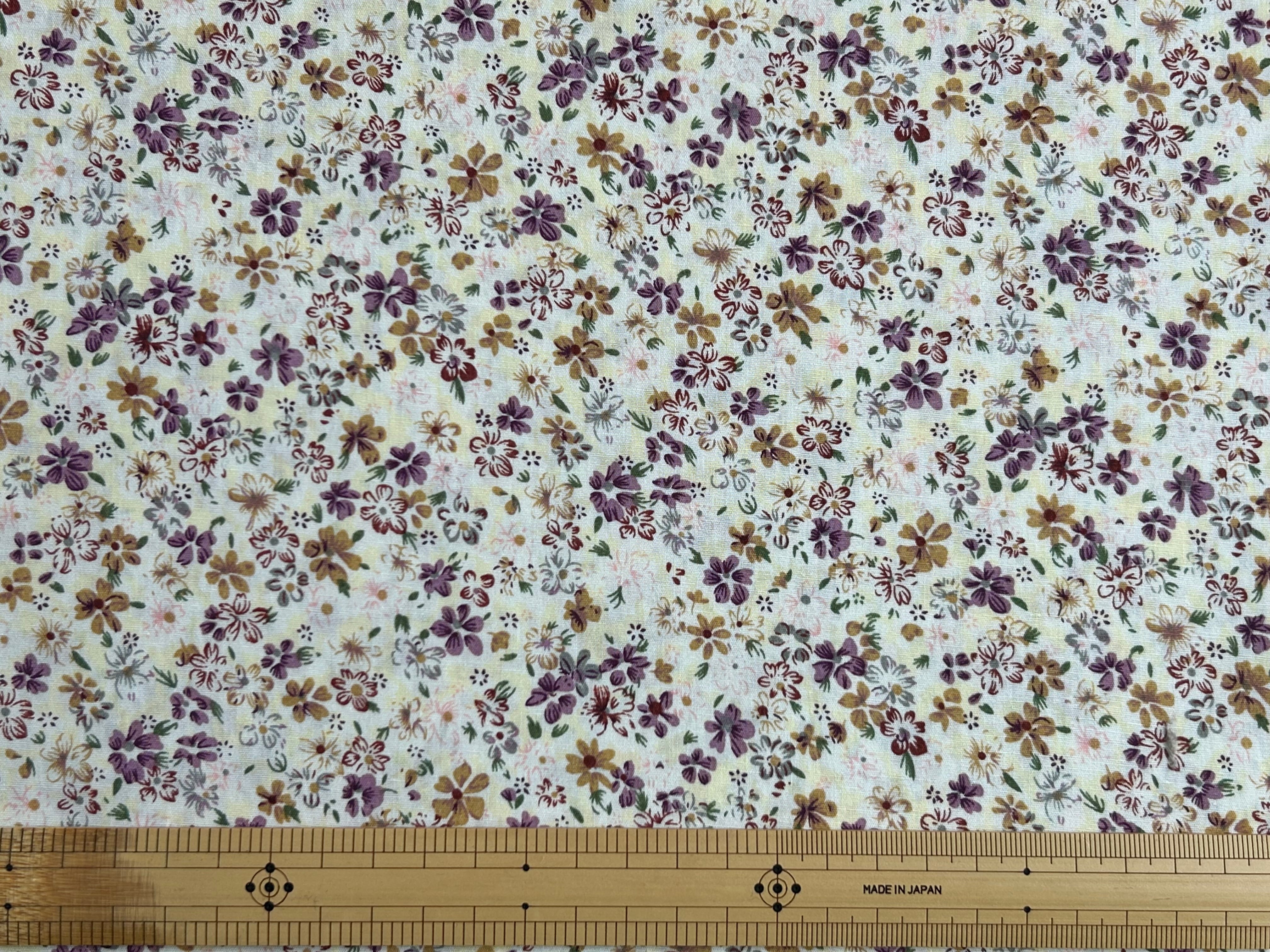 フランス コットンファブリック 輸入ファブリック パープル×ブラウン他 マルチカラー 小花柄 花柄 総柄 カルトナージュ