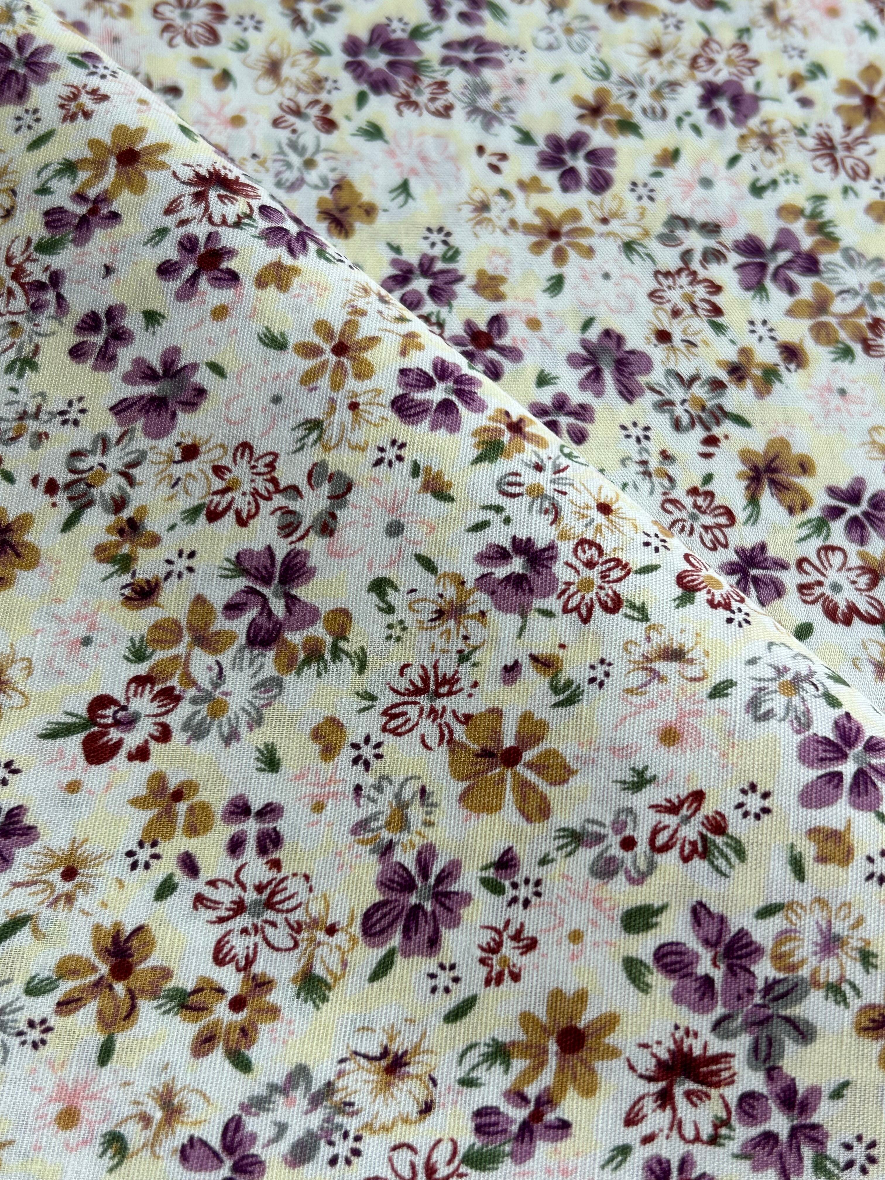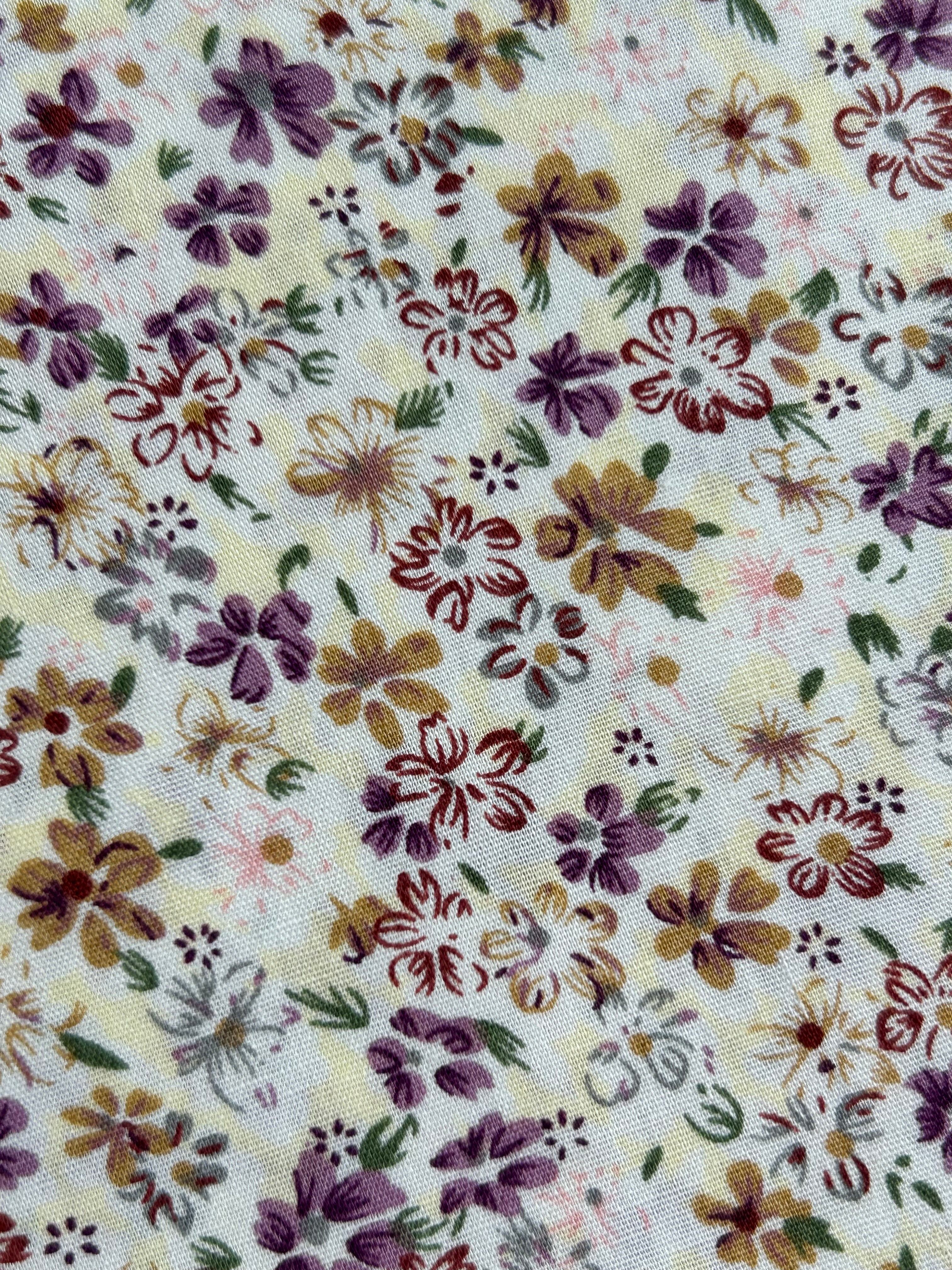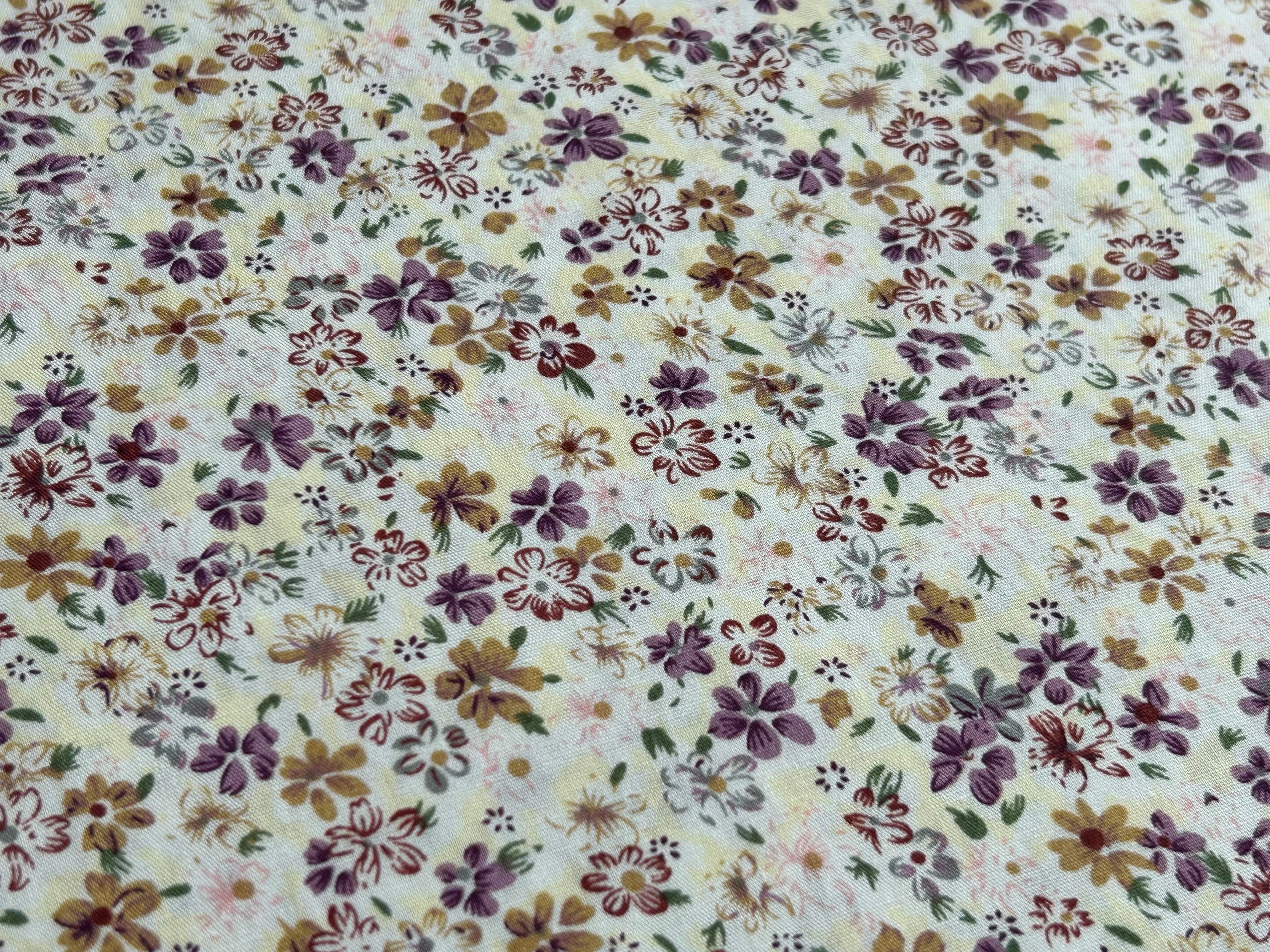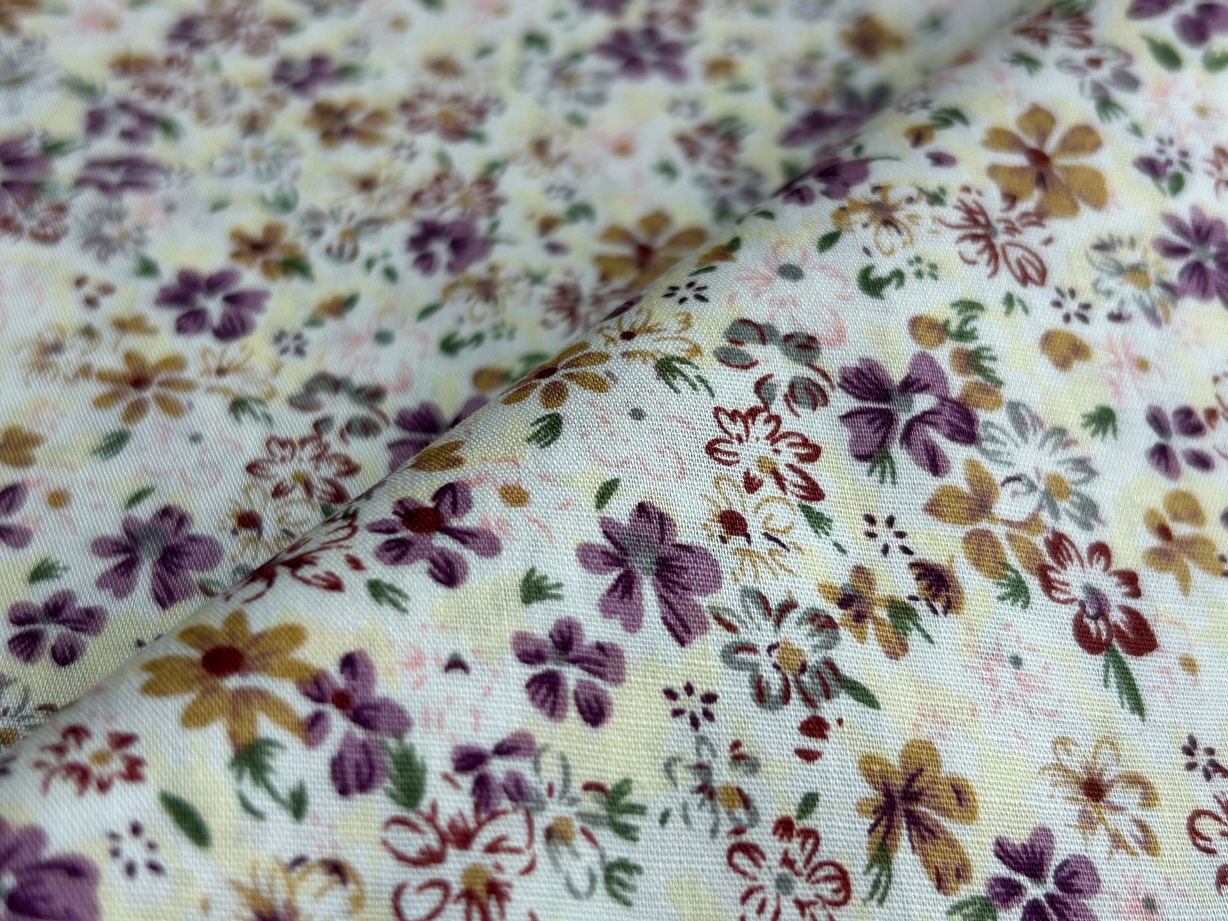 フランス コットンファブリック 輸入ファブリック パープル×ブラウン他 マルチカラー 小花柄 花柄 総柄 カルトナージュ
