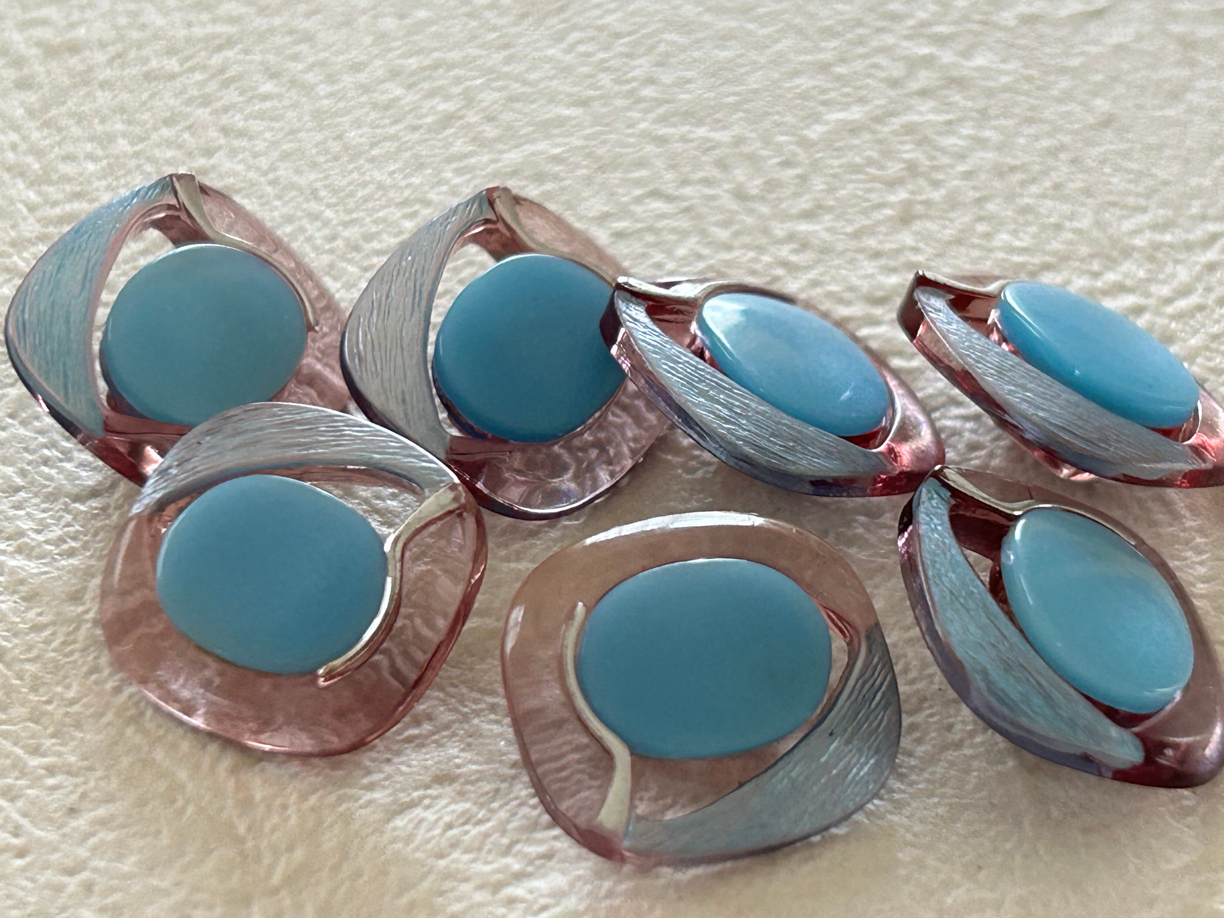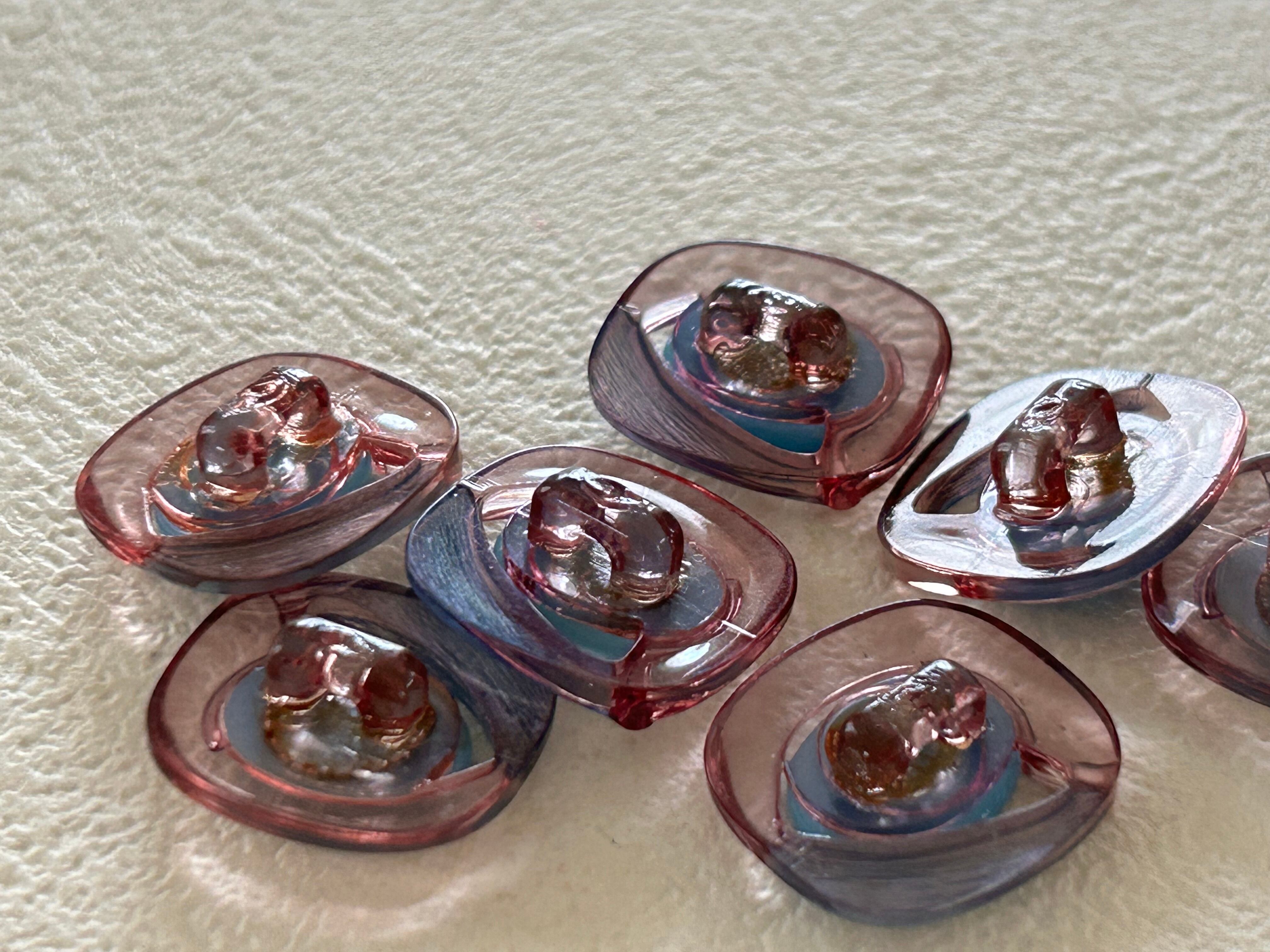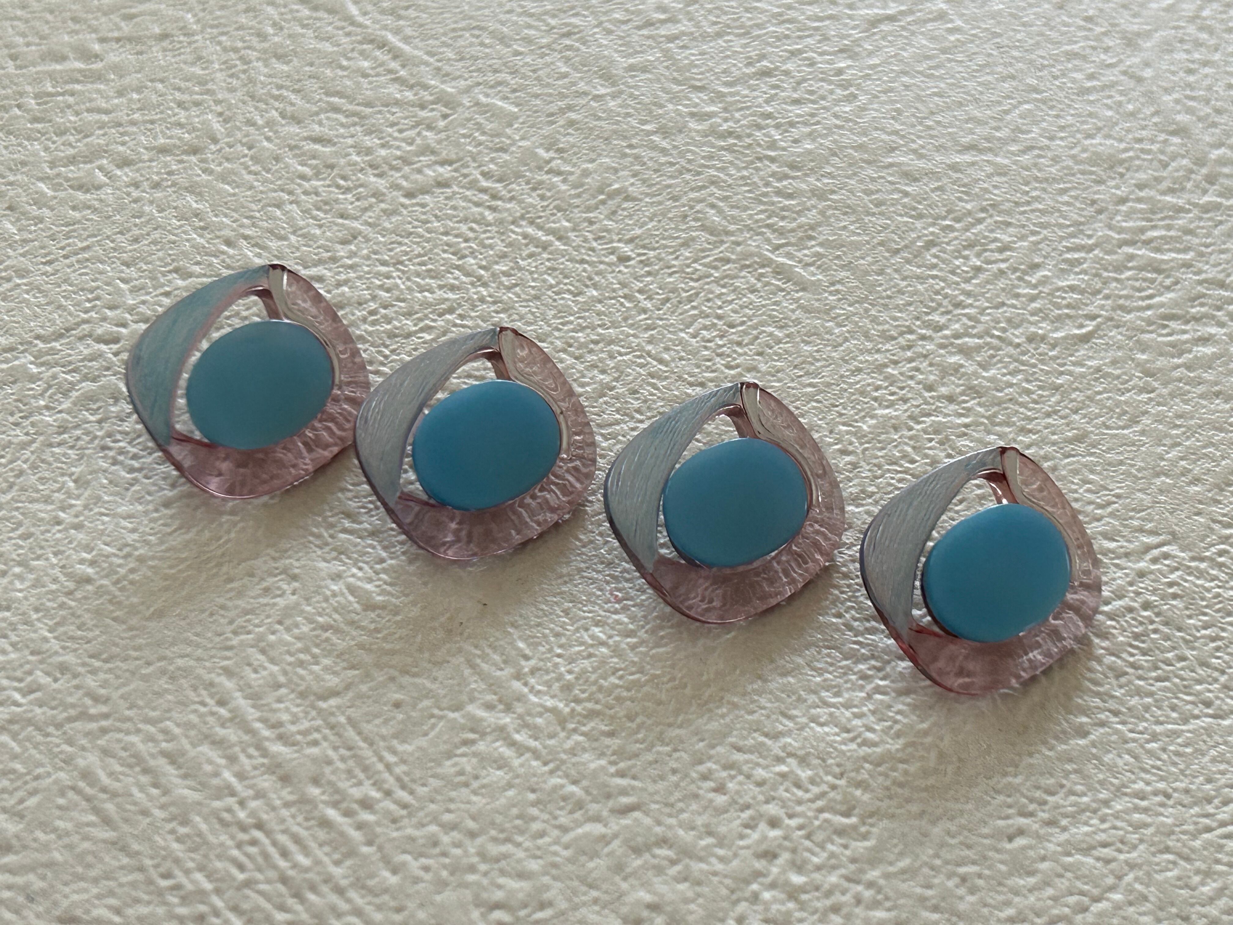 Japanese Vintage ボタン 角なしスクウェア ライトブルー 15mm×14mm カボション クリア 昭和レトロ アクセサリーパーツ 装飾材 カルトナージュ