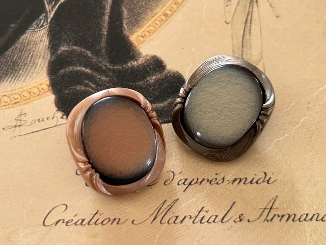 Japanese Vintage ボタン 19mm カボション グレージュ/オールドローズ アクセサリーパーツ 装飾材 カルトナージュ