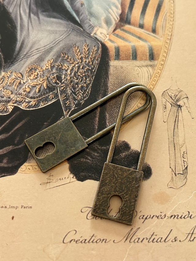 輸入デザインパーツ 南京錠 パドロック 金古美 49mm チャーム アクセサリーパーツ デコレーション材