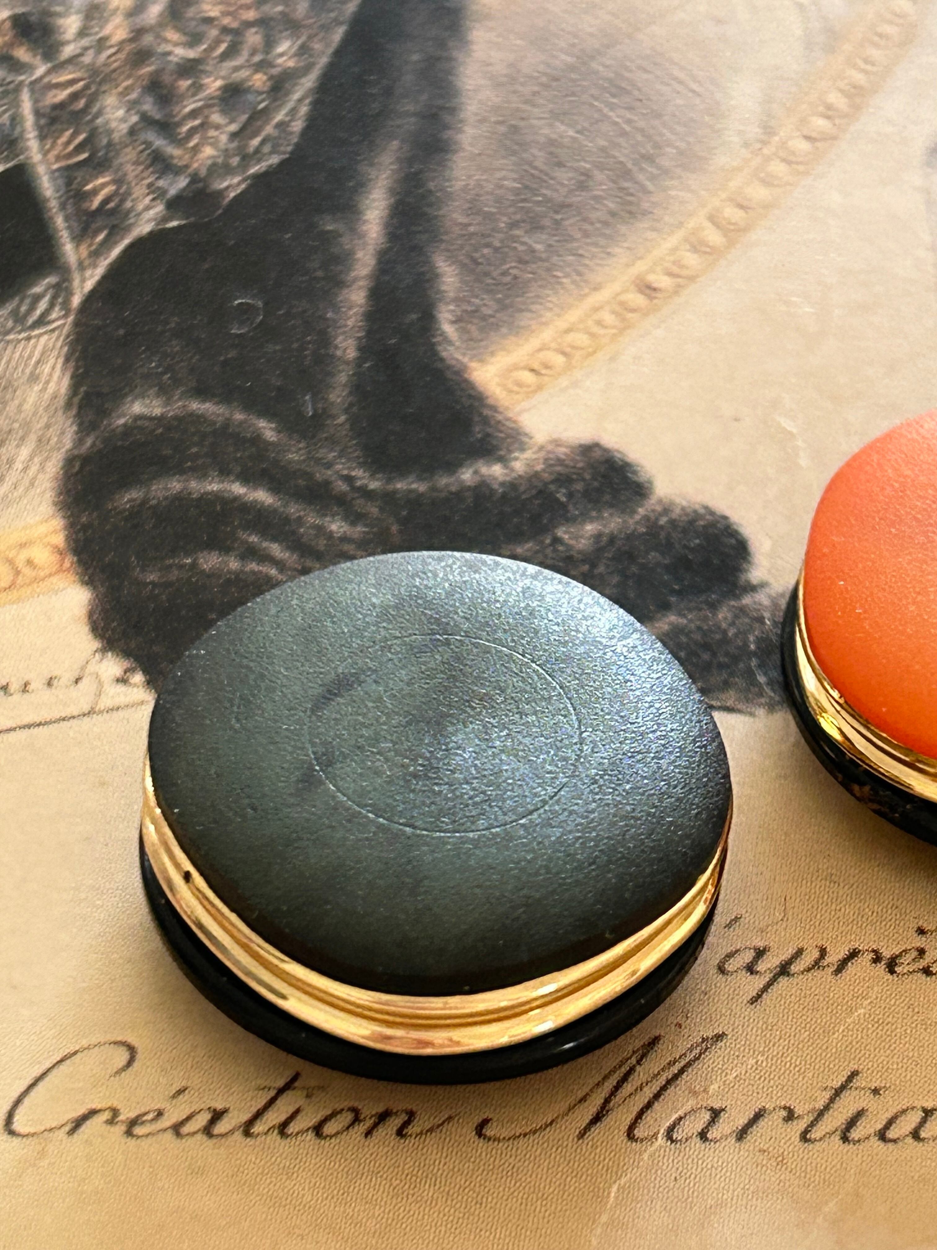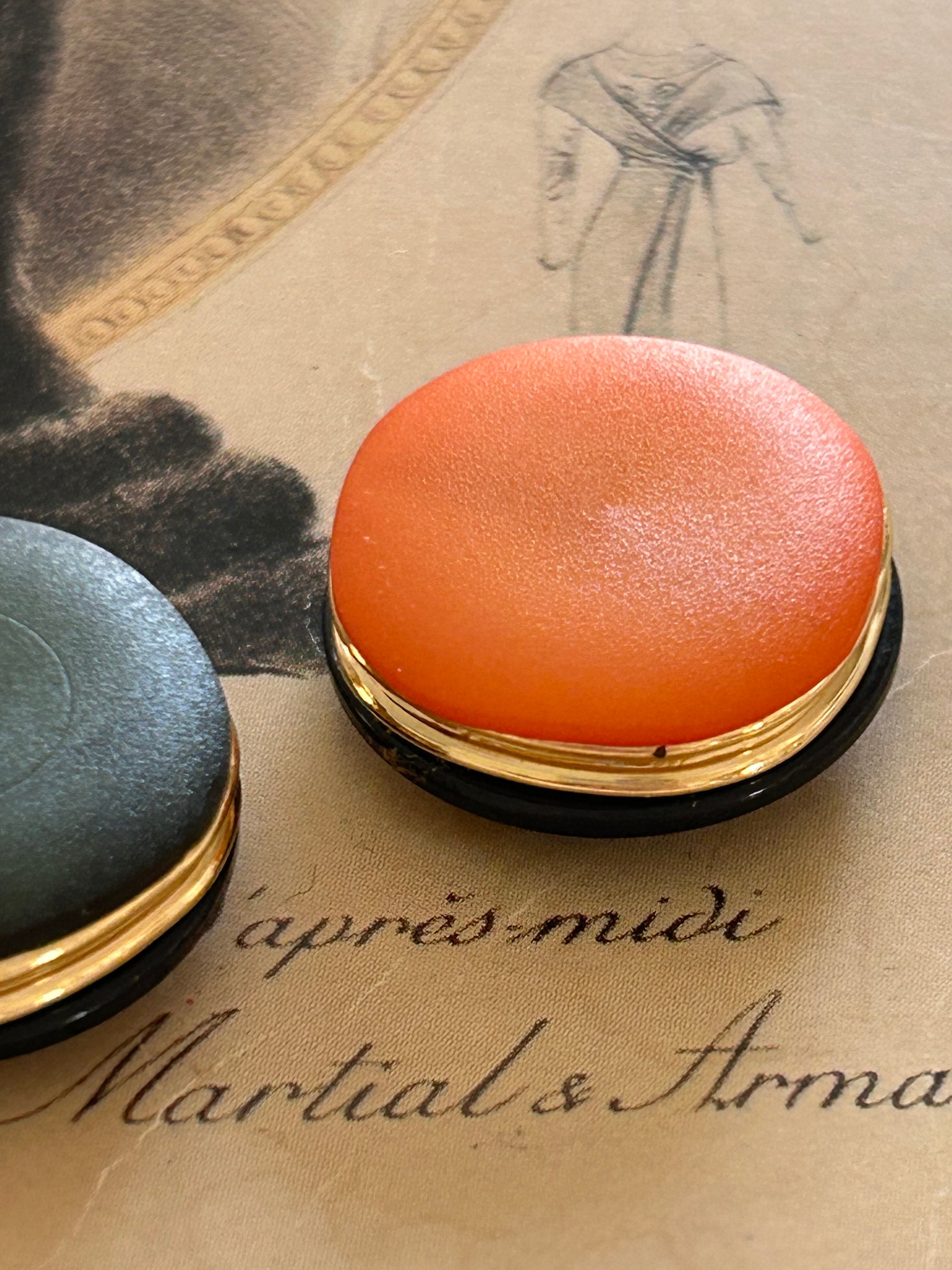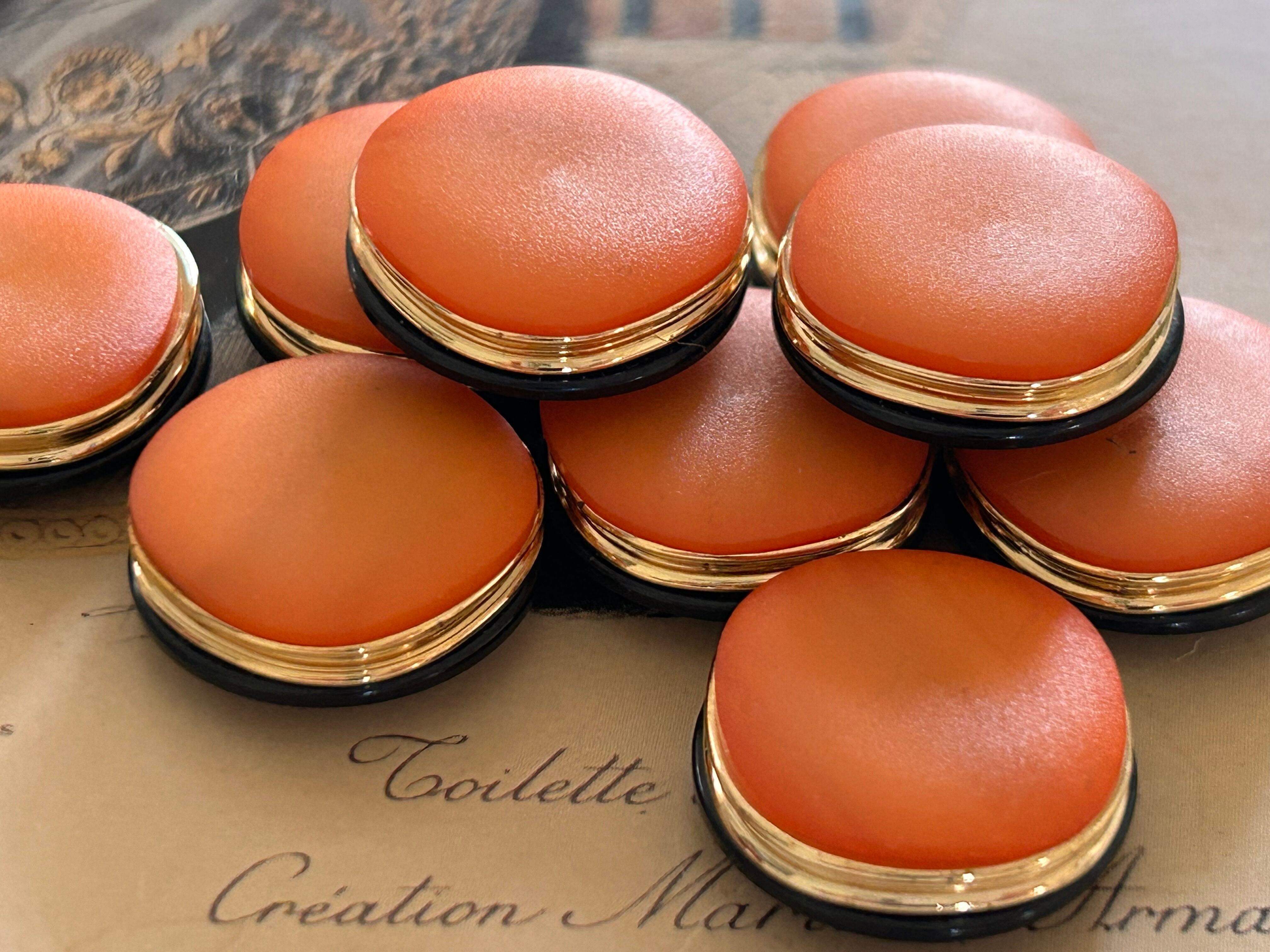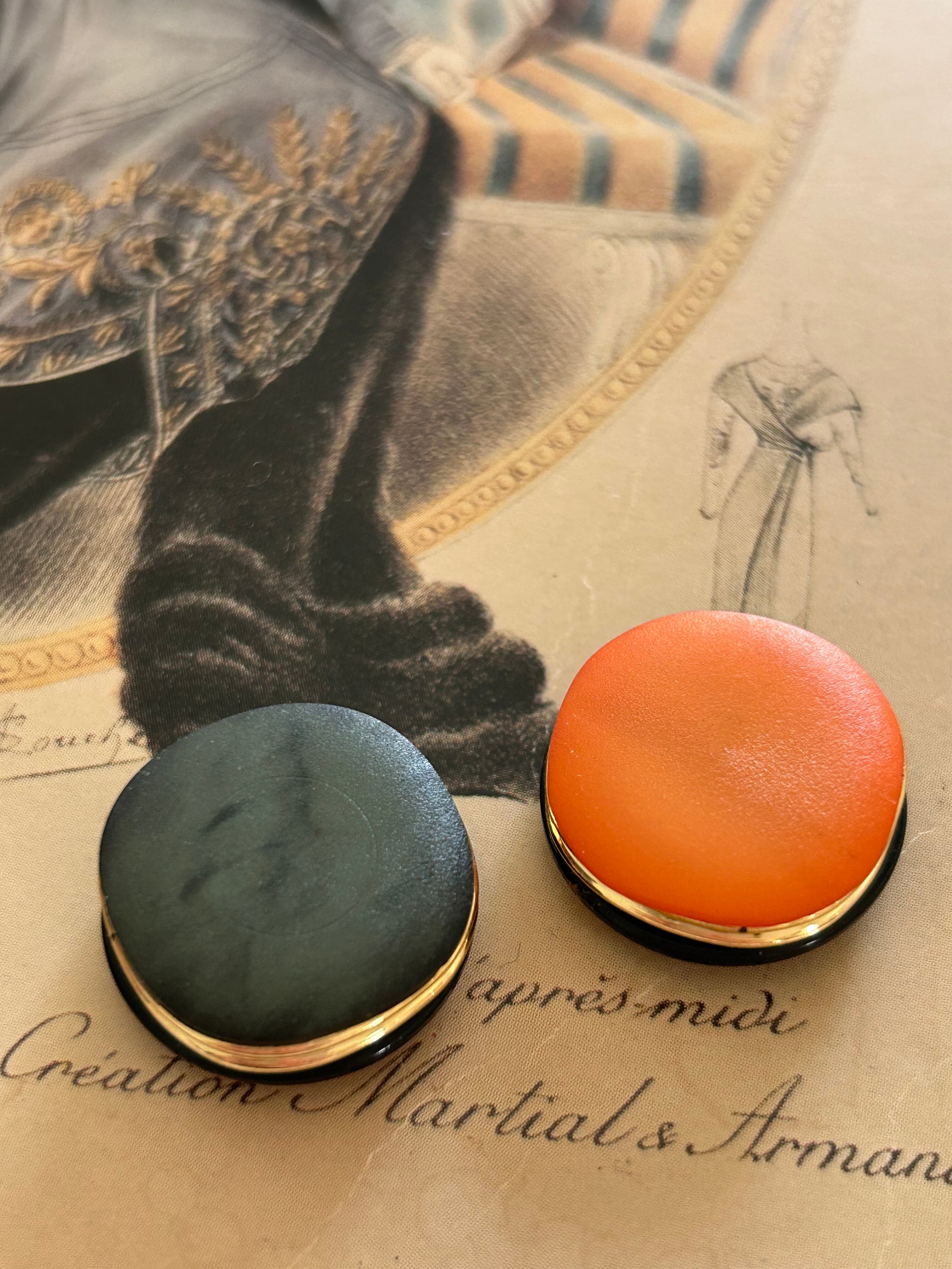 Japanese Vintage ボタン 20mm オレンジ/グリーン マット カボション マーブル調 プラスチック アクセサリーパーツ 装飾材 カルトナージ