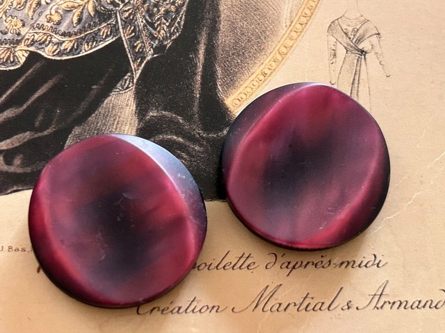 Japanese Vintage ボタン ワインレッド 30mm オーロラ プラスチックボタン 昭和レトロ アクセサリーパーツ 装飾材 カルトナージュ