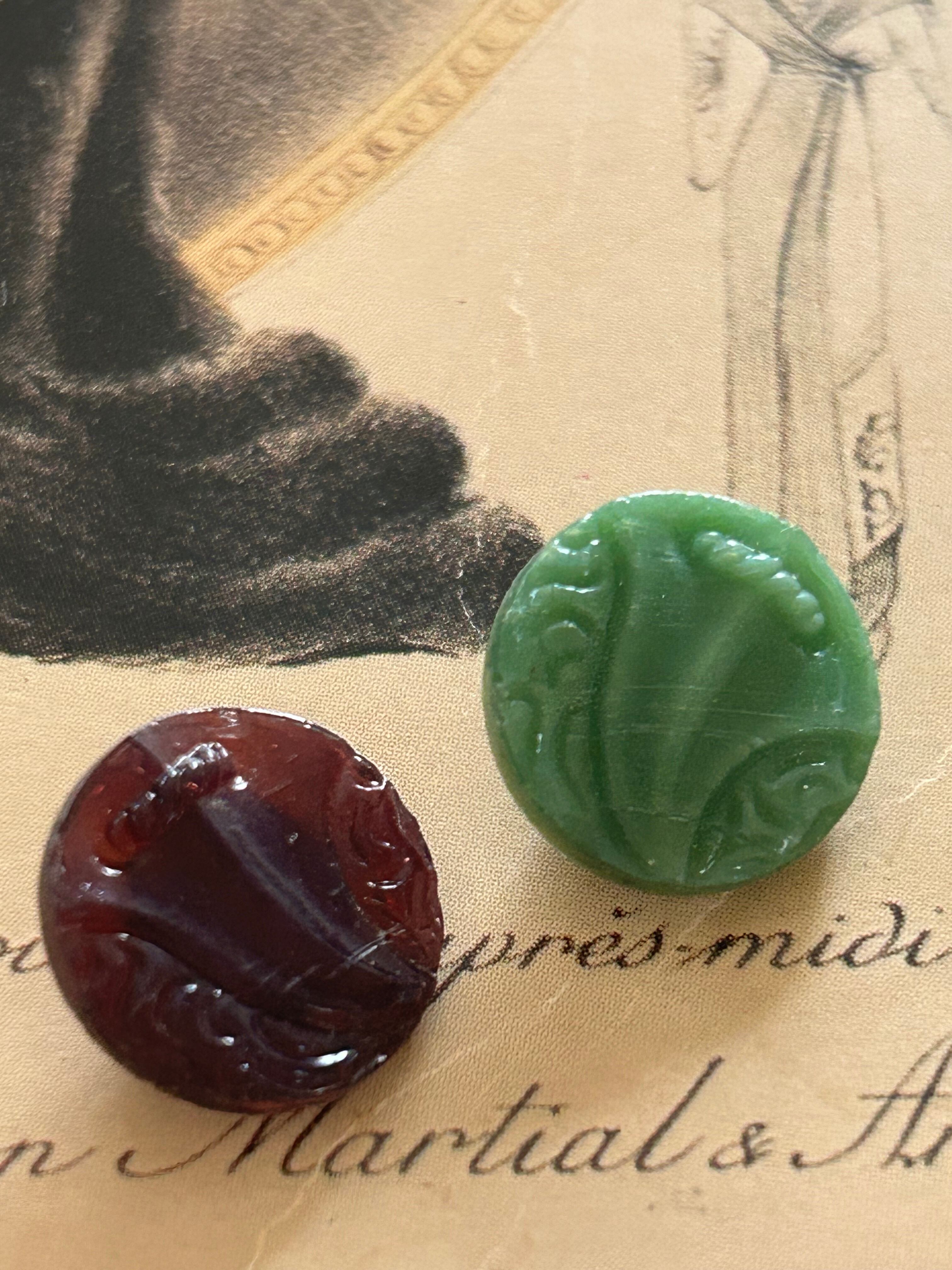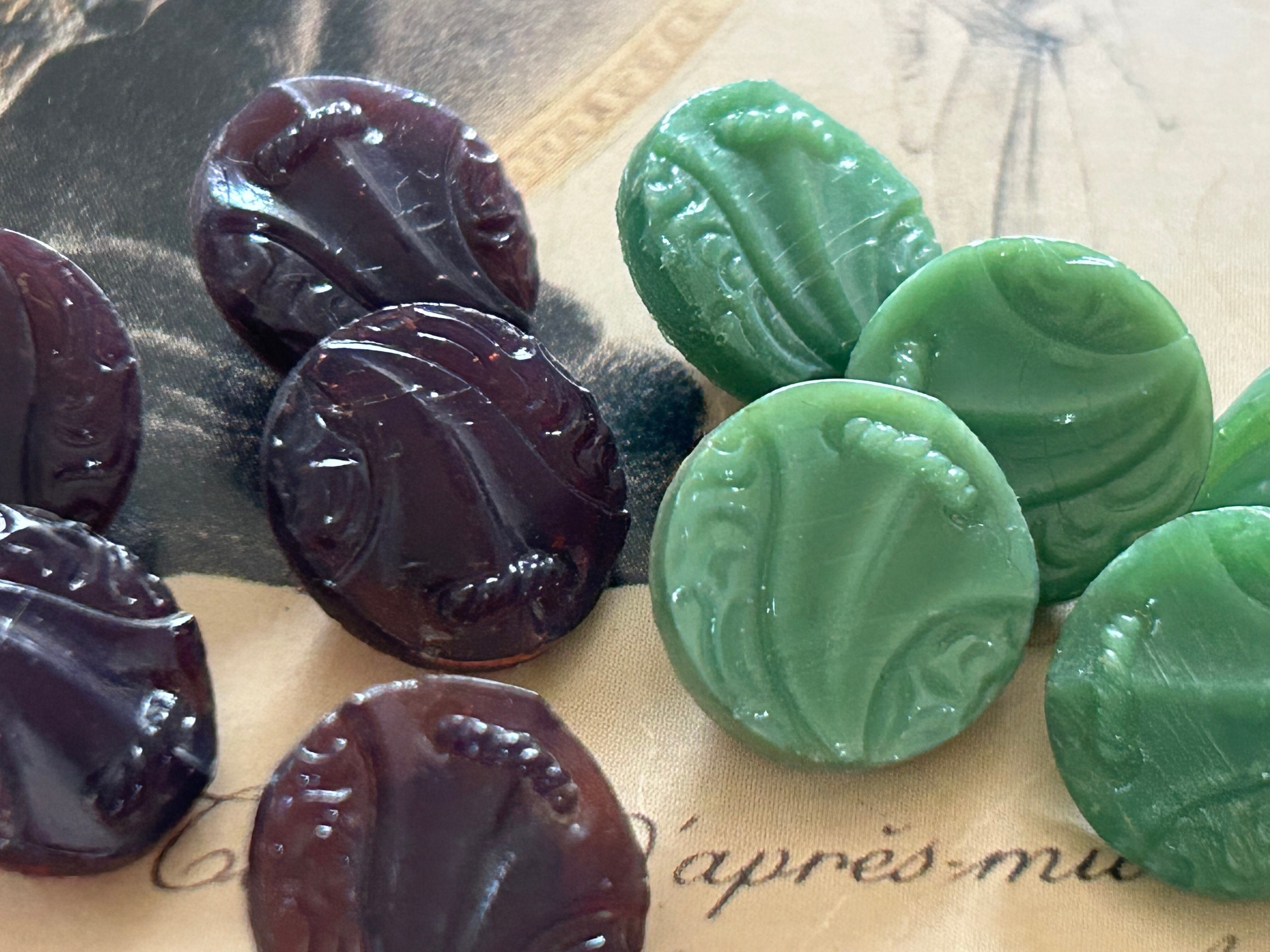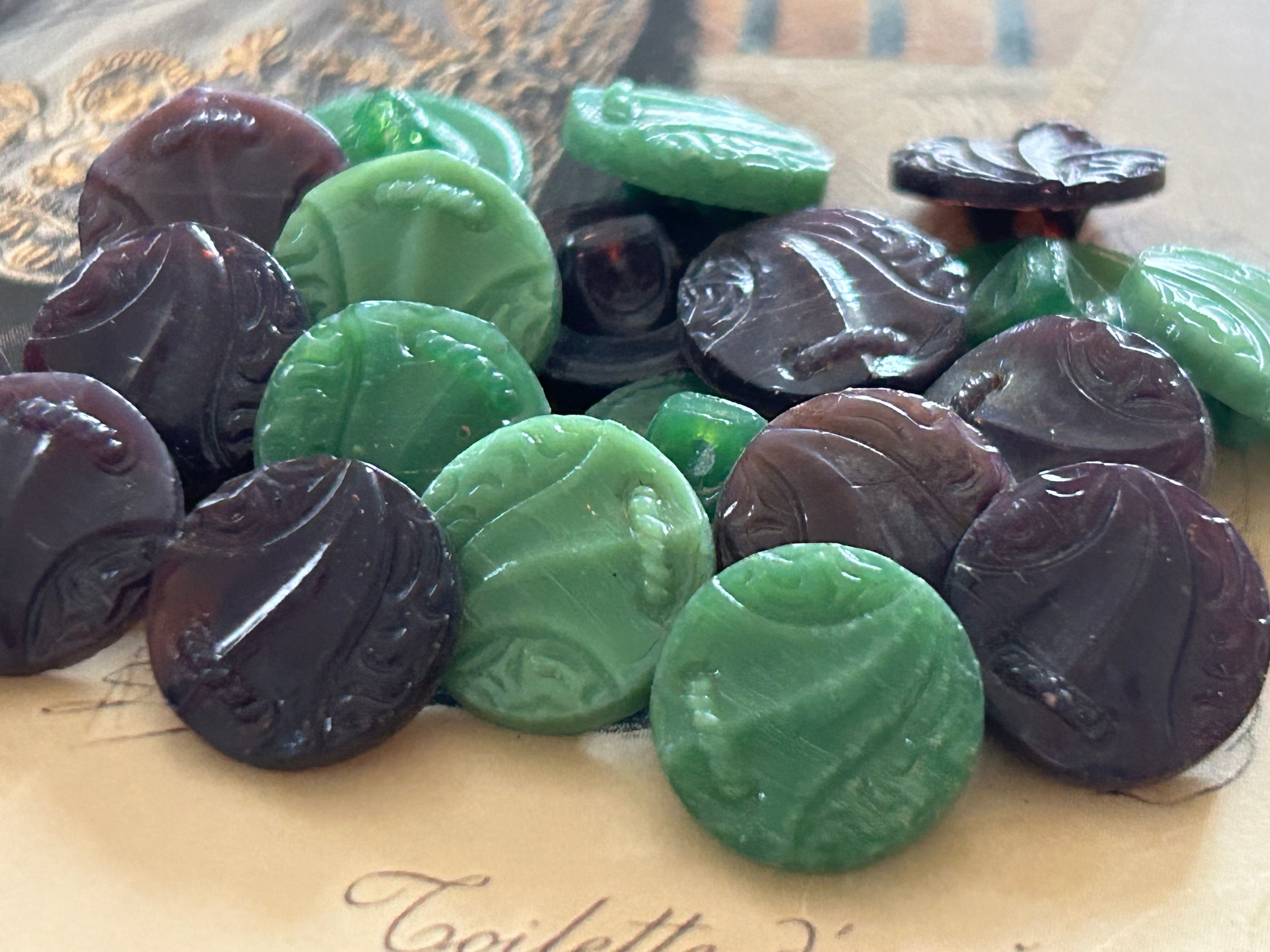 Japanese Vintage ボタン ヴィンテージ ガラスボタン パープル/グリーン 1950年代 13mm アクセサリーパーツ デコレーション材 コレクション