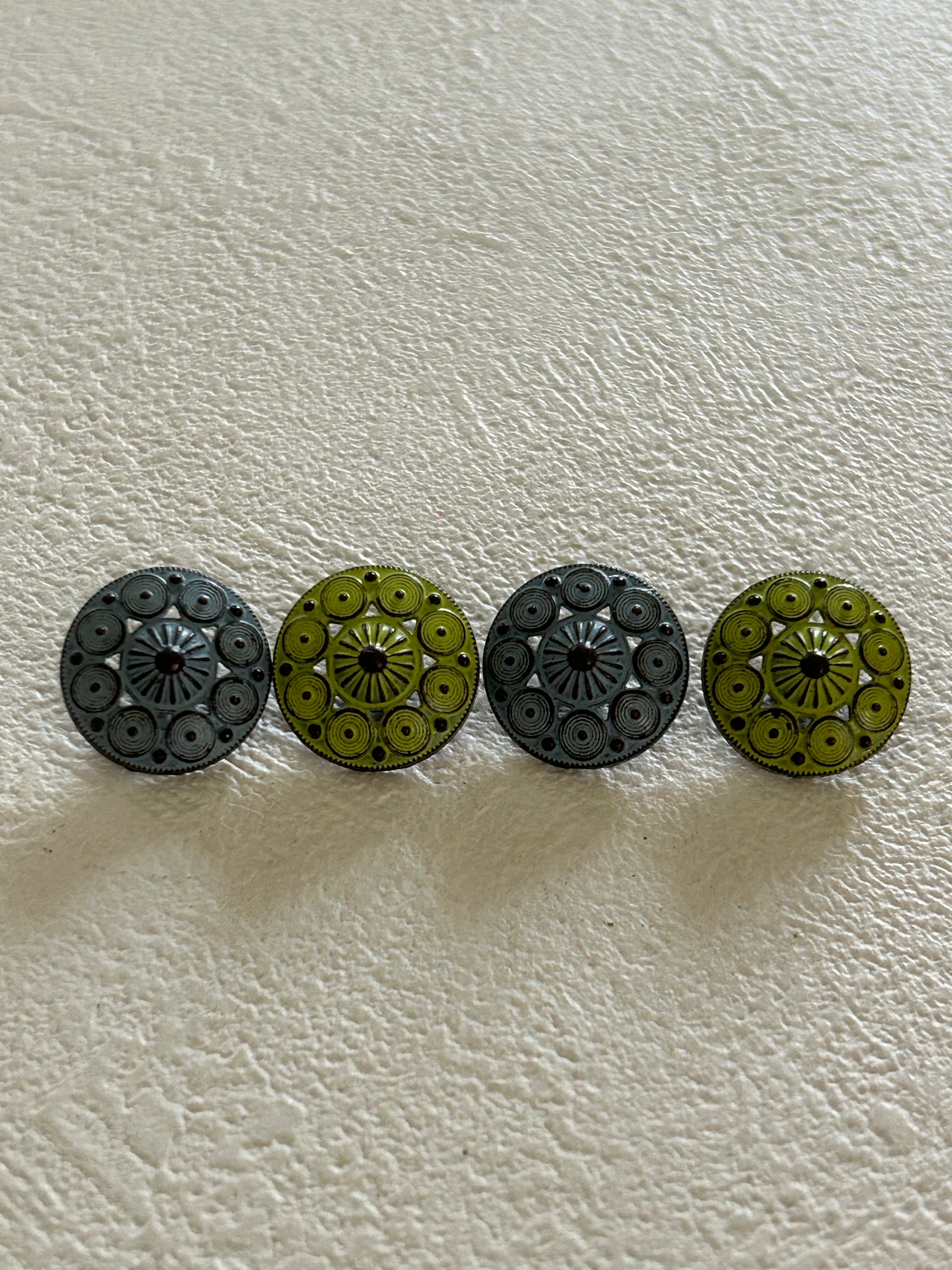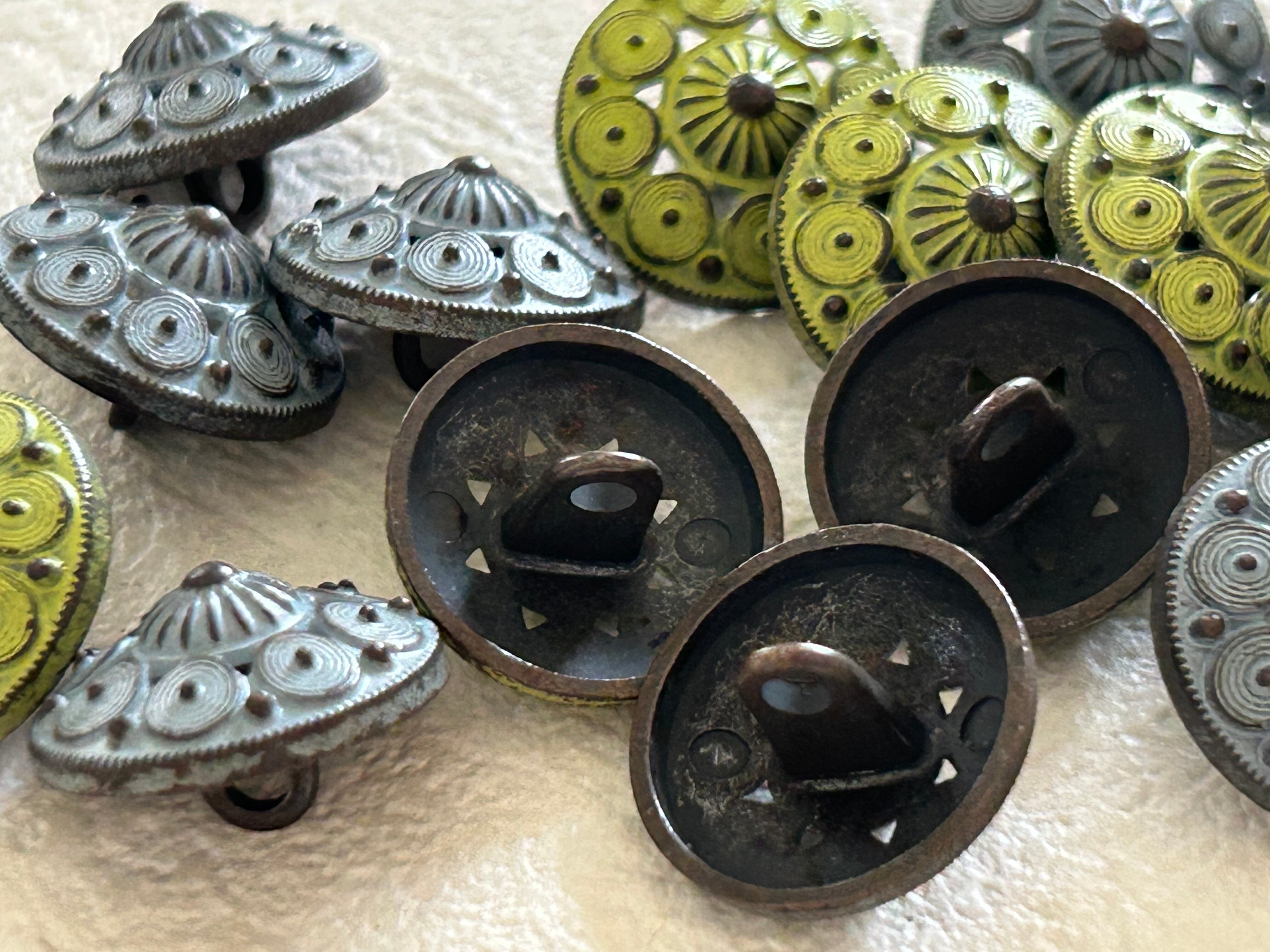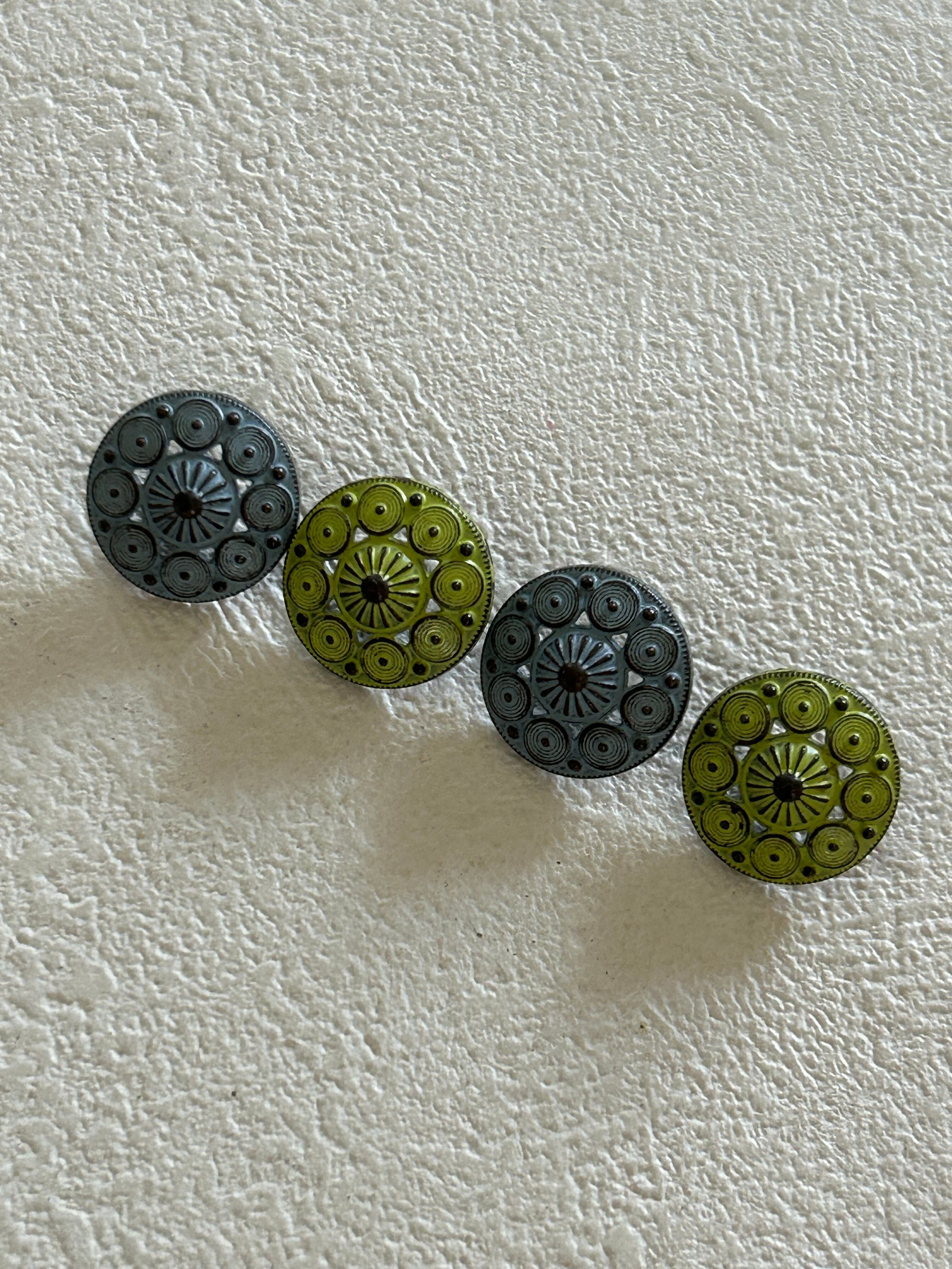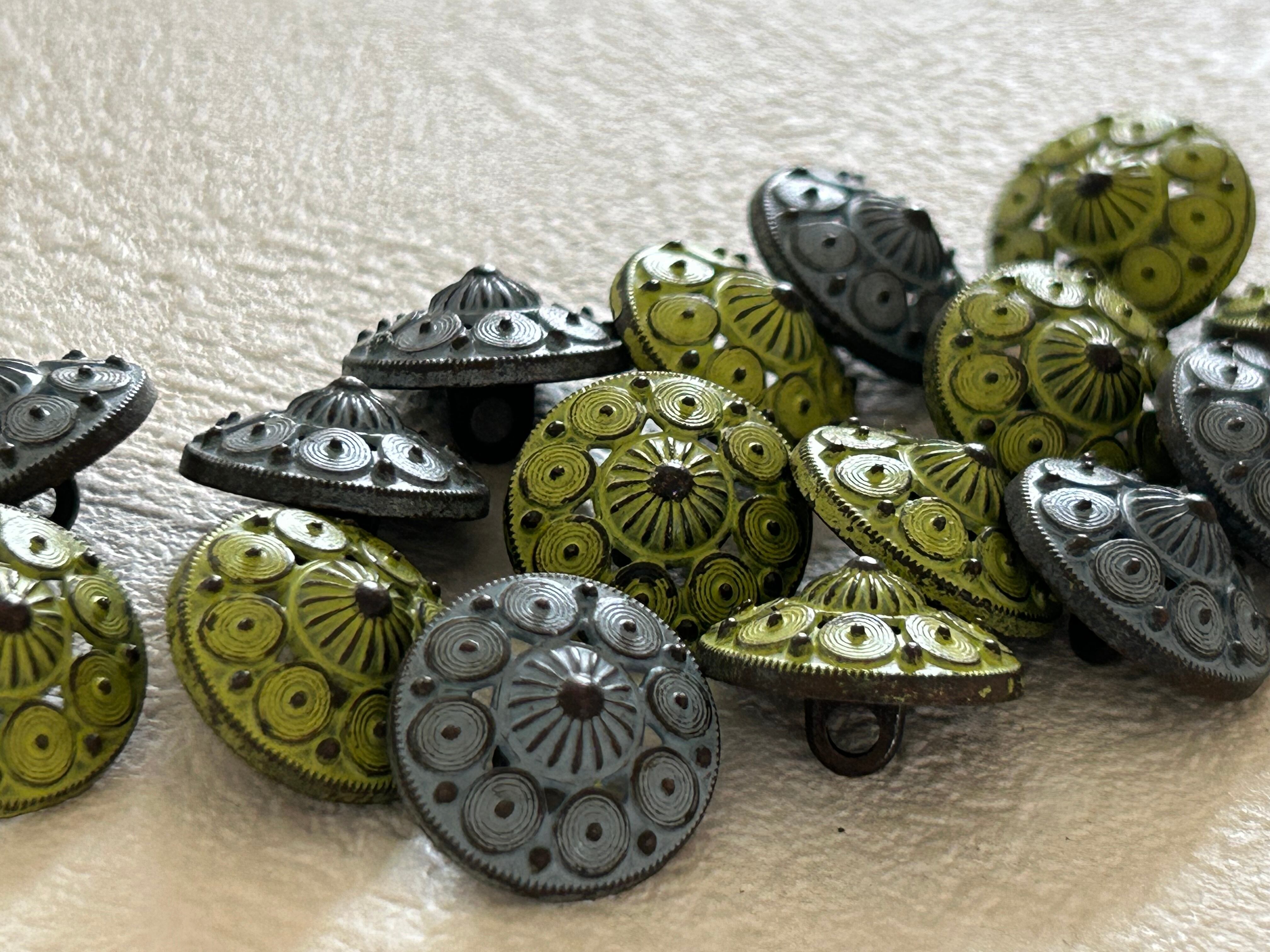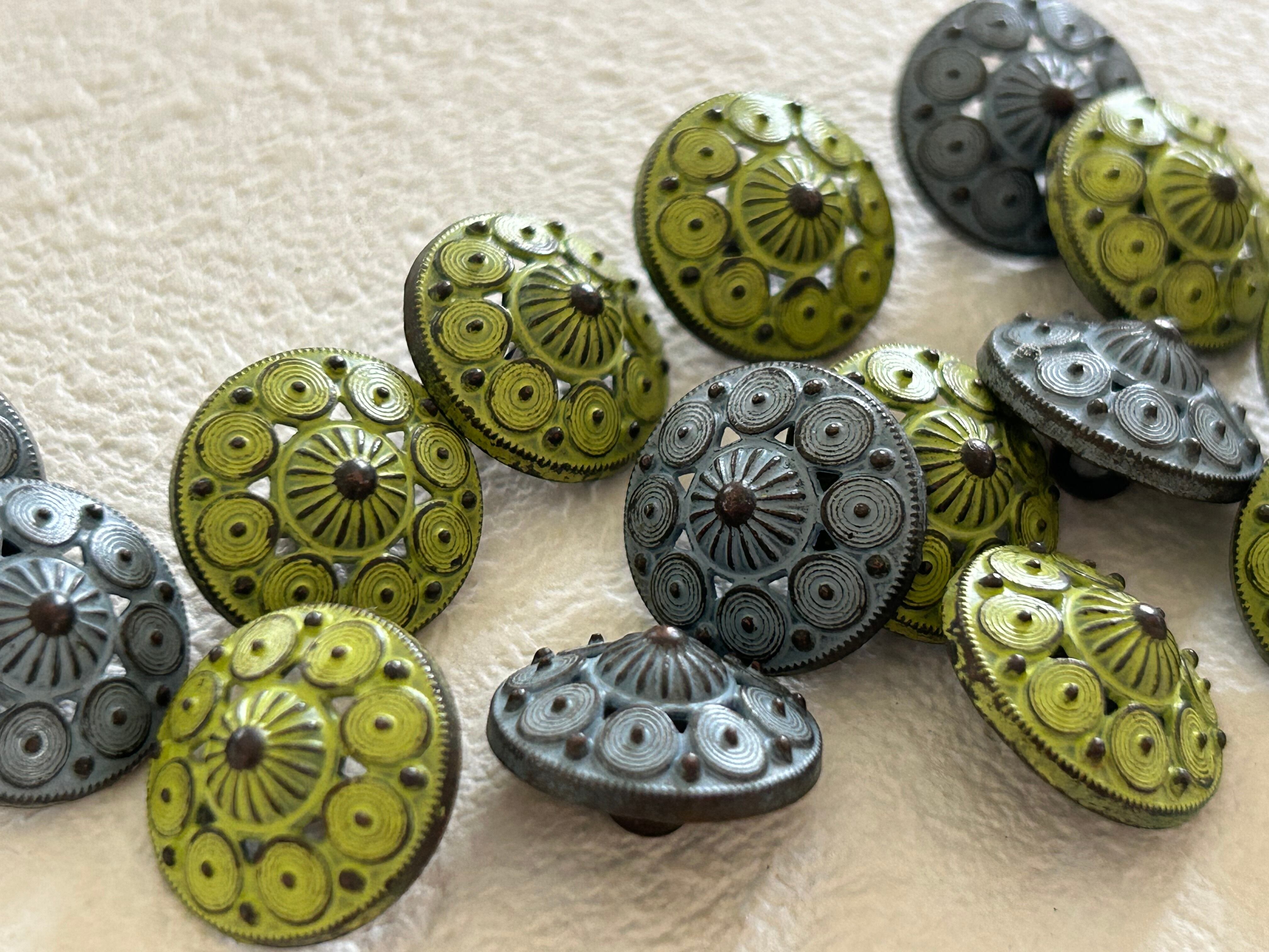 輸入デザインボタン シャビー メタルボタン ドーム型 15mm イエローグリーン/ブルーグレー アクセサリーパーツ デコレーション材