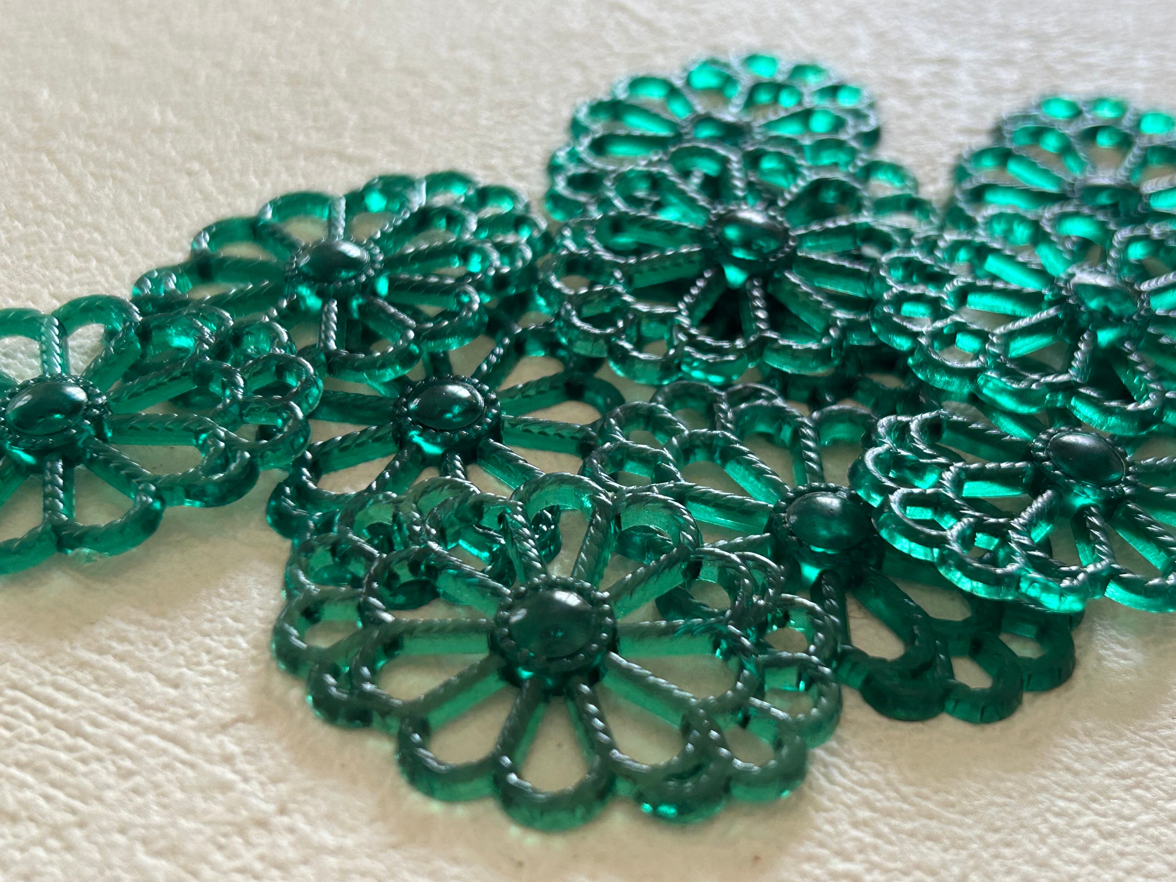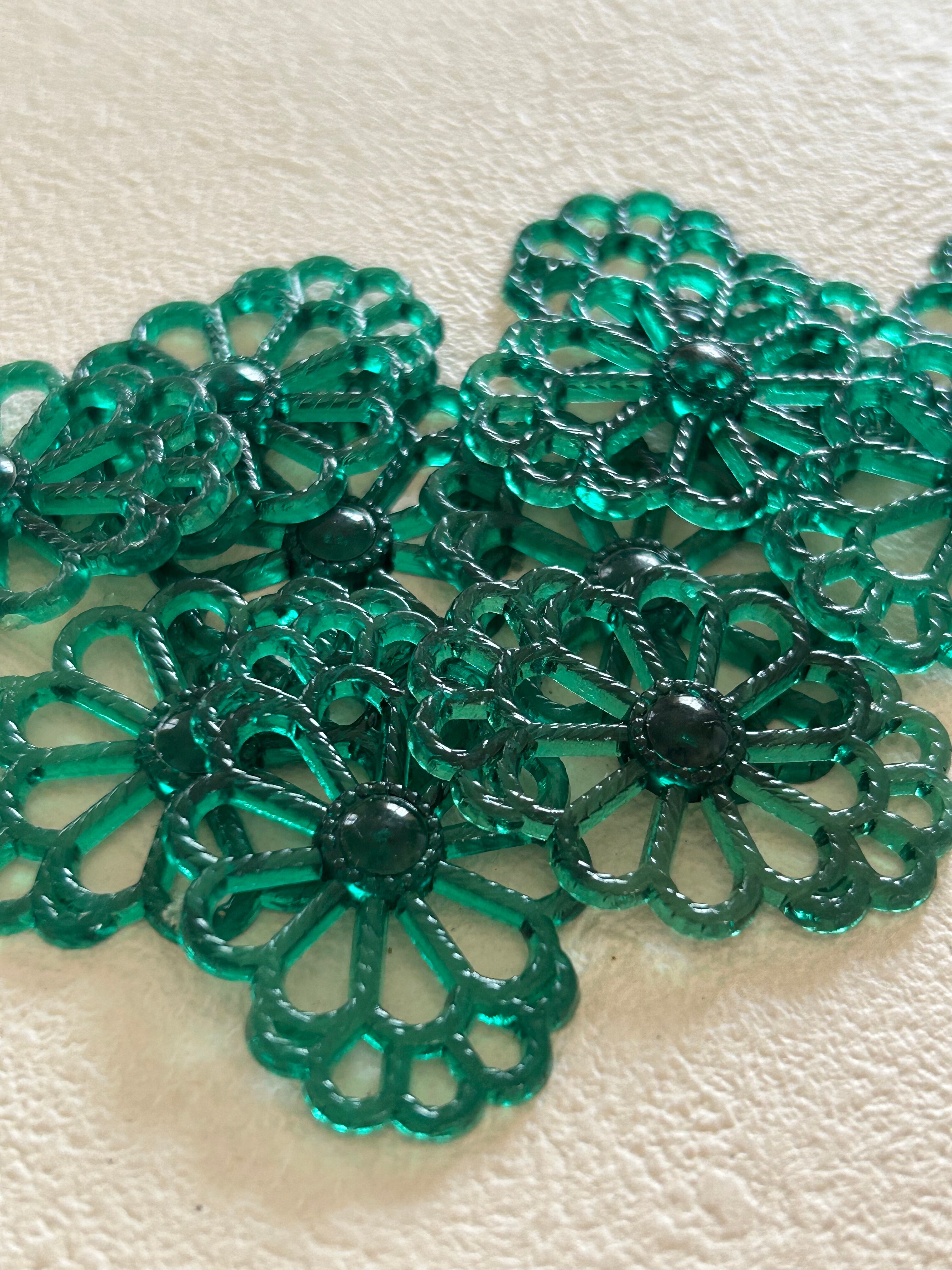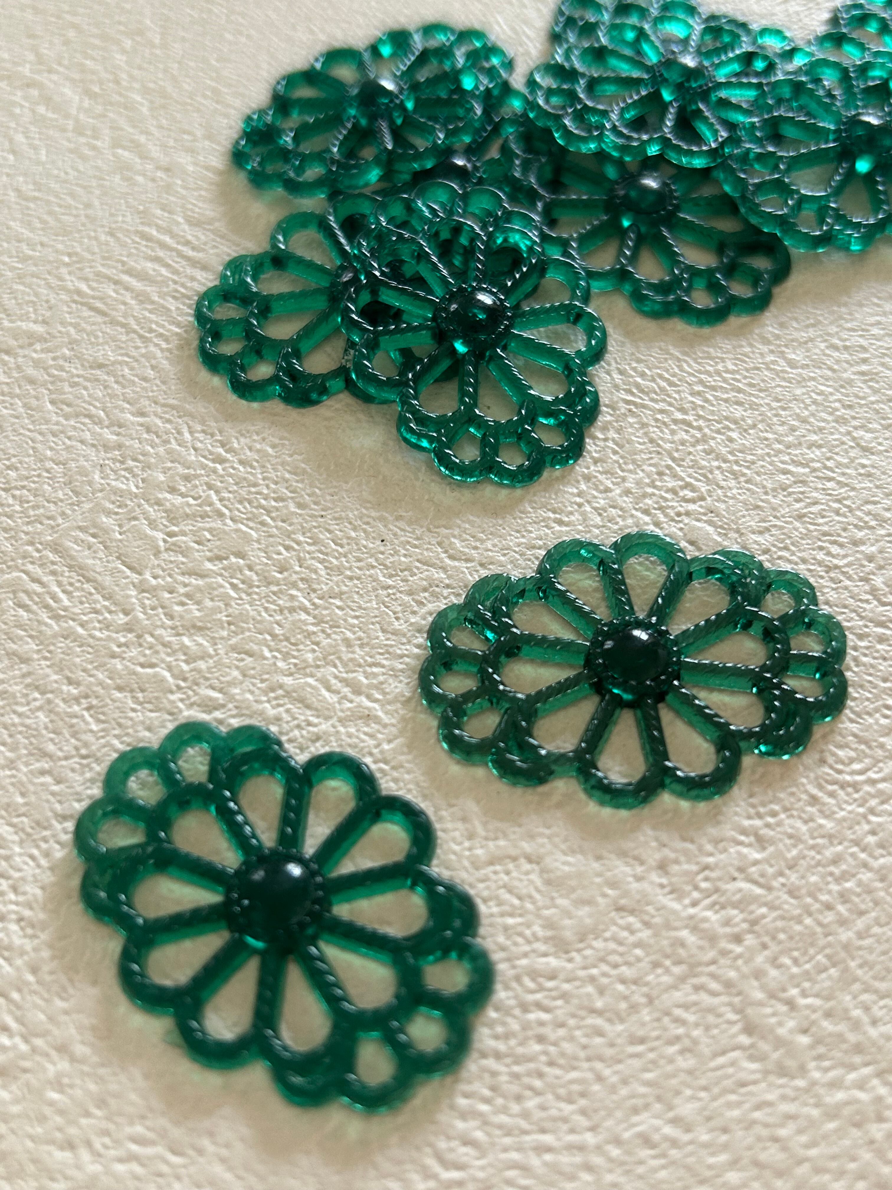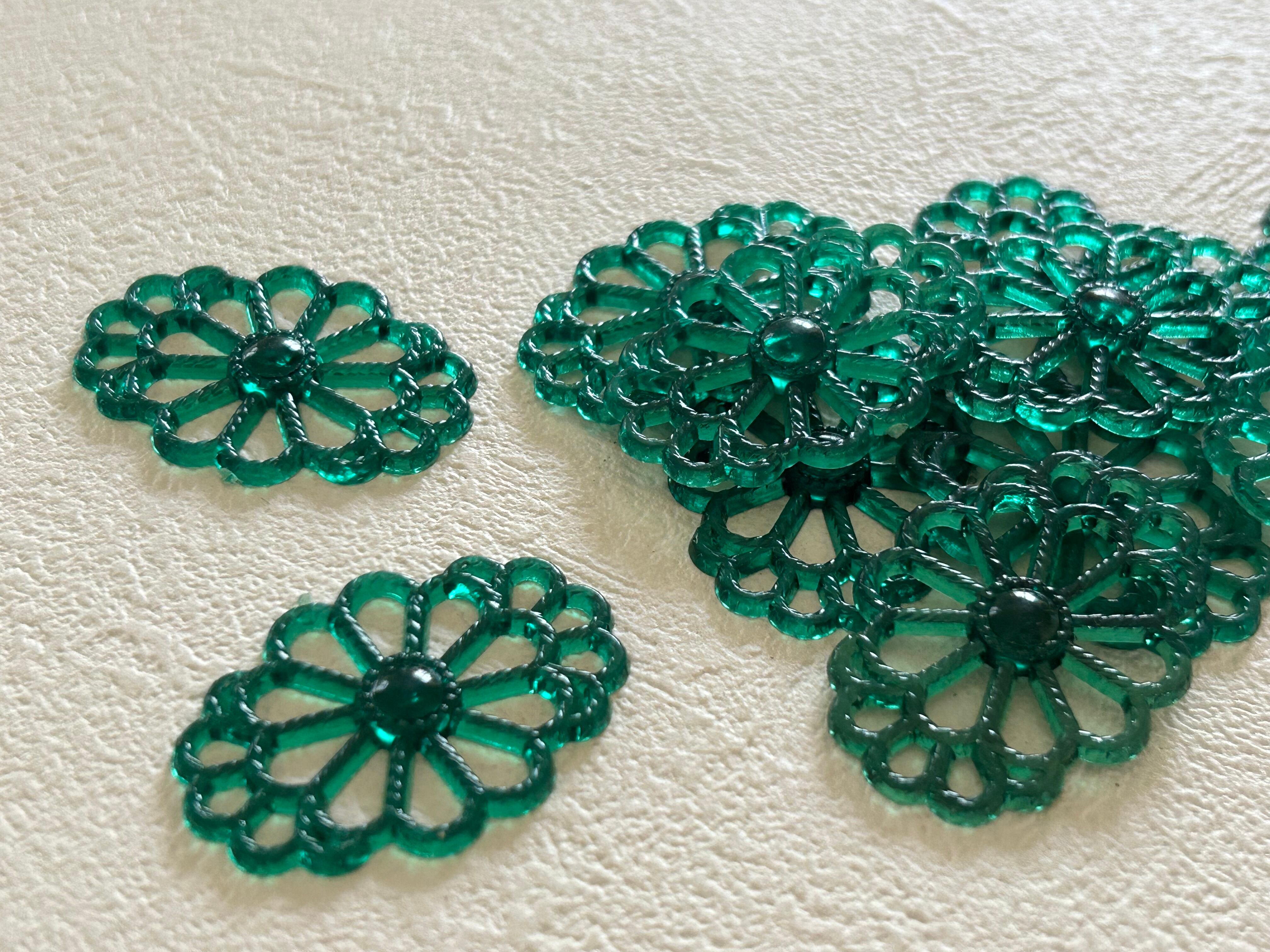 フランスVintage ヴィンテージパーツ 透かし グリーン プラスチック チャーム アクセサリーパーツ デコレーション材