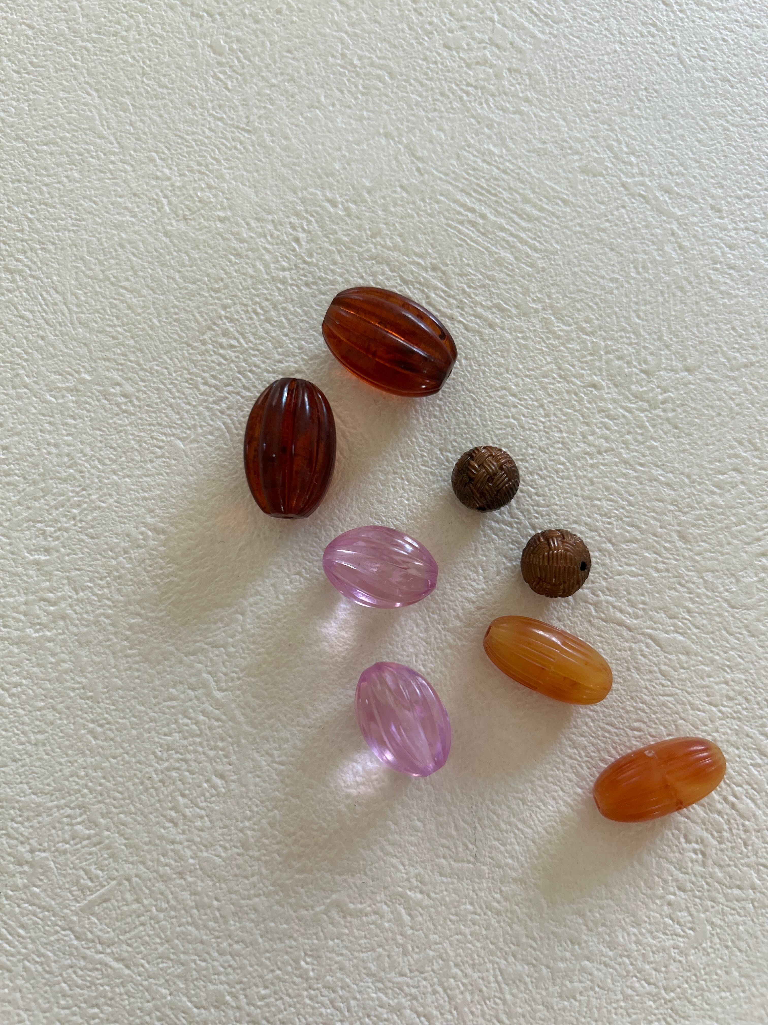 オレンジ、ピンク系など様々なお色、デザイン、サイズのビーズセットです。