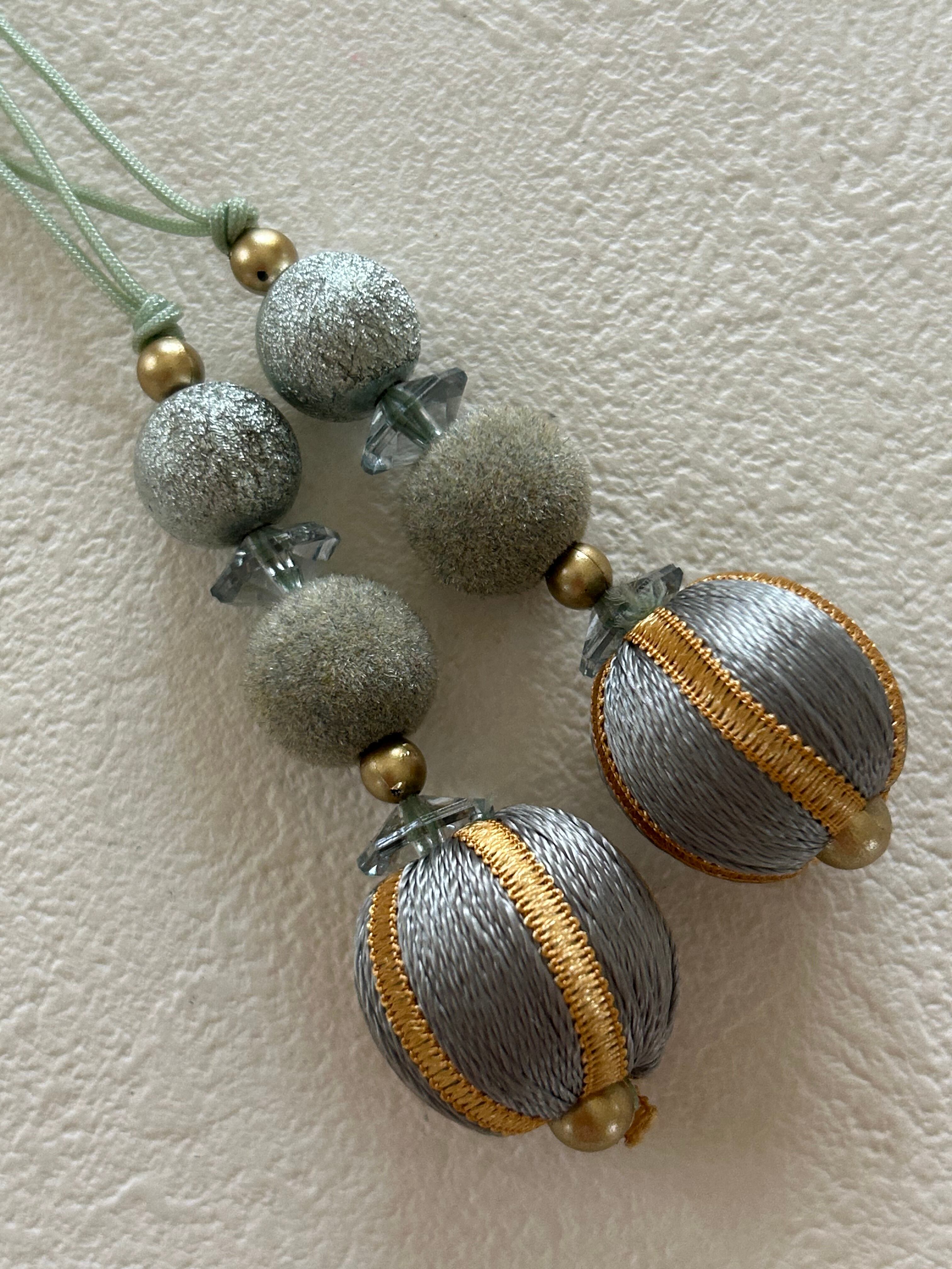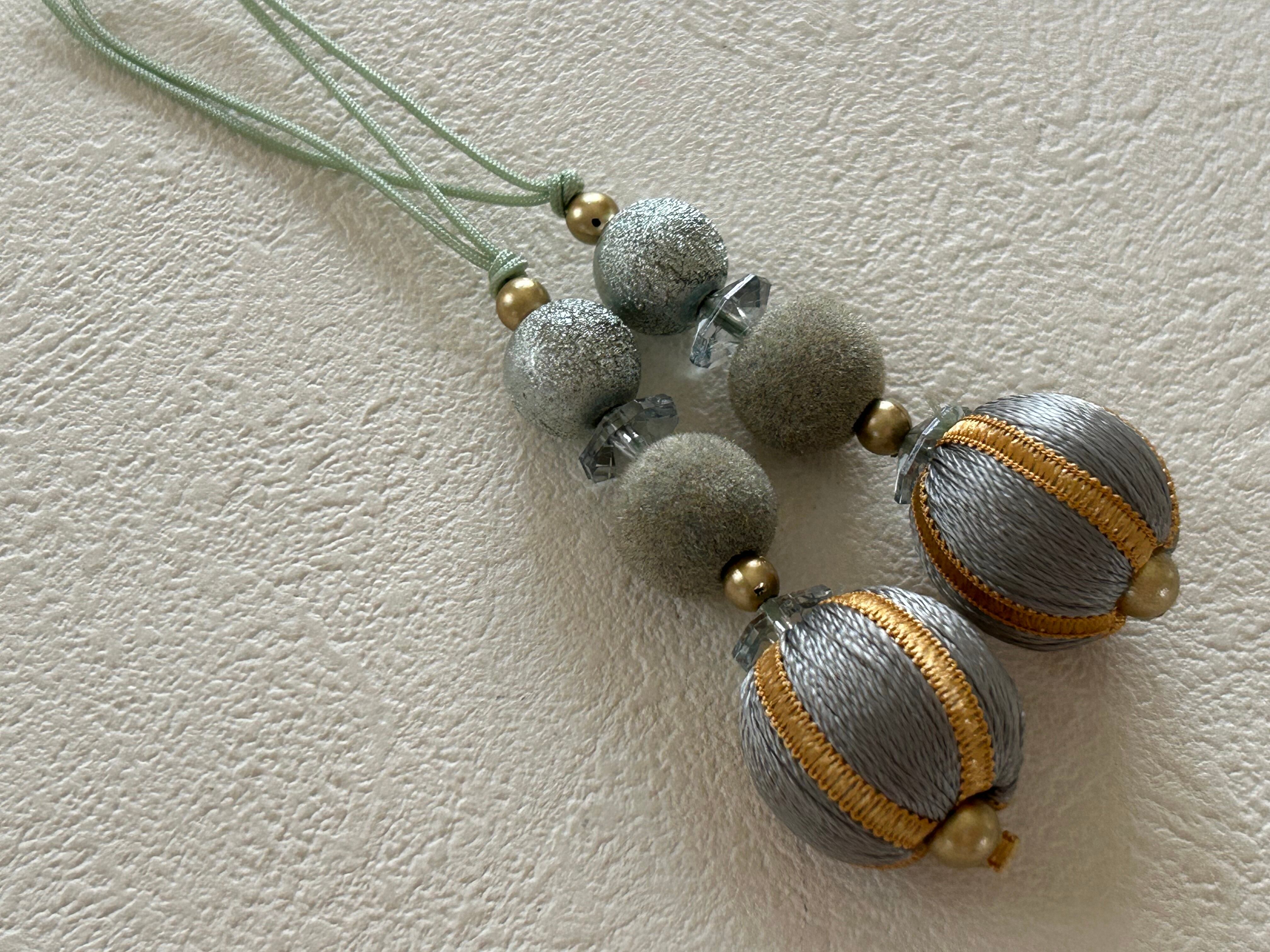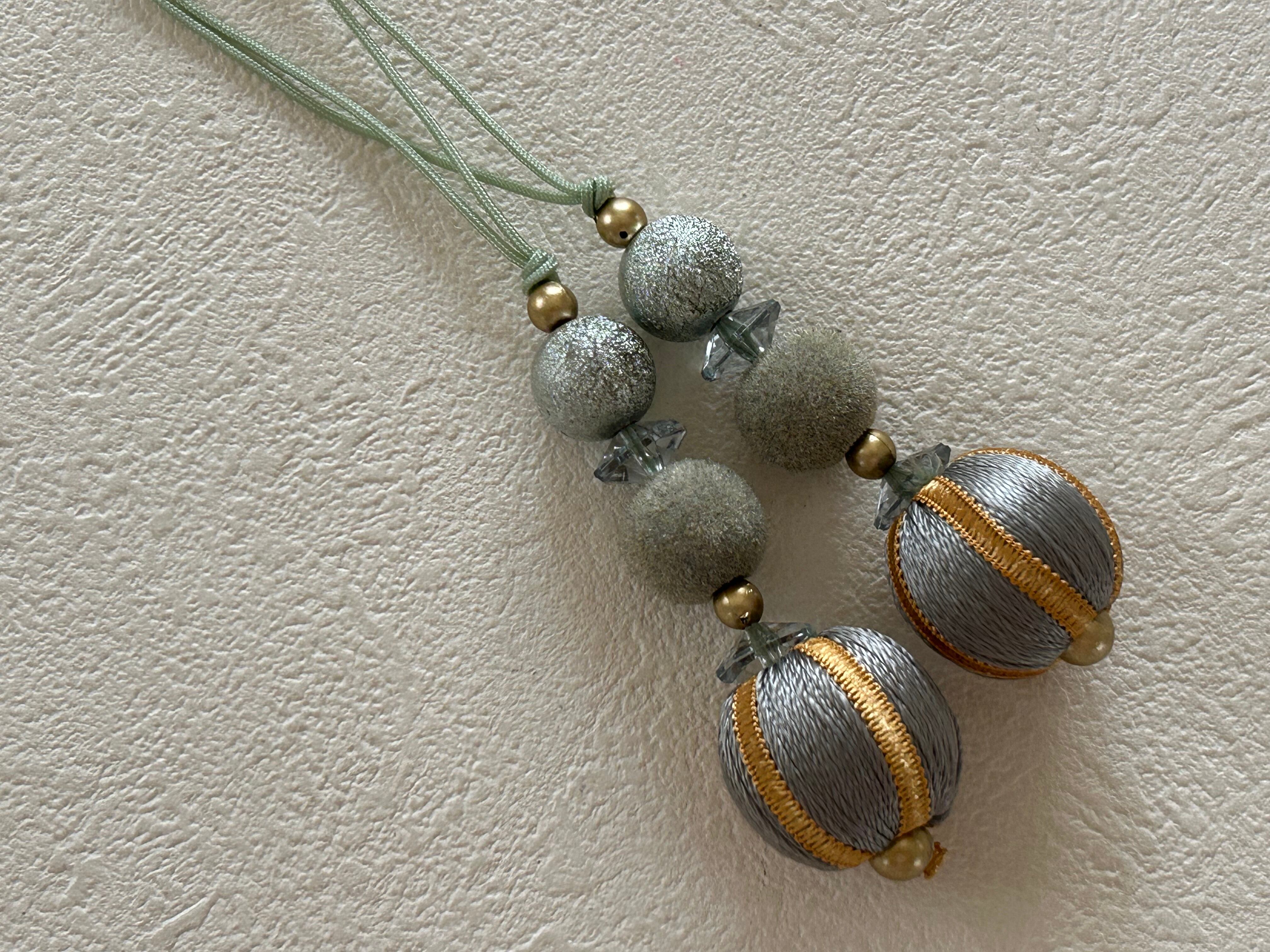 輸入デザインタッセル 巻玉タッセル くすみブルー ブルーグレー カルトナージュ インテリア デコレーション材 チャーム