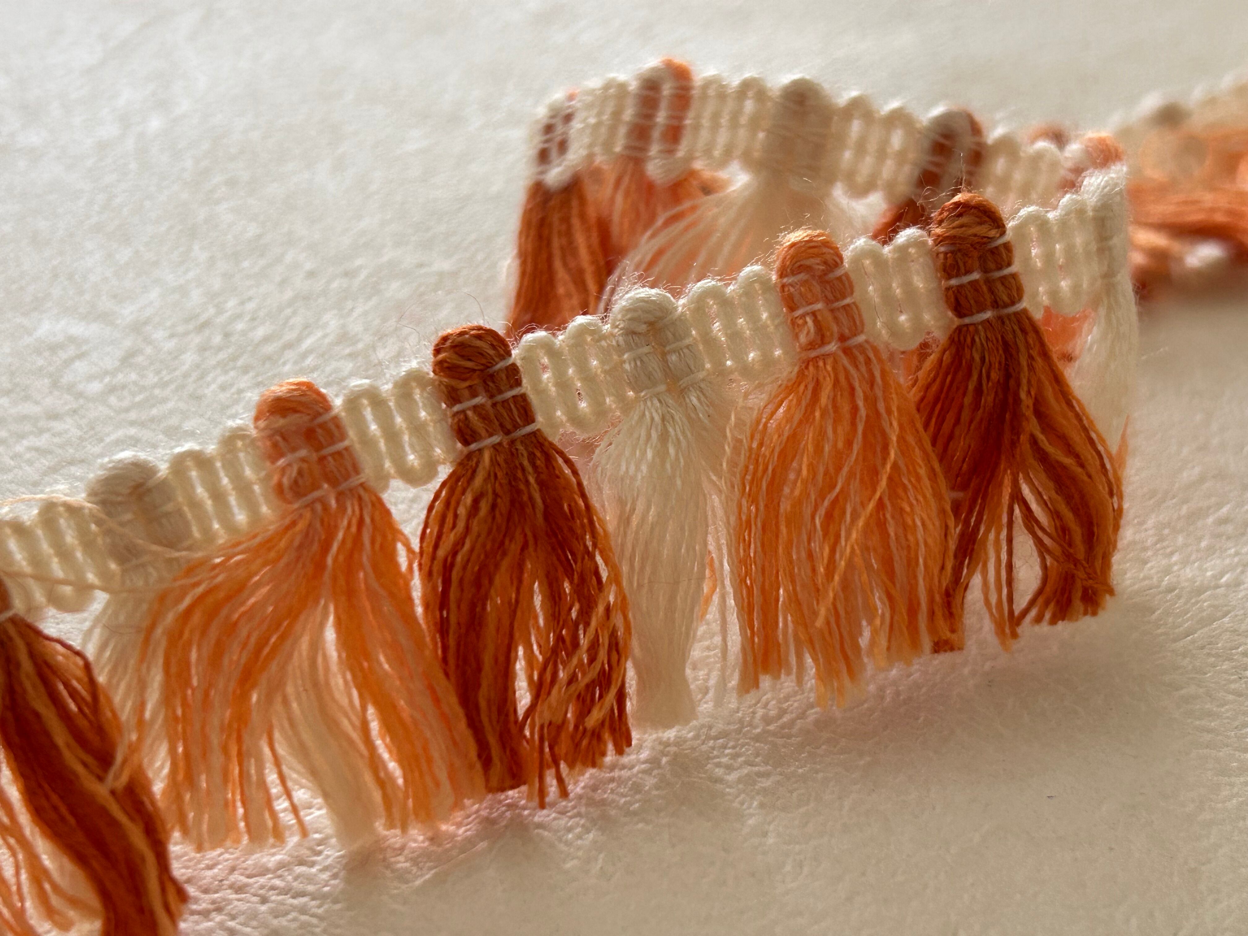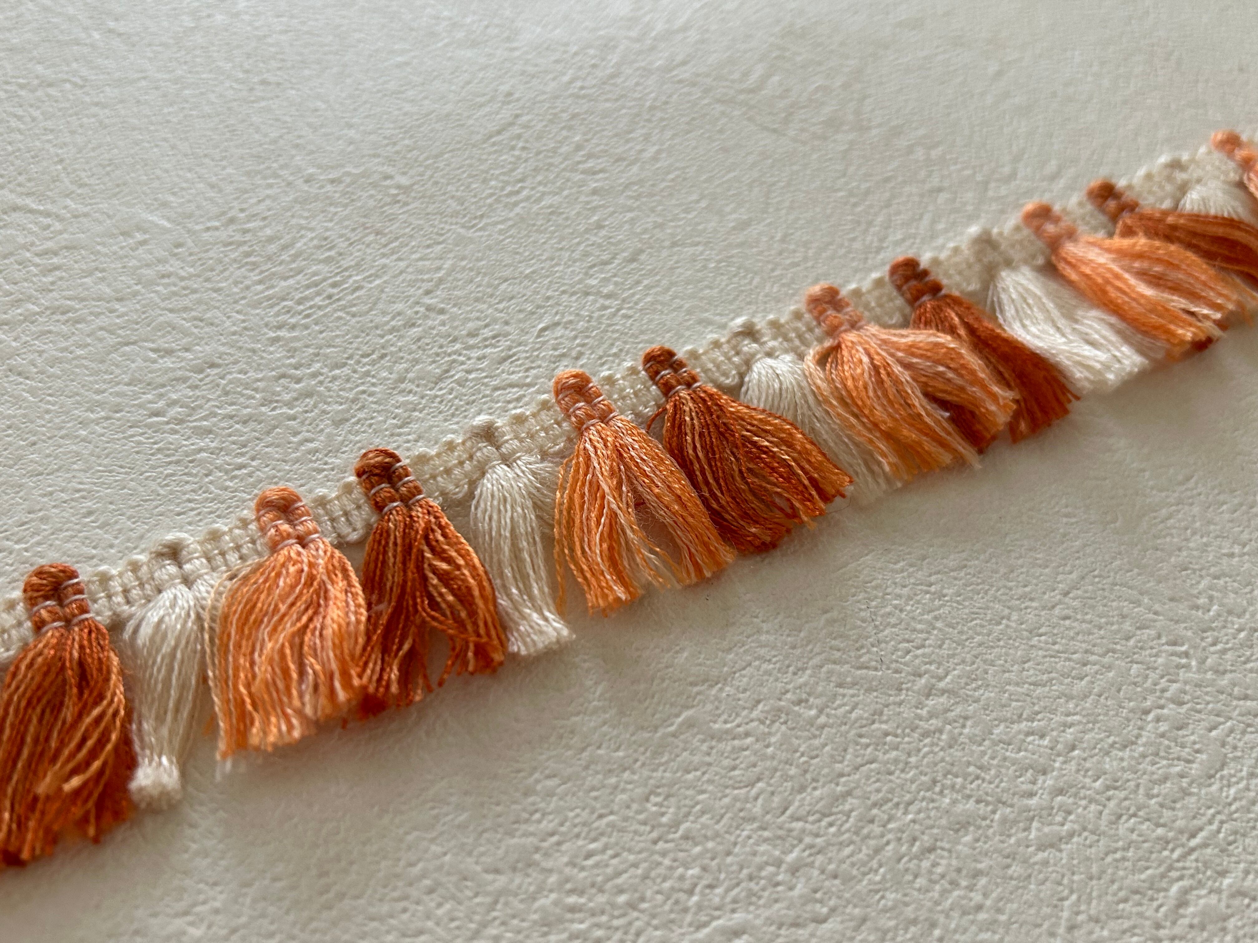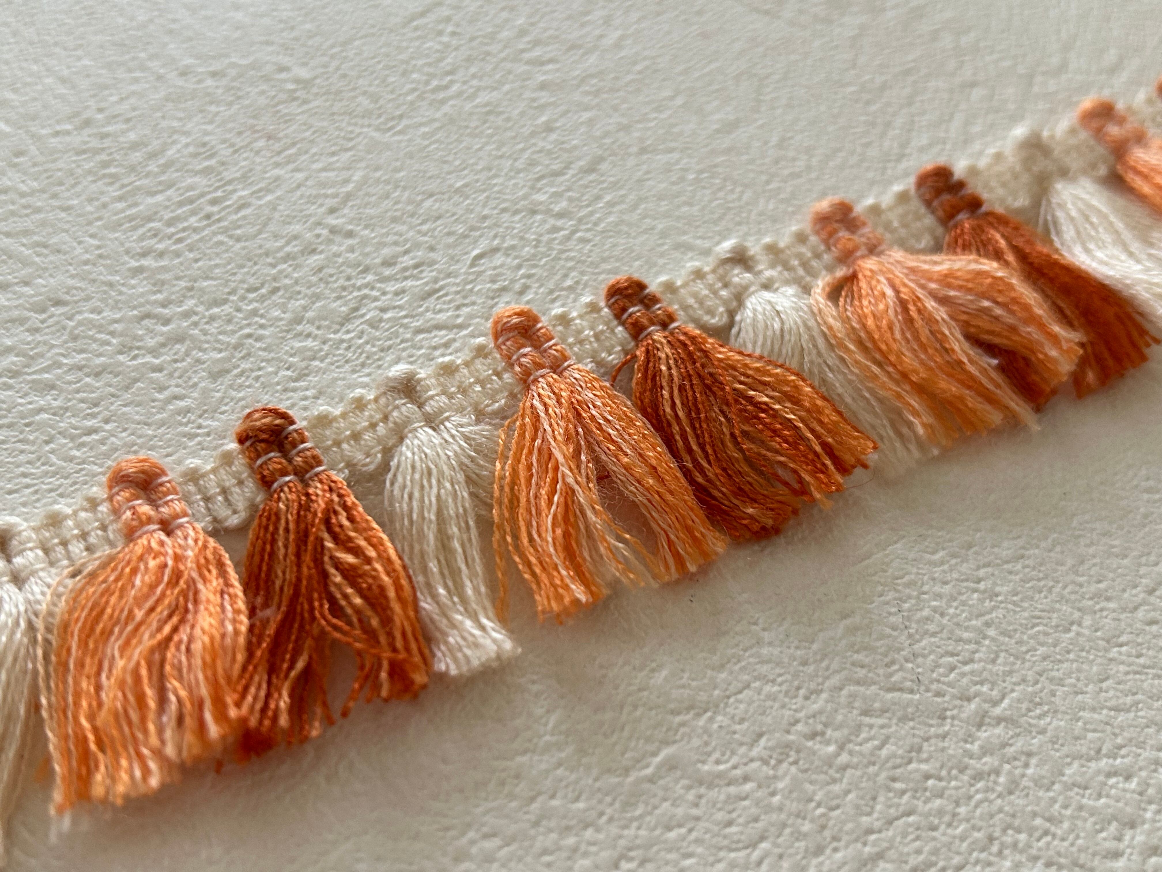 フランスVintage フリンジブレード 100cm デッドストック オレンジ×エクリュ カルトナージュ デコレーション材 カットブレード